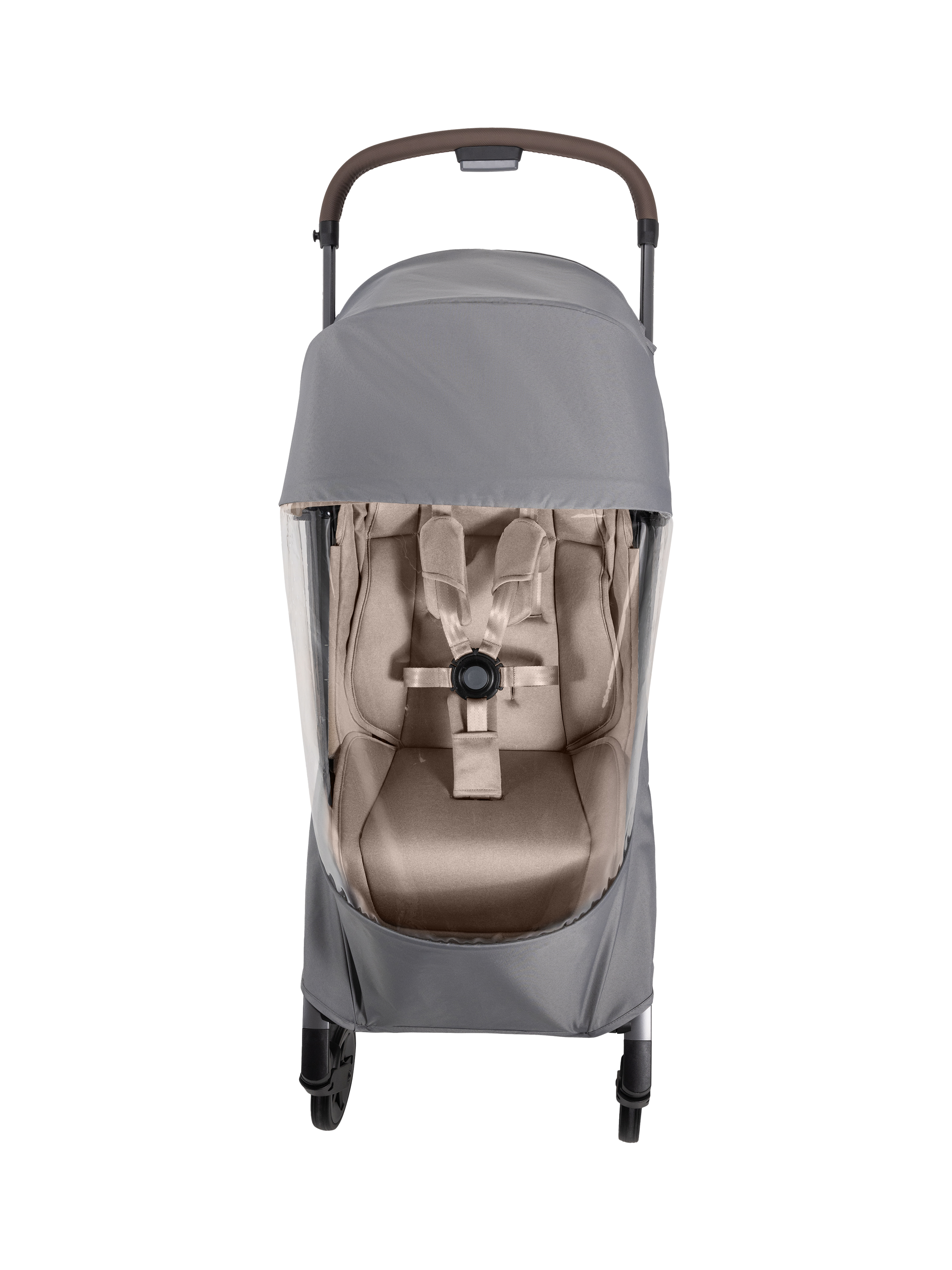 A raincover for the Aer+2 stroller, providing extended coverage to shelter your little one even when you've got the buggy in full recline mode. Effortlessly adjust the coverage with simple button operations on the back. It has a convenient pocket for easy storage.