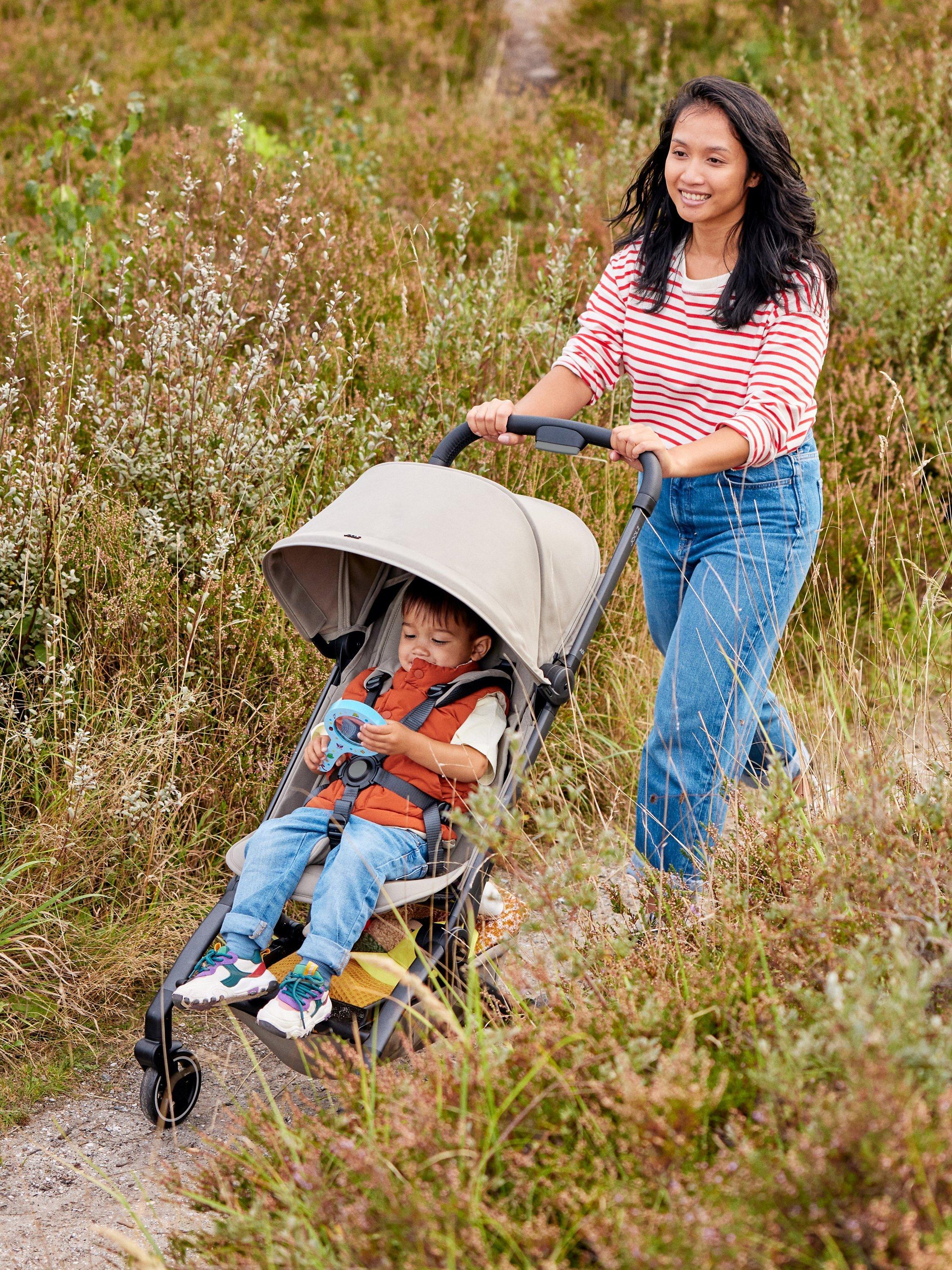 One of the Aer+'s standout features is the one-hand one-second fold, which allows independent parents to fold and unfold the stroller with ease. The reclining seat and UPF 50+ sun hood with ventilation make it perfect for napping on the go. The adjustable harness and click & go 5-point buckle keep your little one safe and secure making it easy to adjust to the next child, and the wider basket holds up to 5kg.