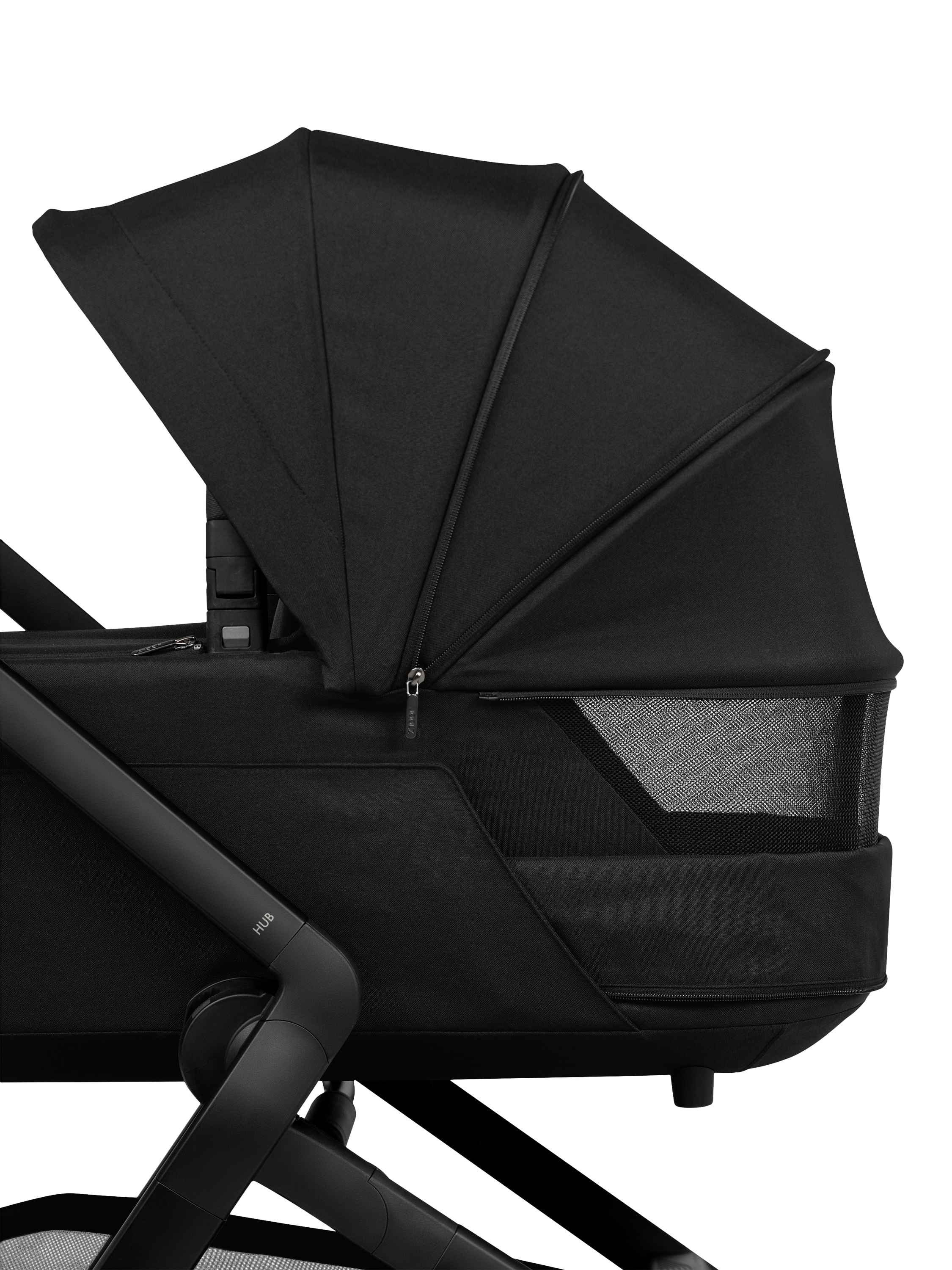 Super comfortable crib for your newborn, suitable for overnight sleep and stable on any surface thanks to the cot feet. Provides extra protection with the extendable sun hood (UPF 50+) and water-repellent fabrics. The cot has a (closable) see-through window for ventilation and a comfy mattress designed for both restful sleep and convenience on the go.