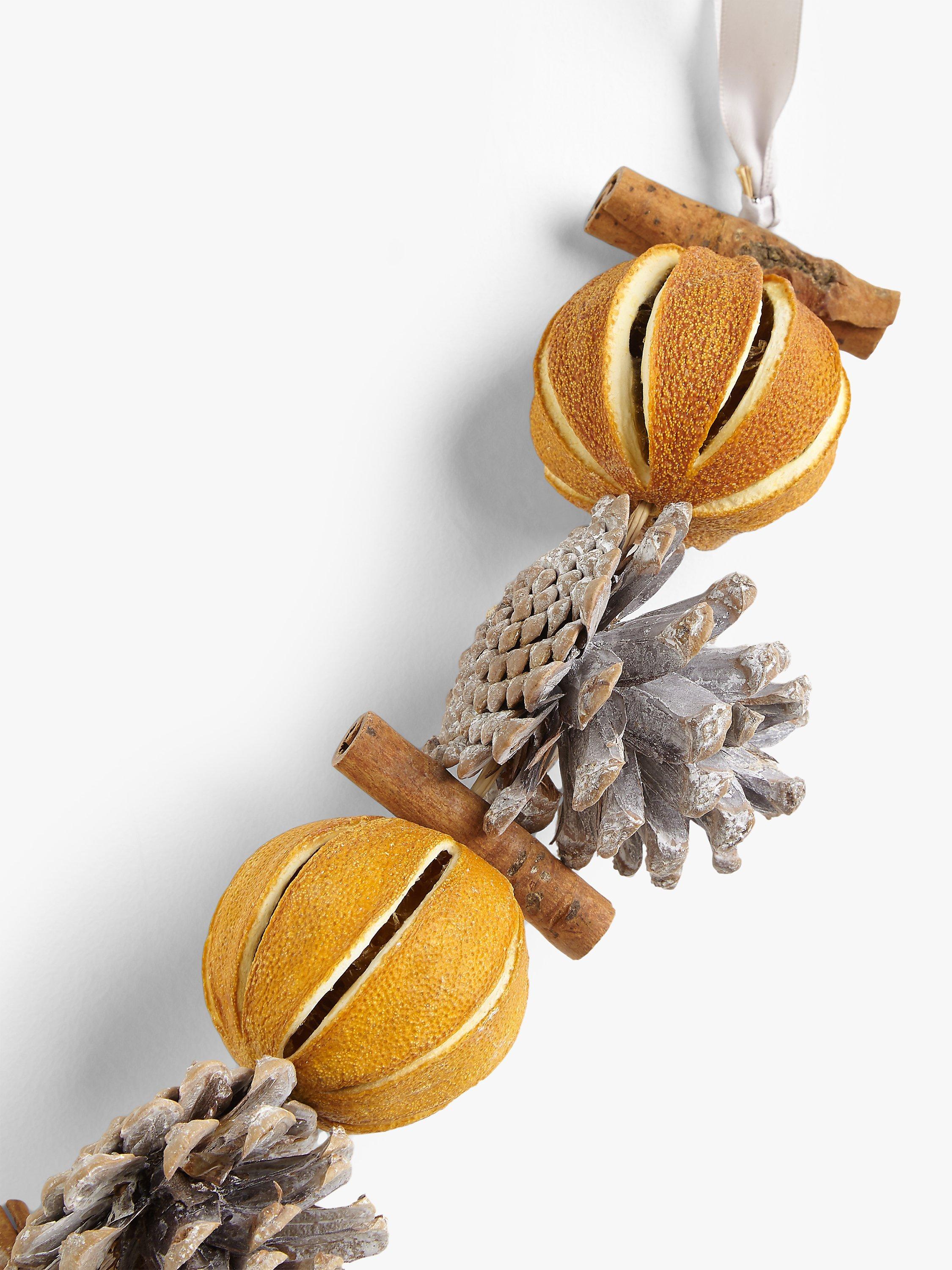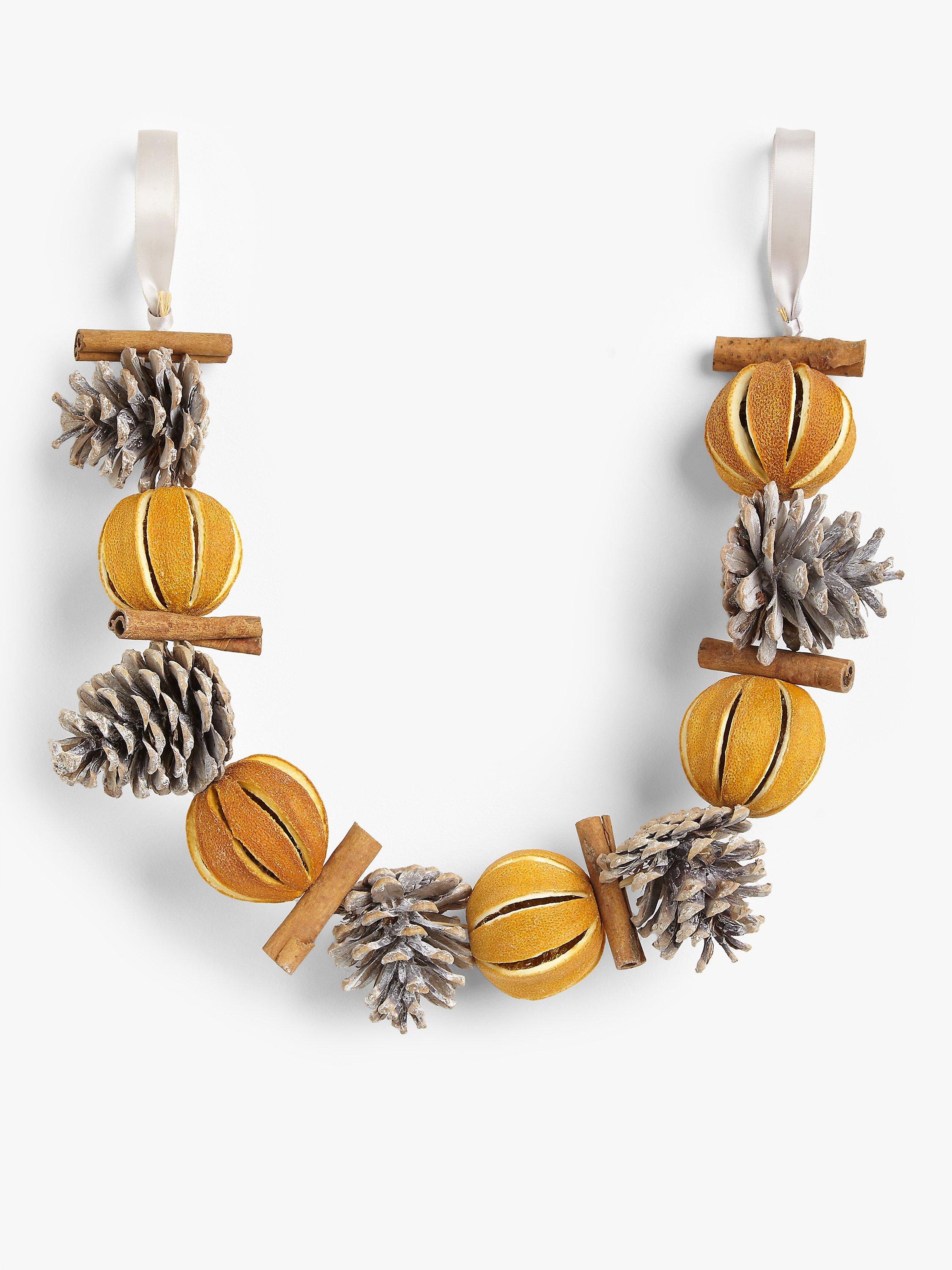 This dried orange, pine cone and cinnamon stick garland is a beautiful way to fill your home with zesty, warming scent during autumn and winter.