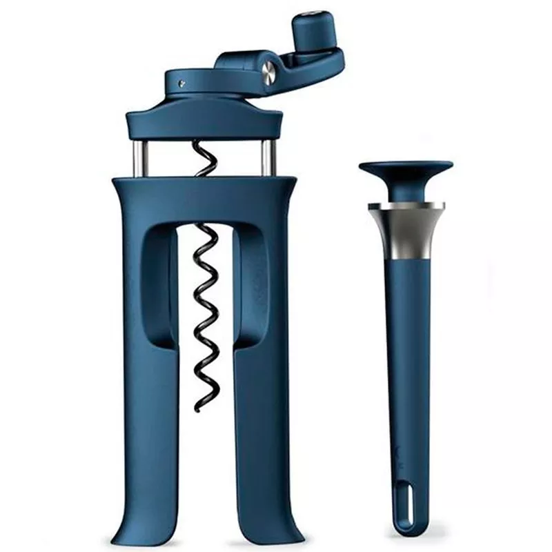 This bottle opener set includes a winding corkscrew and magnetic bottle opener. Opens corked and capped bottles.