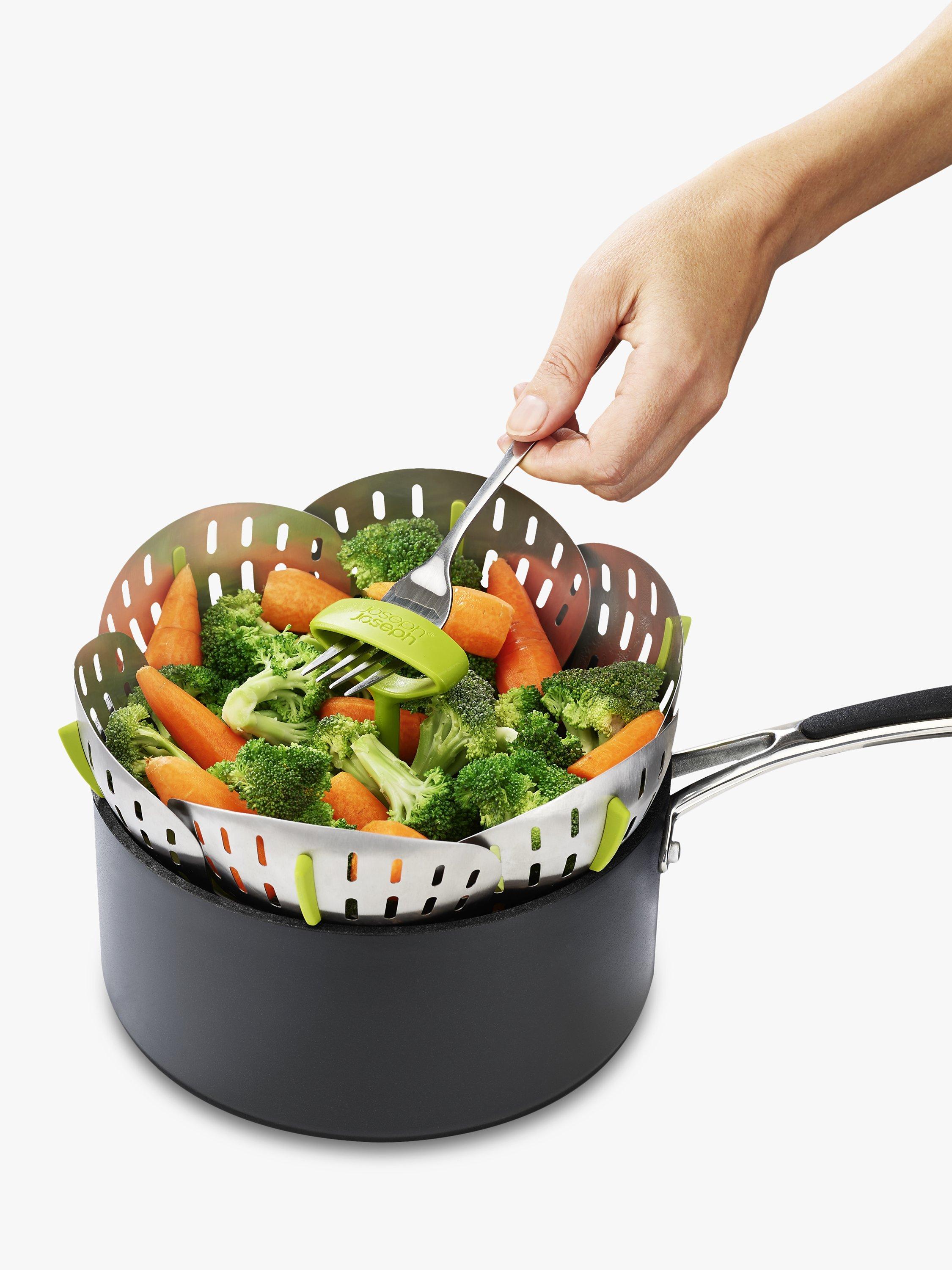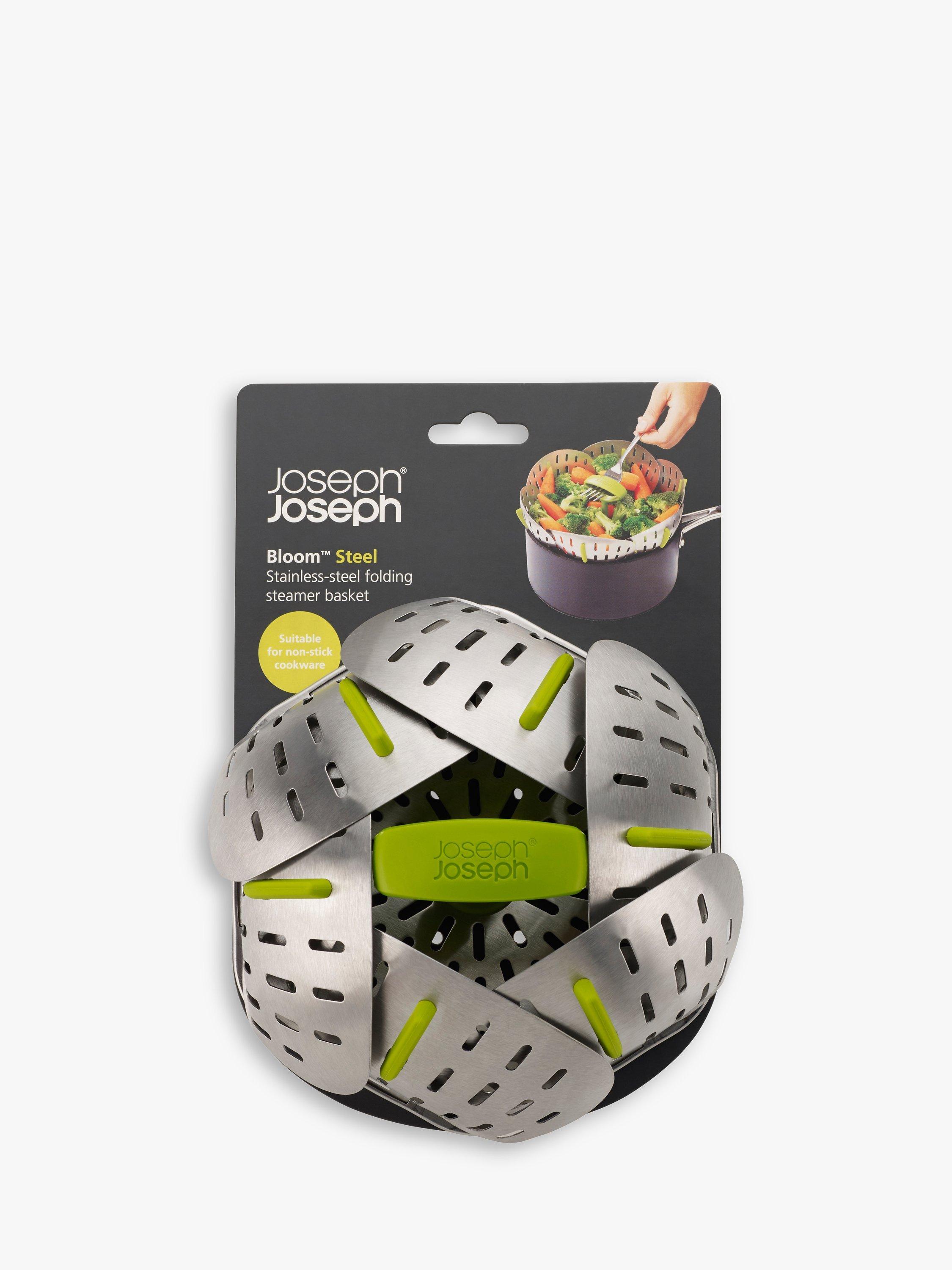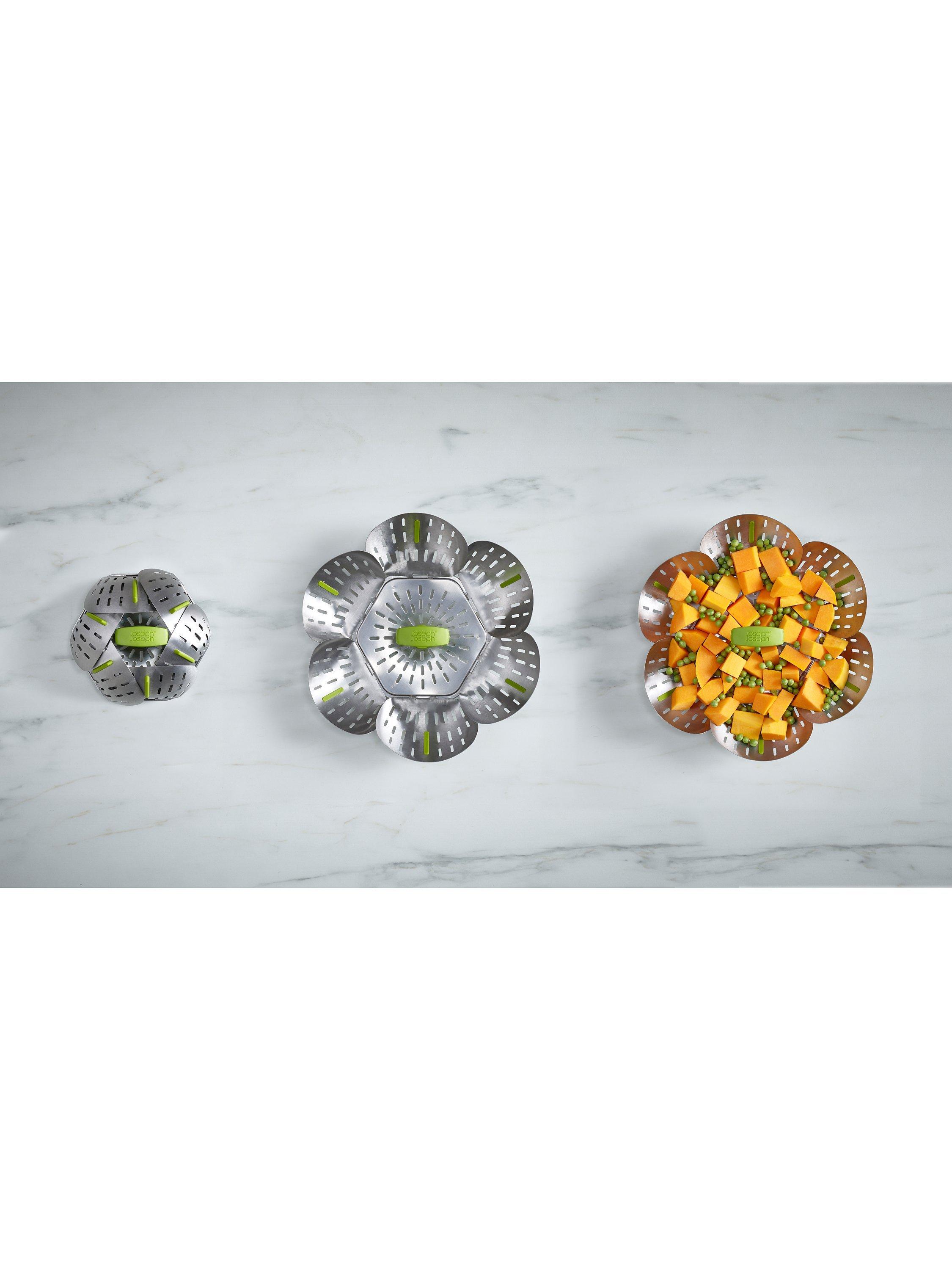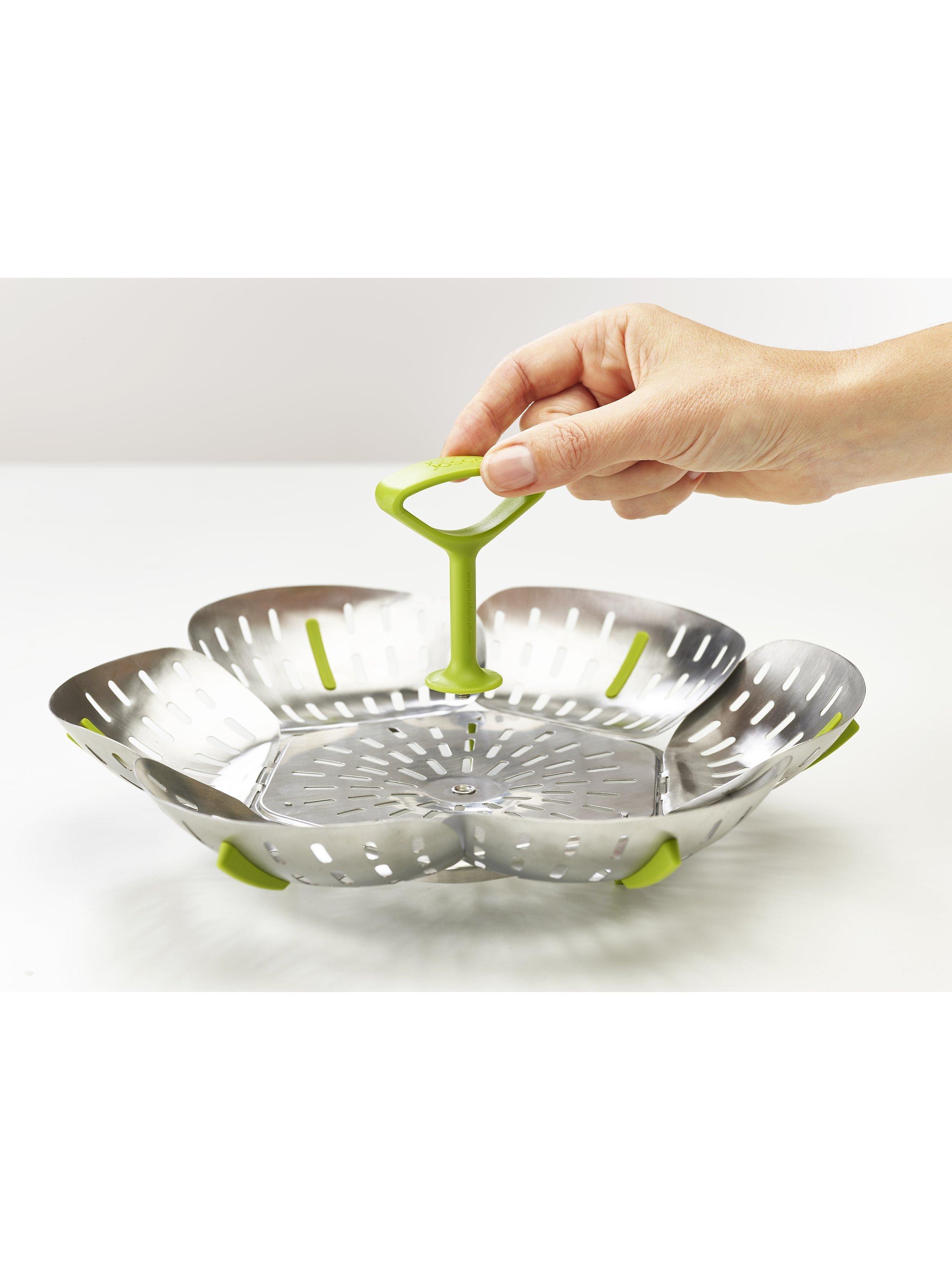 With its self-adjusting sides, Joseph Joseph's innovative folding steamer basket can be used with different sized saucepans. It can also be used with both non-stick and stainless-steel cookware.