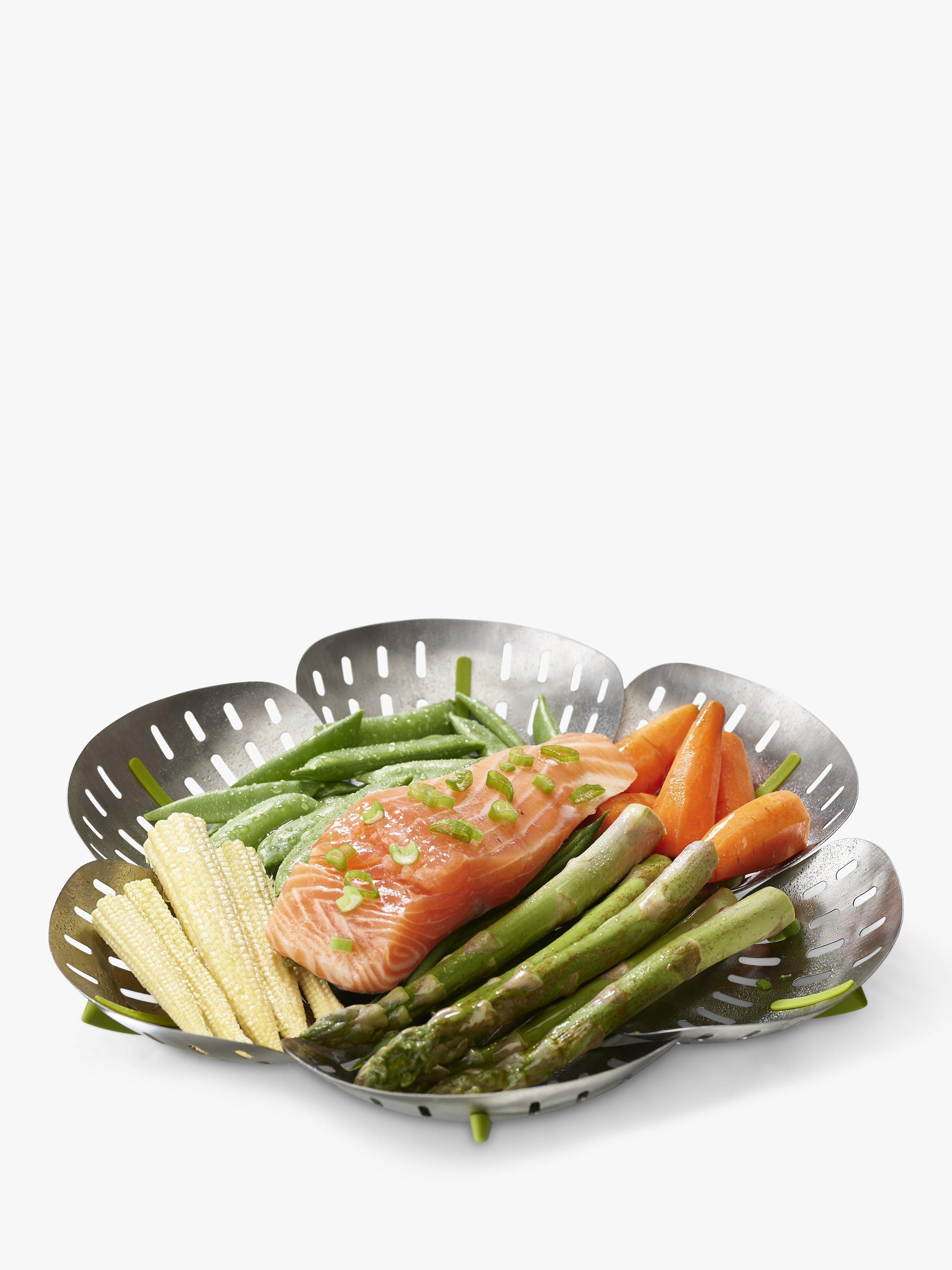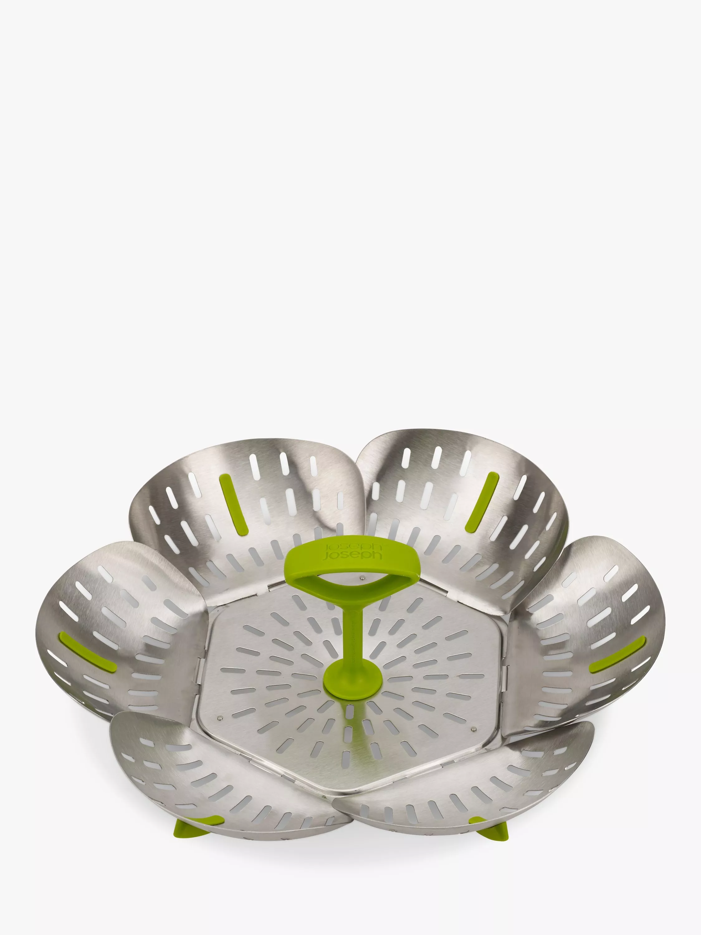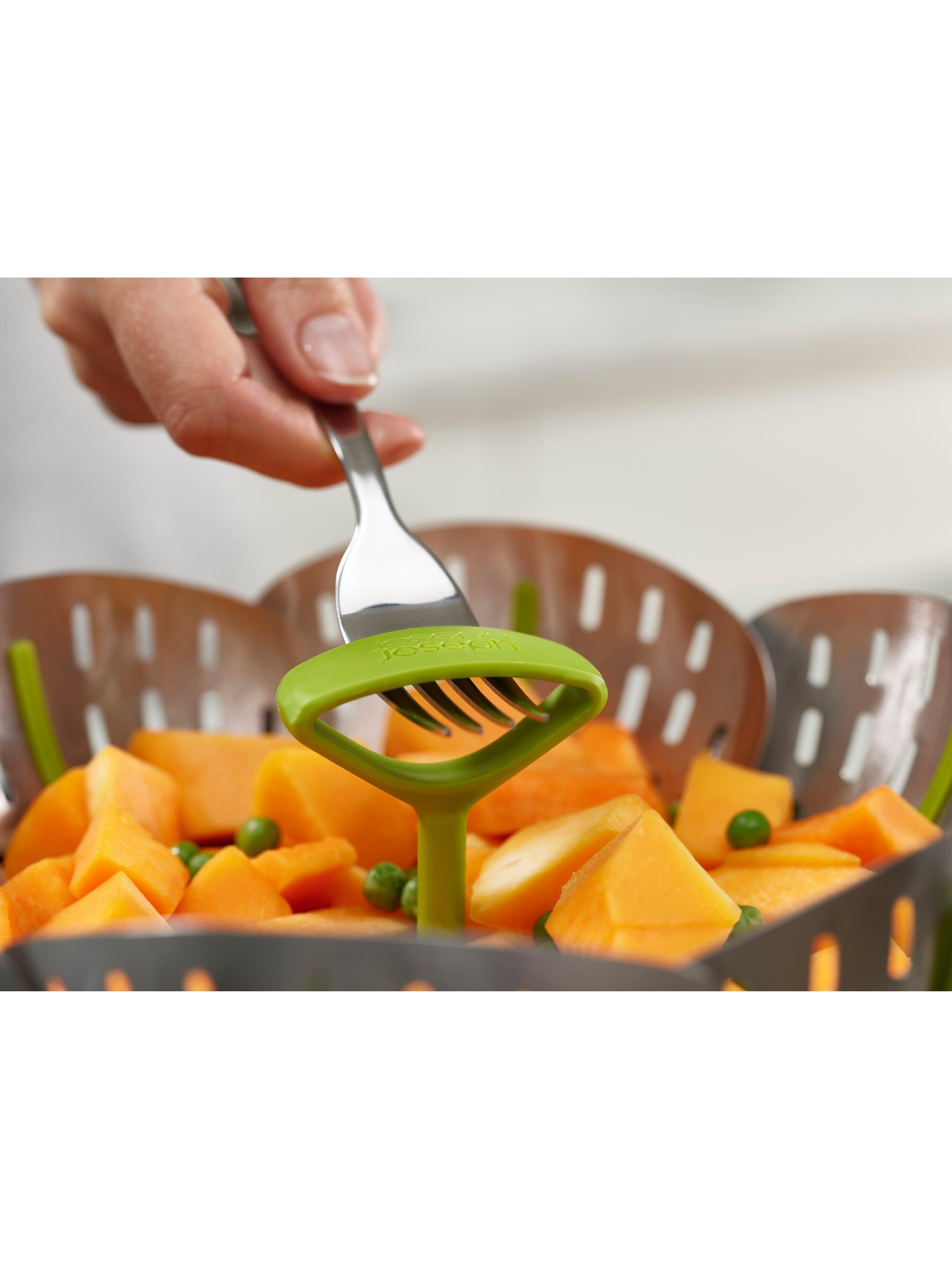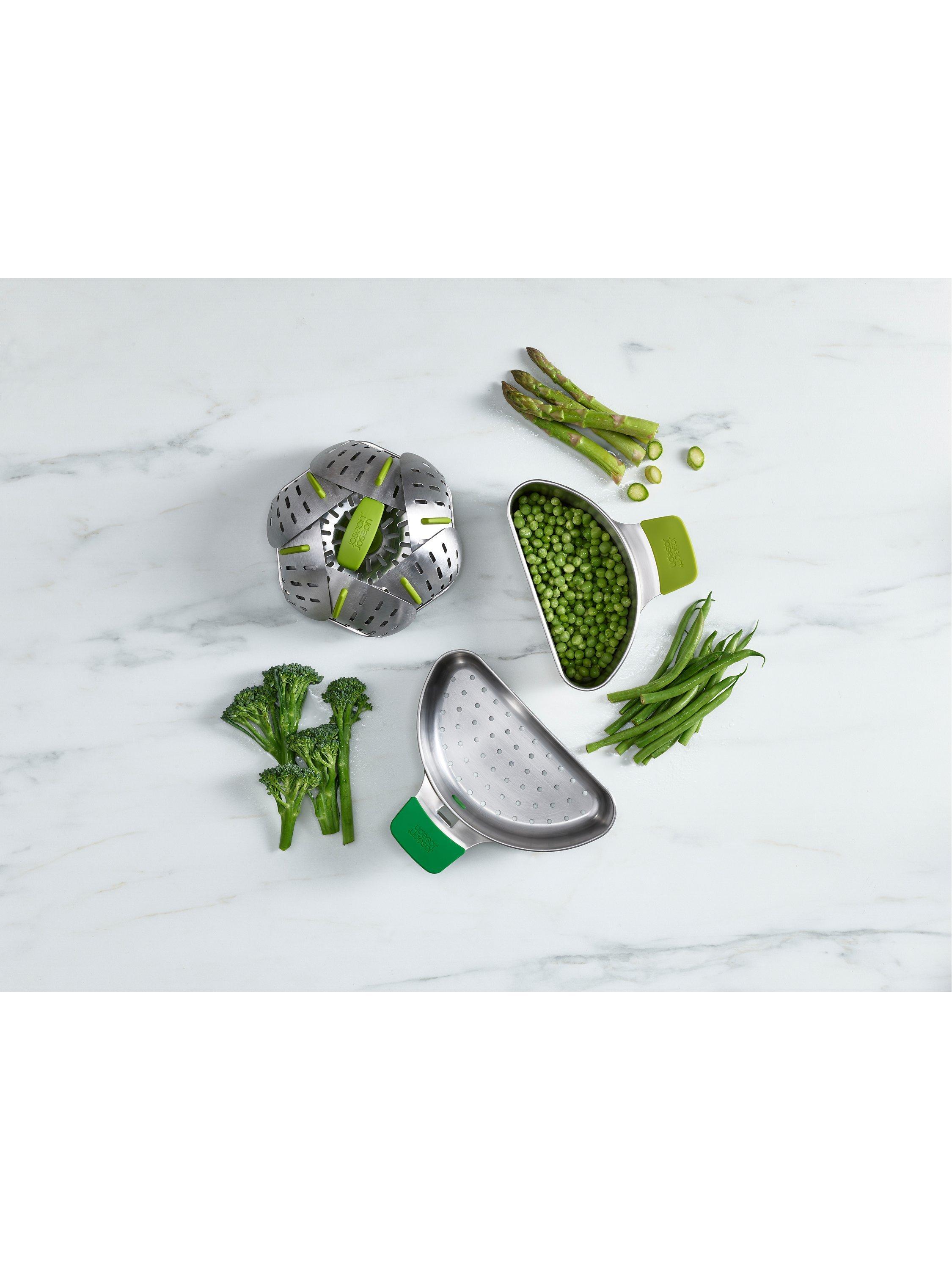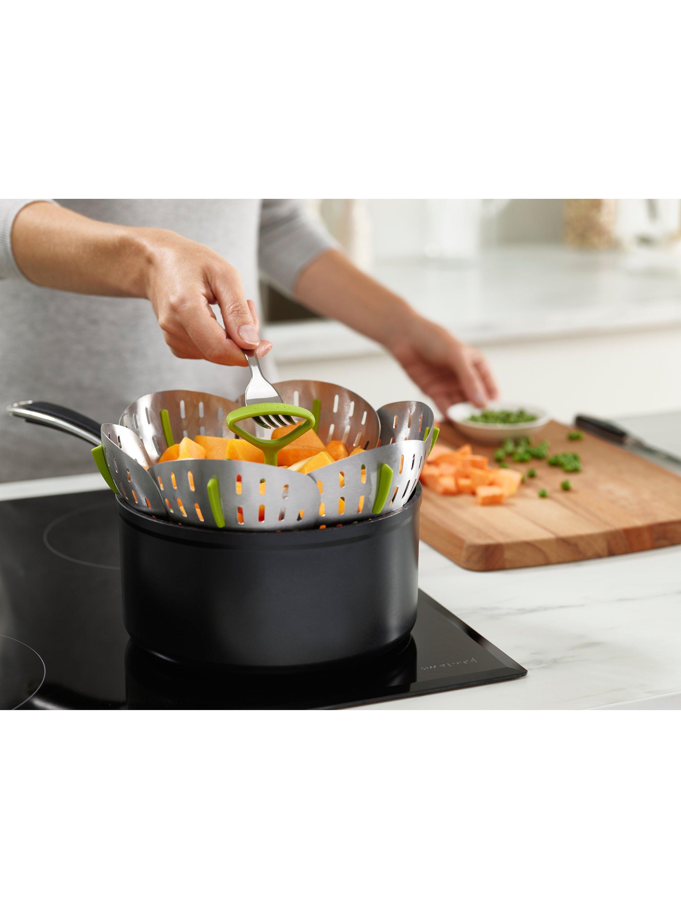 With its self-adjusting sides, Joseph Joseph's innovative folding steamer basket can be used with different sized saucepans. It can also be used with both non-stick and stainless-steel cookware.