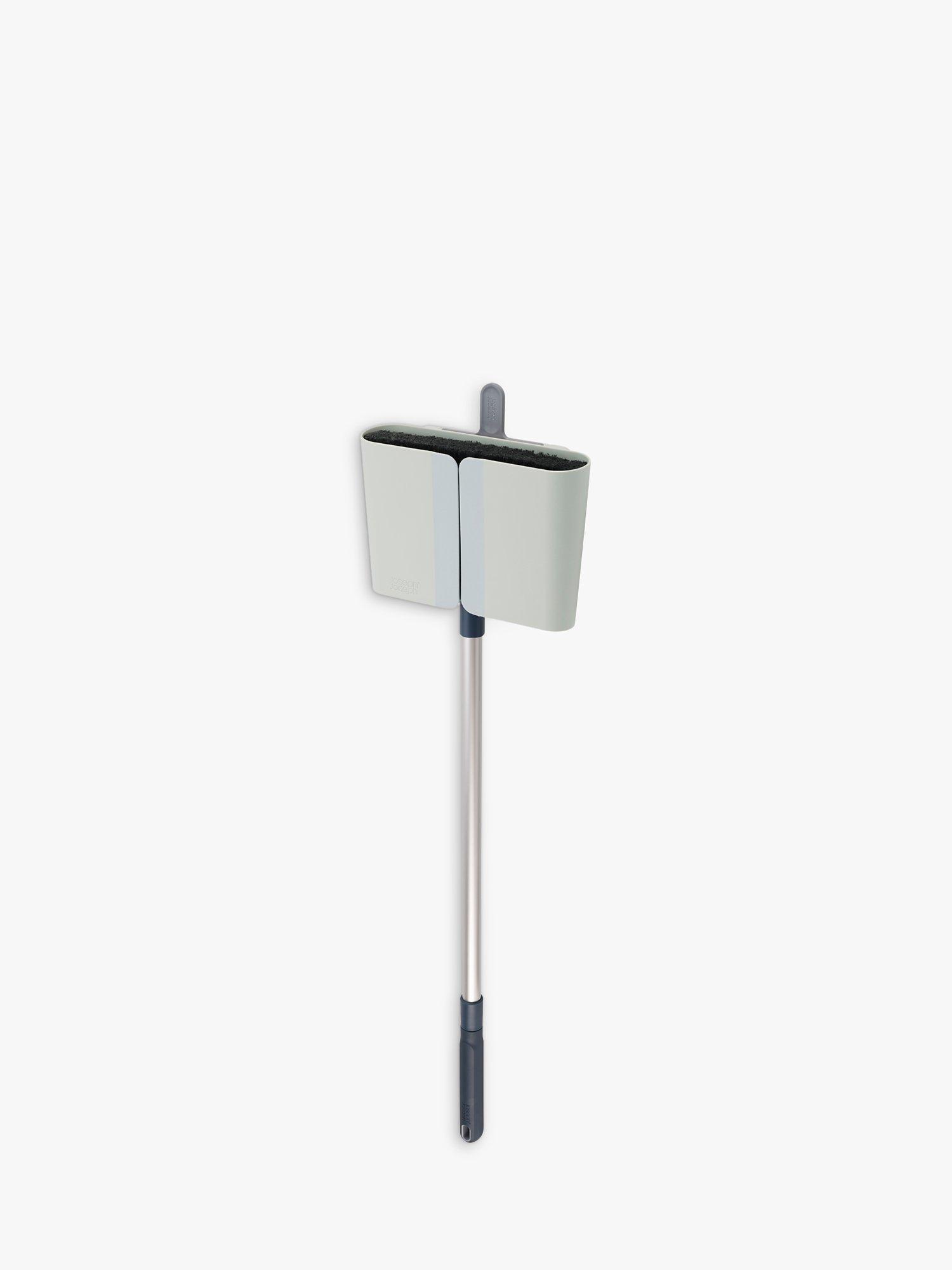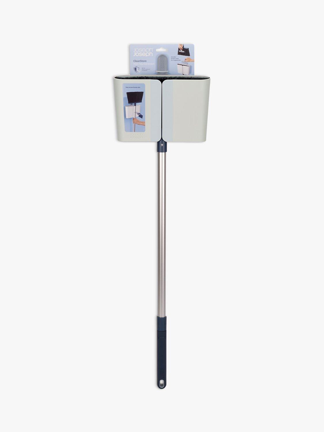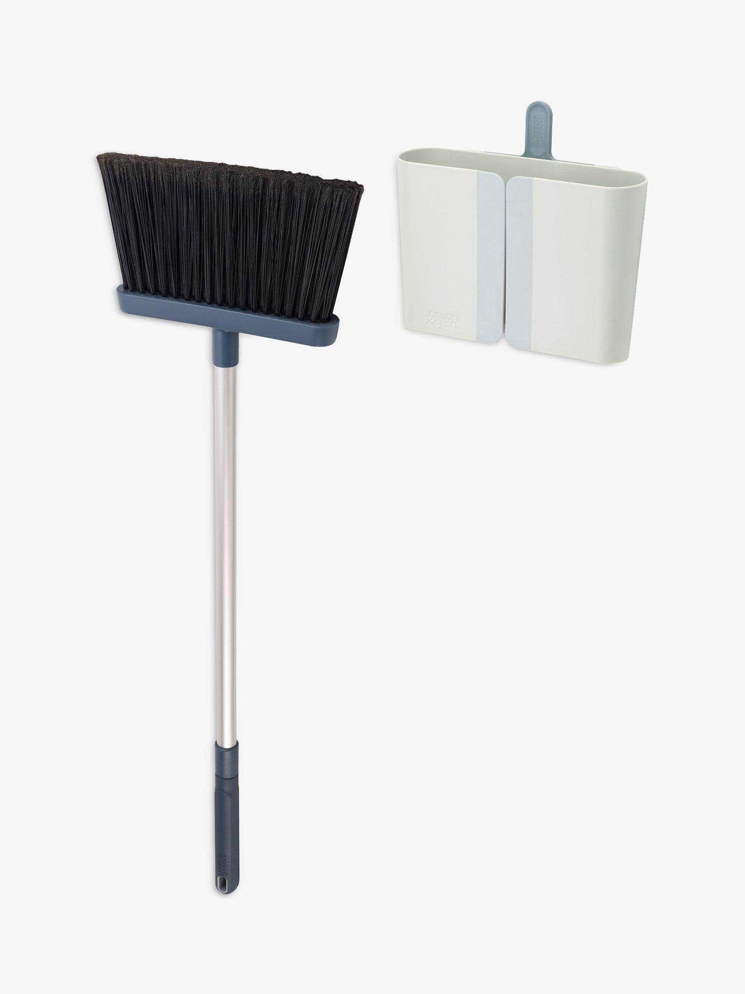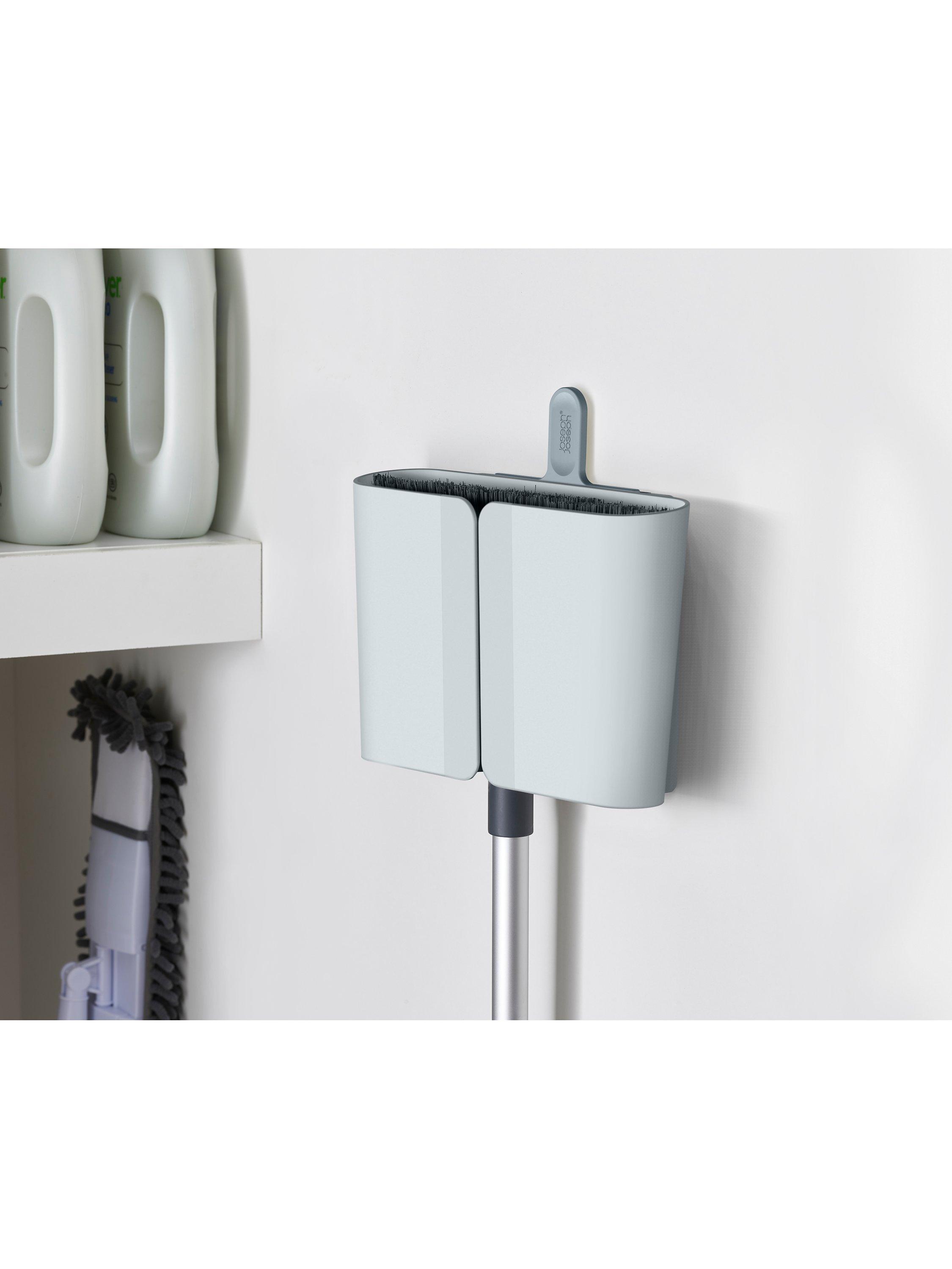 This long-handled broom comes with a Dust-shield™ holder that can be mounted to the wall and fully encloses the head and bristles, keeping everything around it cleaner. To use, simply grasp the handle of the broom and pull it through the rubber flaps of the easy-access slot on the front of the holder.