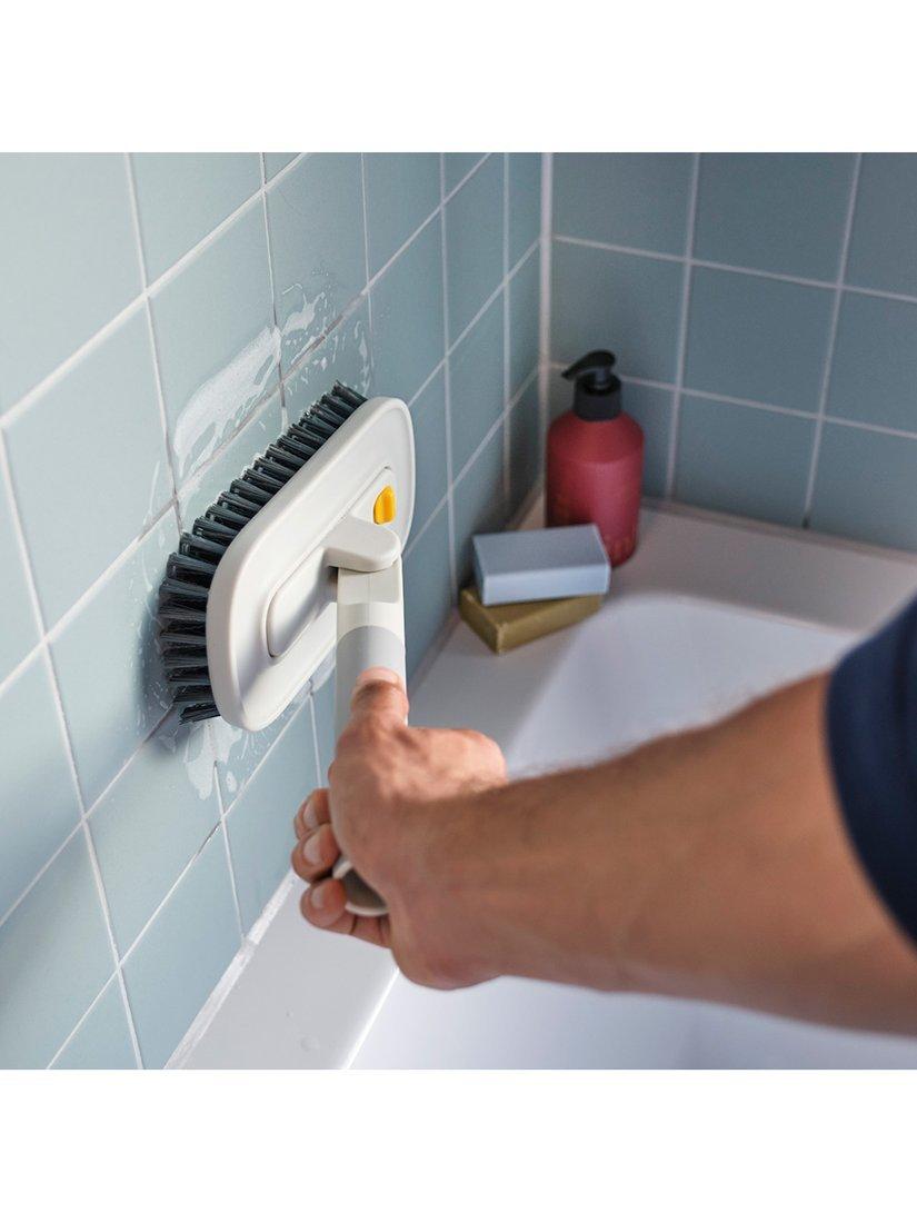 This 2-in-1 tile scrubber is designed to clean tiles effectively anywhere in your home. It features a large scrubbing head with durable bristles and an articulated, soft-grip handle, so it's easy to apply force into the task.