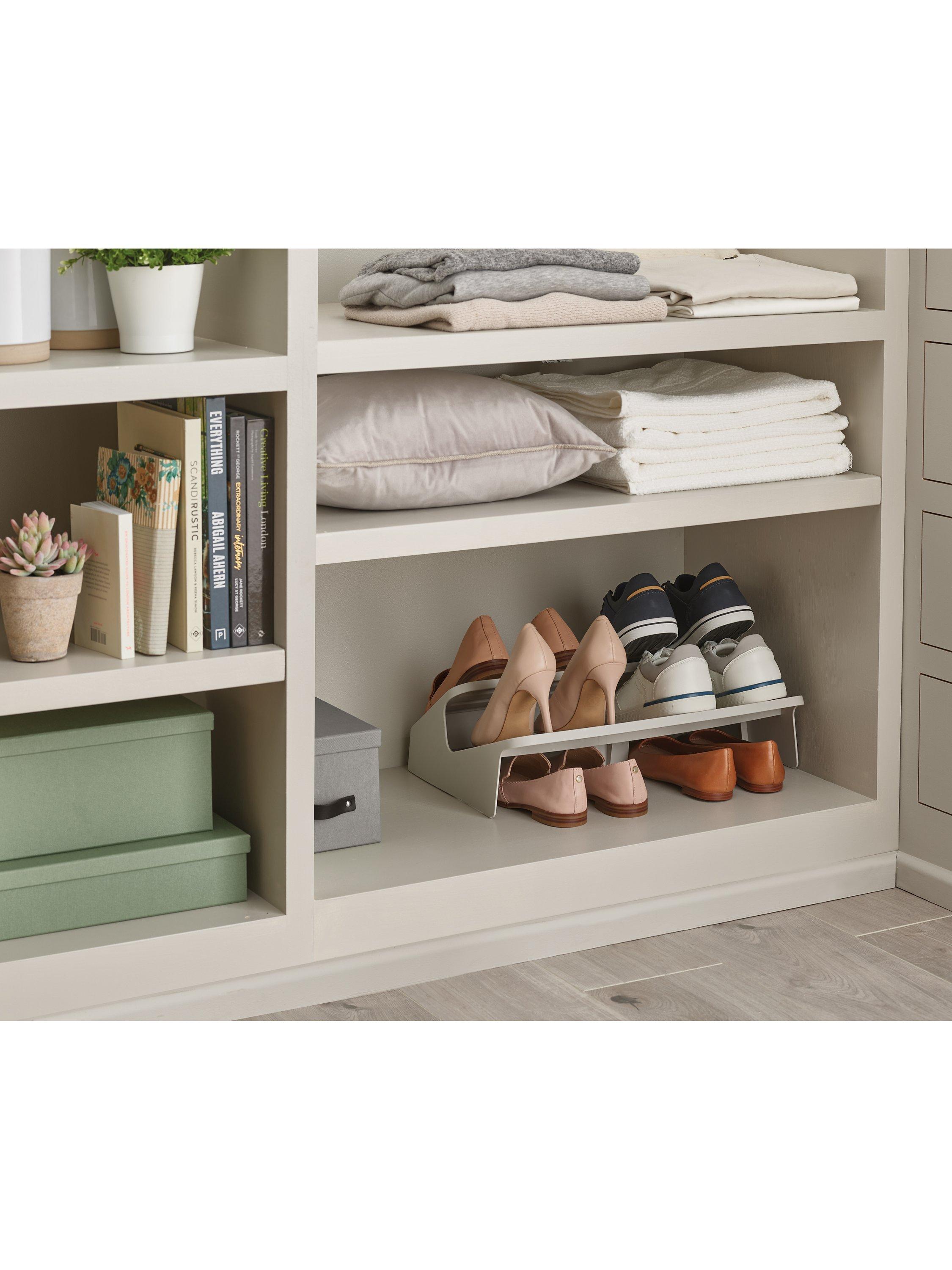 The tiered, overlapping design allows you to stack up to six pairs of shoes in a compact space. Each tier has a ridged surface to stop shoes from slipping and is easy to wipe clean when required. Suitable for a wide variety of shoes and boots, this organiser can be used inside cupboards, wardrobes and drawers or in hallways, bedrooms and utility rooms.