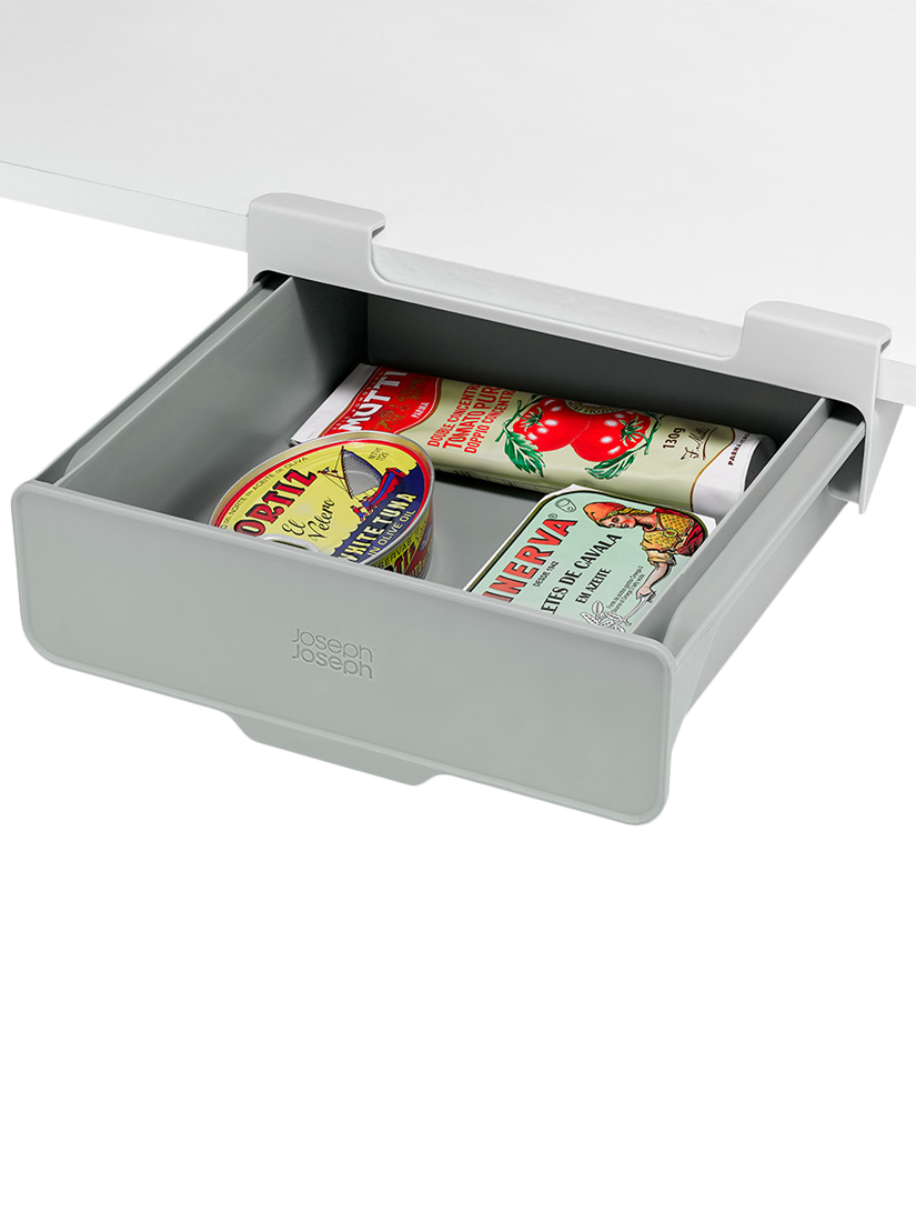 Maximise unused cupboard space with this clever under-shelf drawer. Ideal for storing awkward items like loose stock cubes, small packets, and food paste tubes, it keeps your kitchen organised.