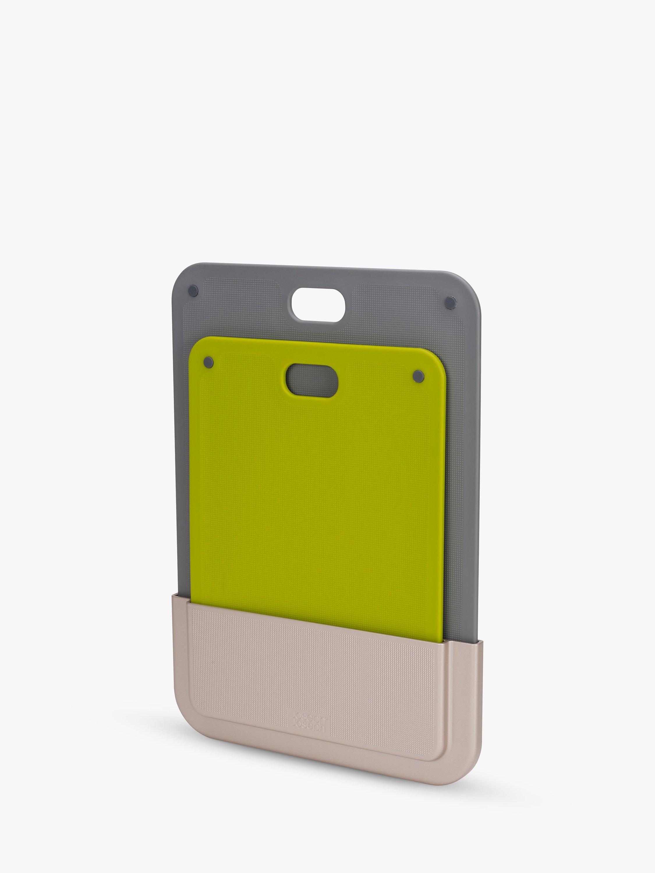 The boards feature non-slip feet and textured, knife-friendly cutting surfaces. Installation instructions included. Boards are dishwasher-safe. The case is wipe-clean only.