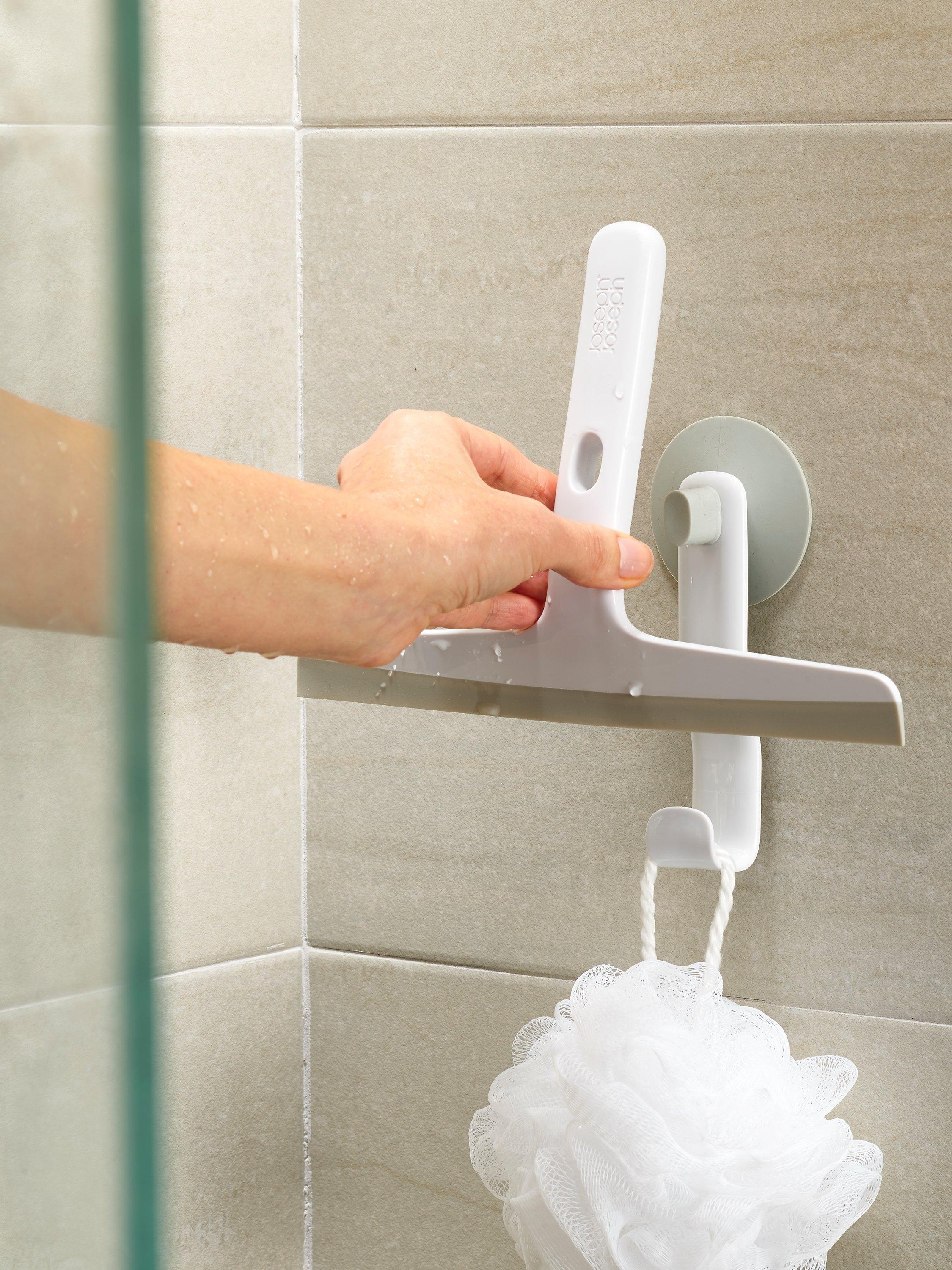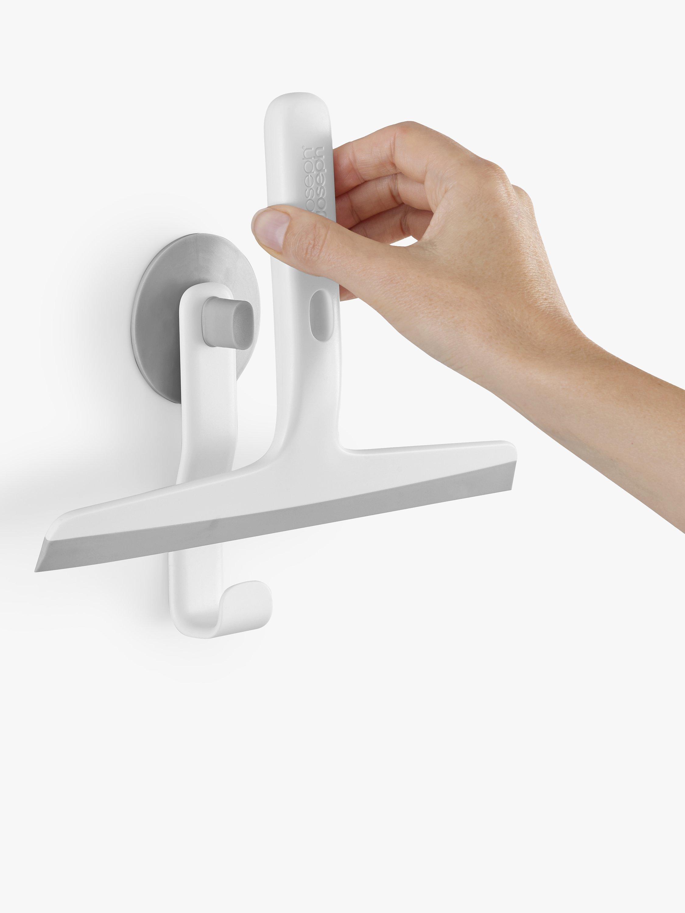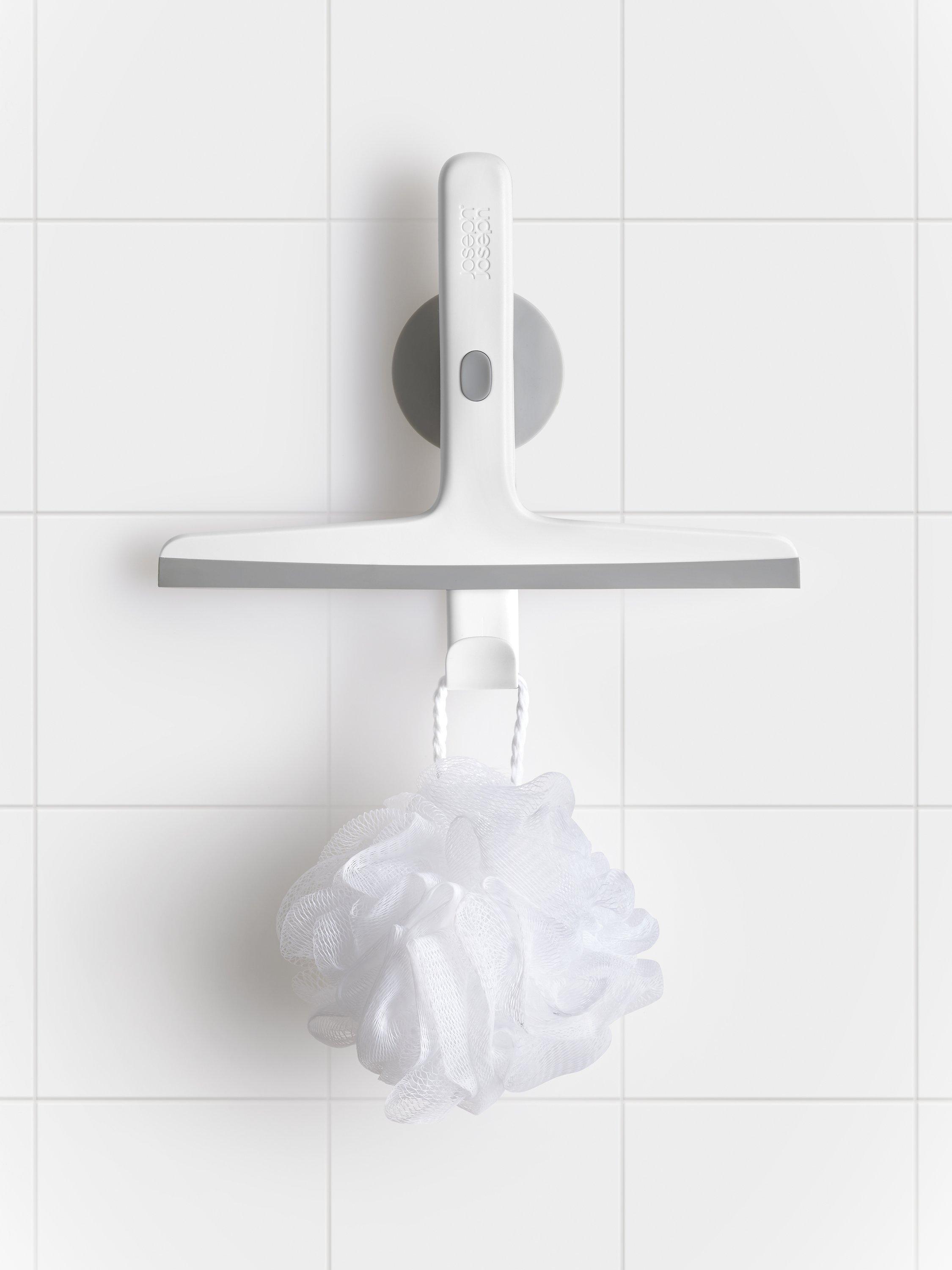 Not only does it provide a secure place to store the squeegee, it also has an additional hook beneath for hanging a range of bathroom accessories, such as sponges, back scrubbers or cleaning cloths.