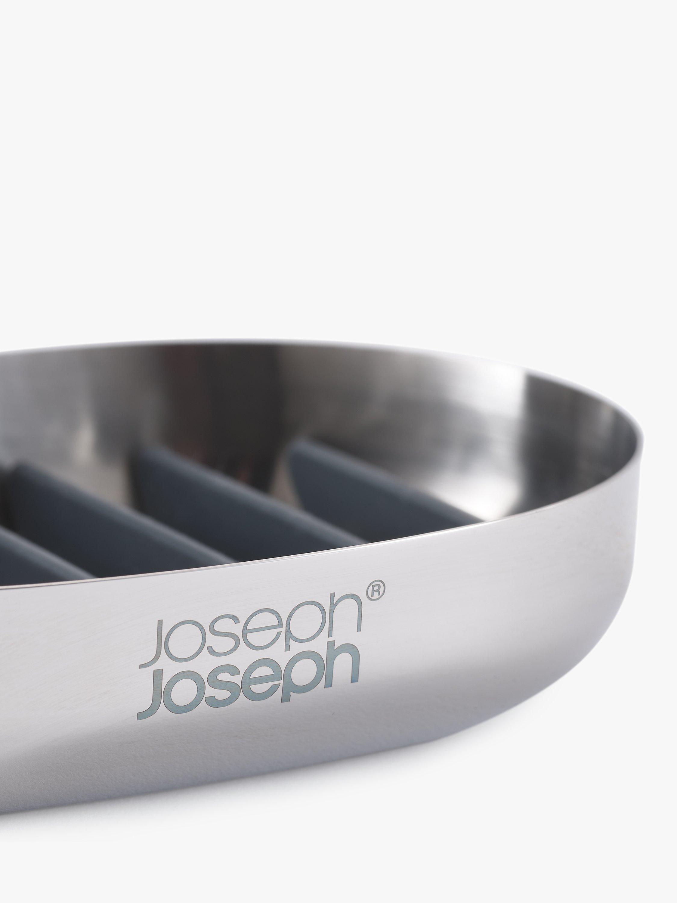 Conventional soap dishes are difficult to keep clean and often allow the soap to sit in drained water, which prevents the bar from drying properly and creates more mess. This stylish soap dish, however, features a draining rack that raises the bar up from the base and allows excess water and soap suds to run away, preventing the bar from dissolving further.