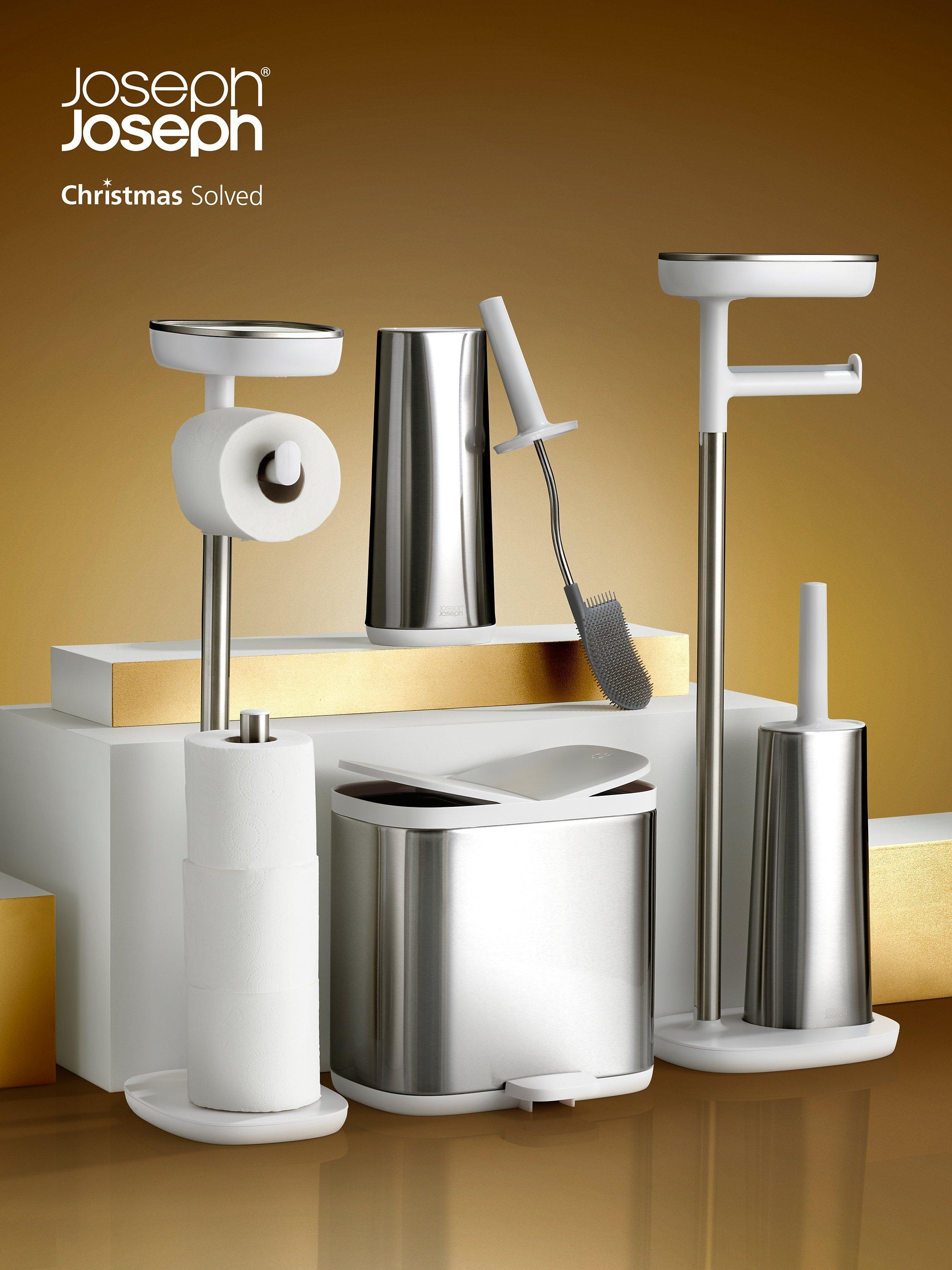This free-standing fixture from Joseph Joseph combines basic bathroom accessories into a single item.
