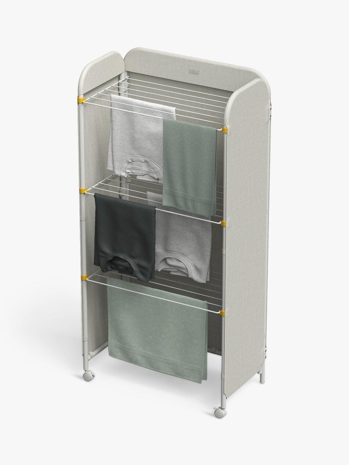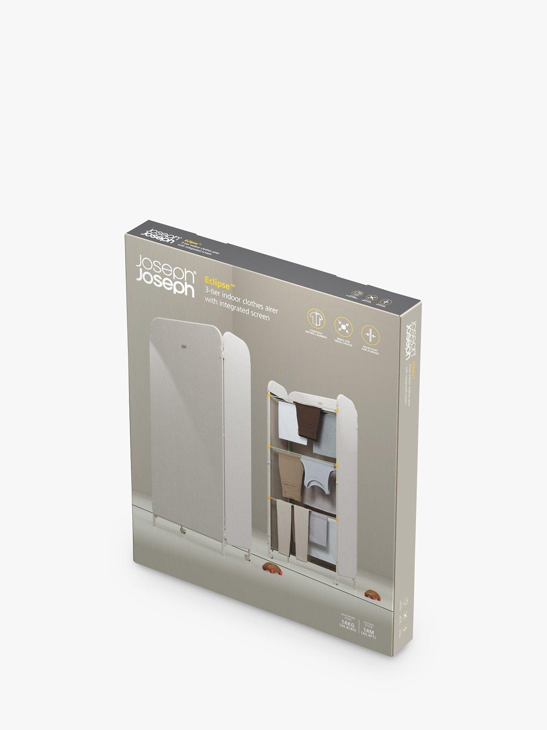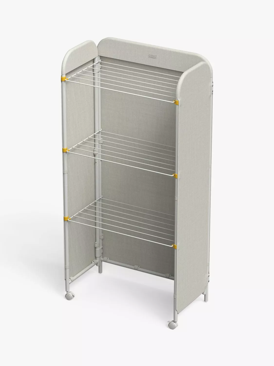 The Eclipse airer keeps unsightly washing out of sight whilst drying. It features three adaptable wire shelves suitable for drying a variety of items, including long garments, in a heavy-gauge steel construction with a stylish fabric exterior.