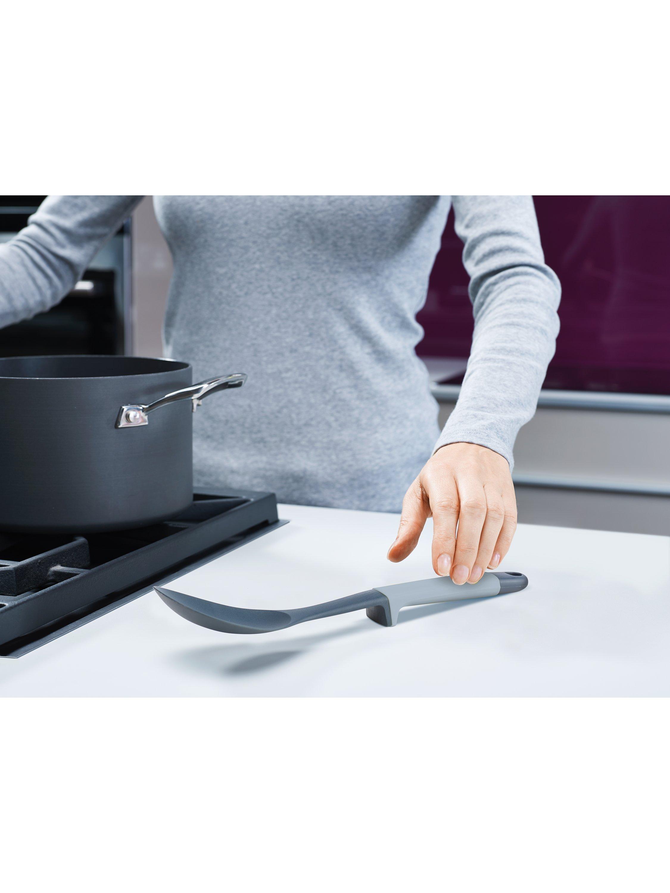 Elevate the way you use kitchen utensils. Joseph Joseph's Elevate range of kitchen tools has been specifically designed to improve hygiene and minimise the mess made by placing utensils onto kitchen surfaces. Each tool has an innovative, weighted handle with an integrated tool rest, ensuring that when an Elevate utensil is placed down, its head is always raised up and doesn't drip on work surfaces.