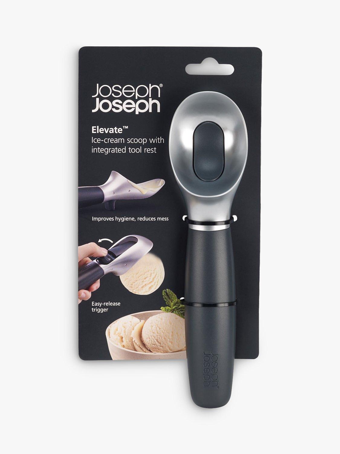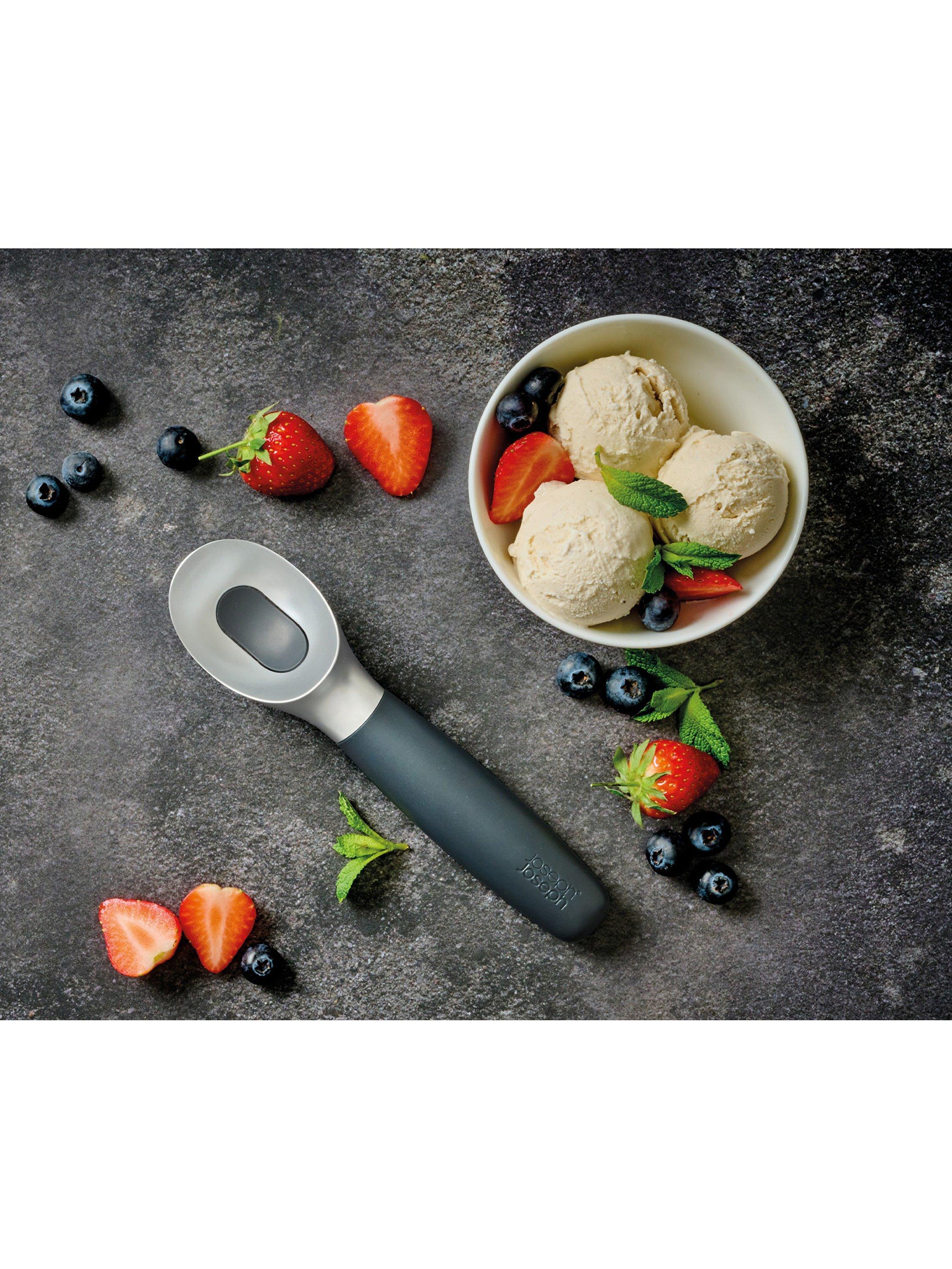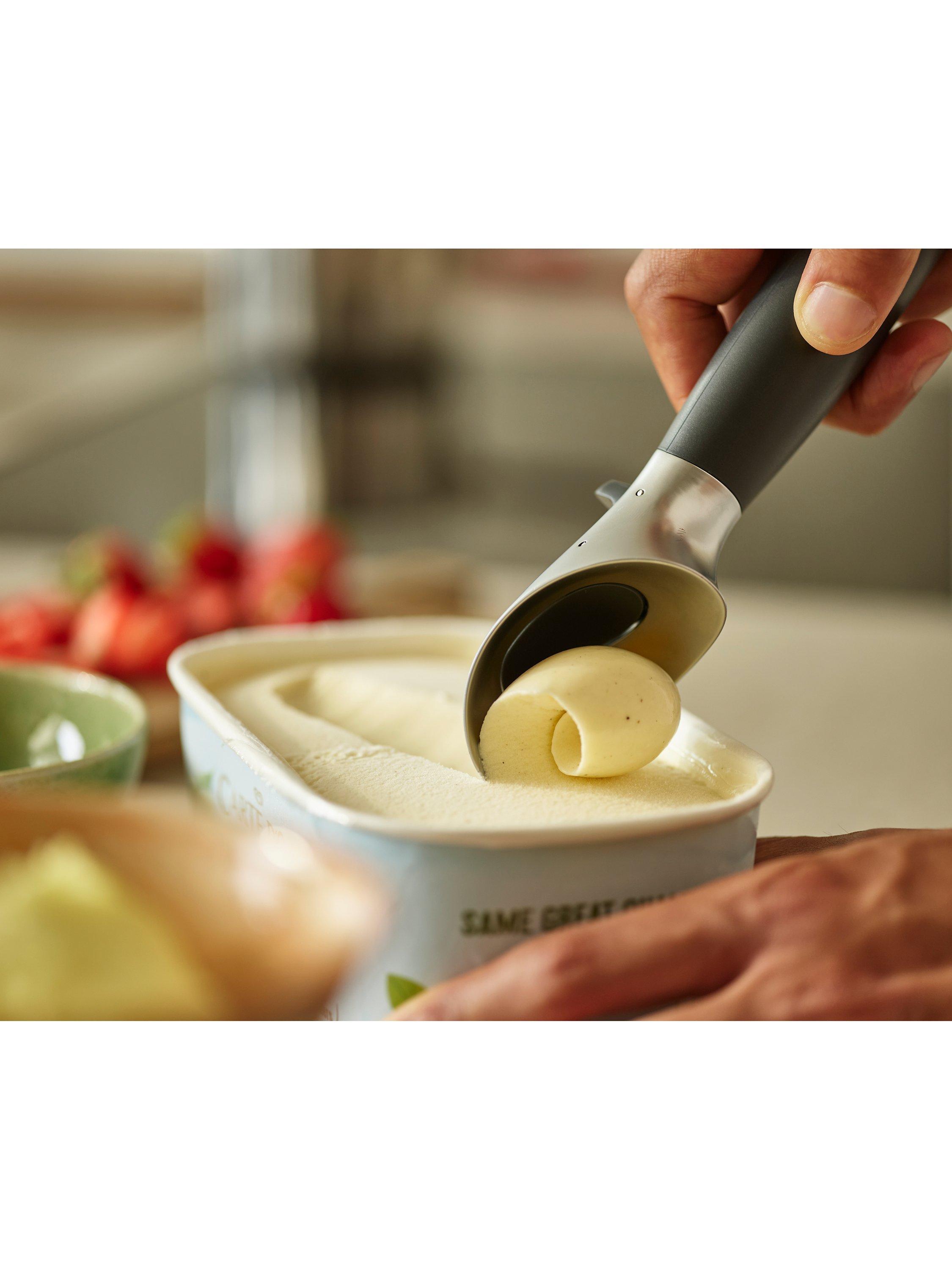 Serving ice cream can be a messy business, but this clever scoop helps you keep your cool. From the Elevate range by Joseph Joseph, it features a weighted handle and integrated tool rest that prevents the head from touching the worktop when placed down, improving hygiene and reducing mess.