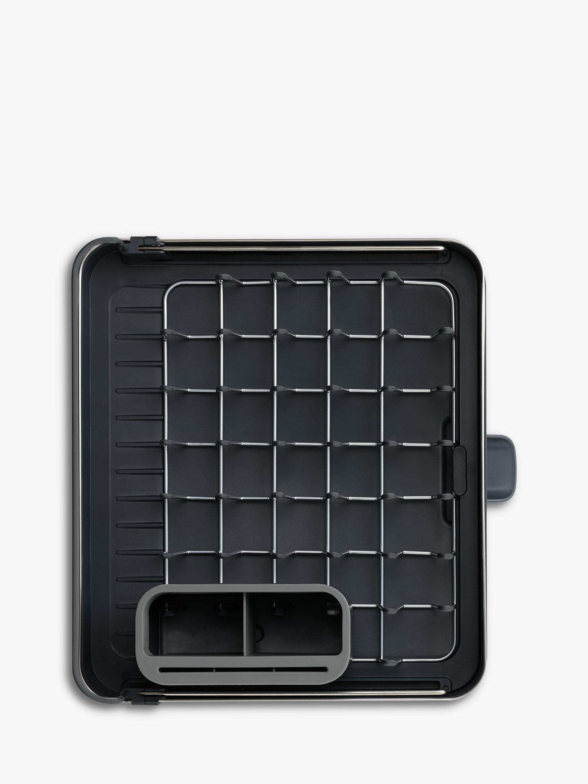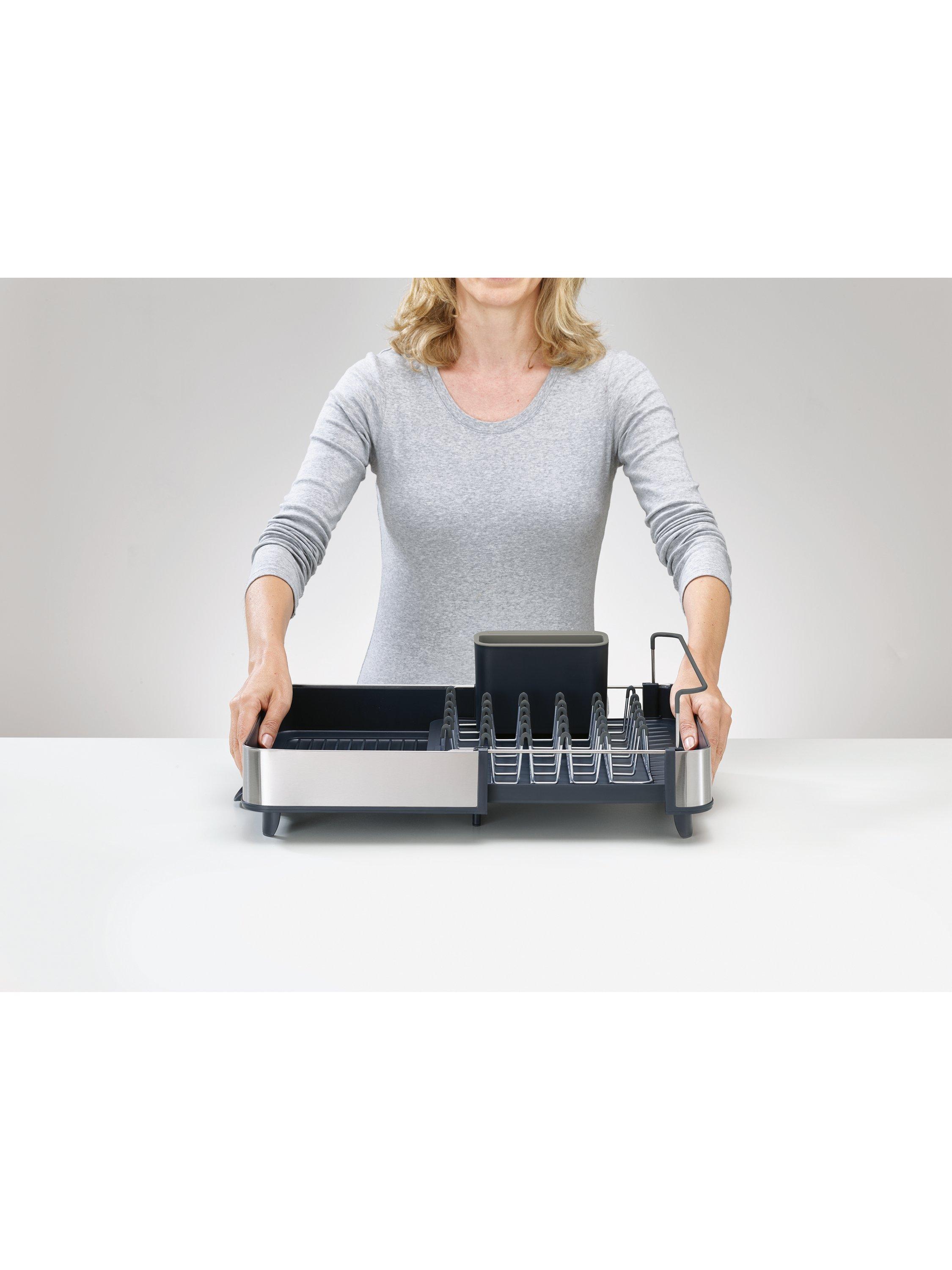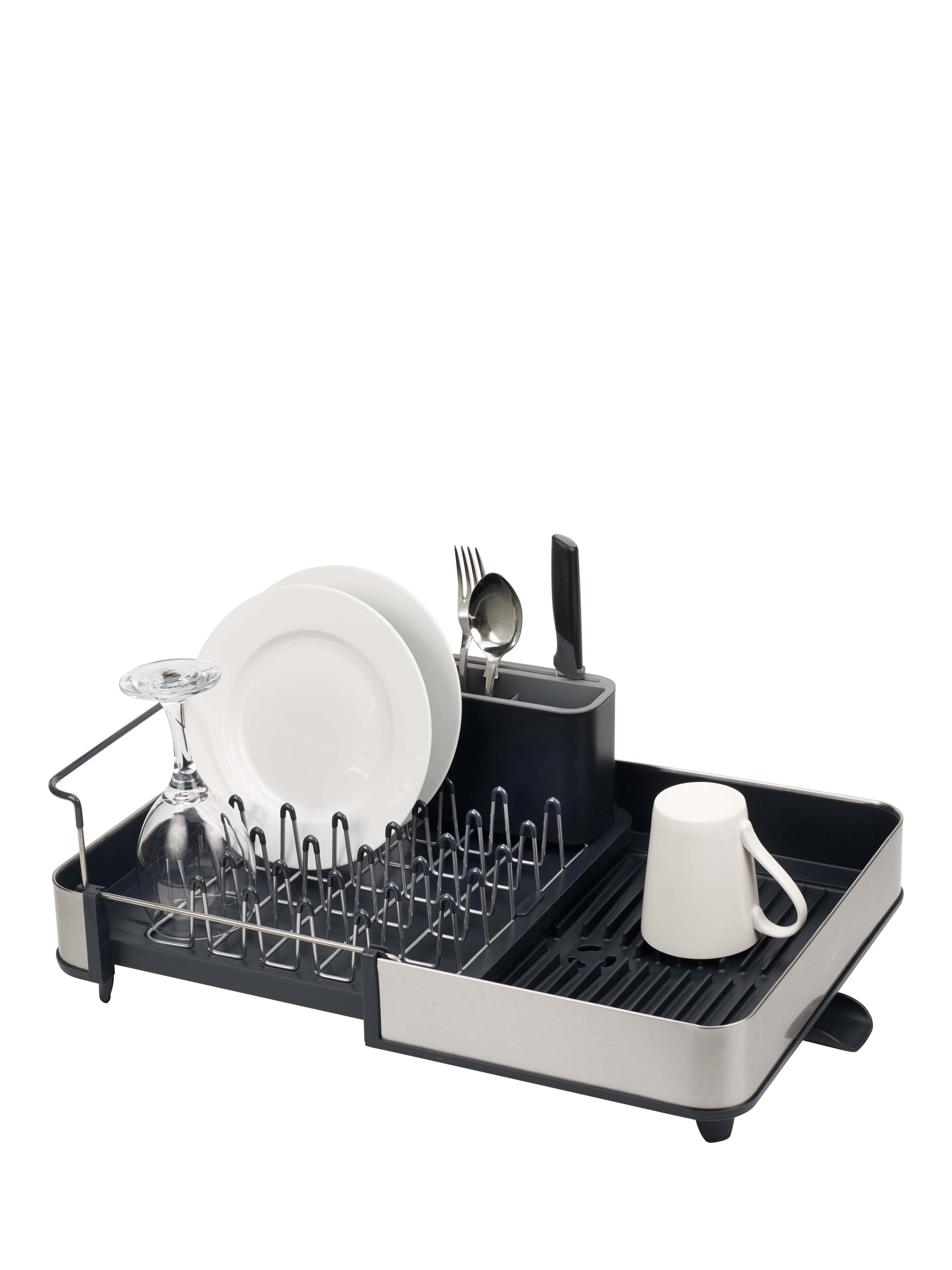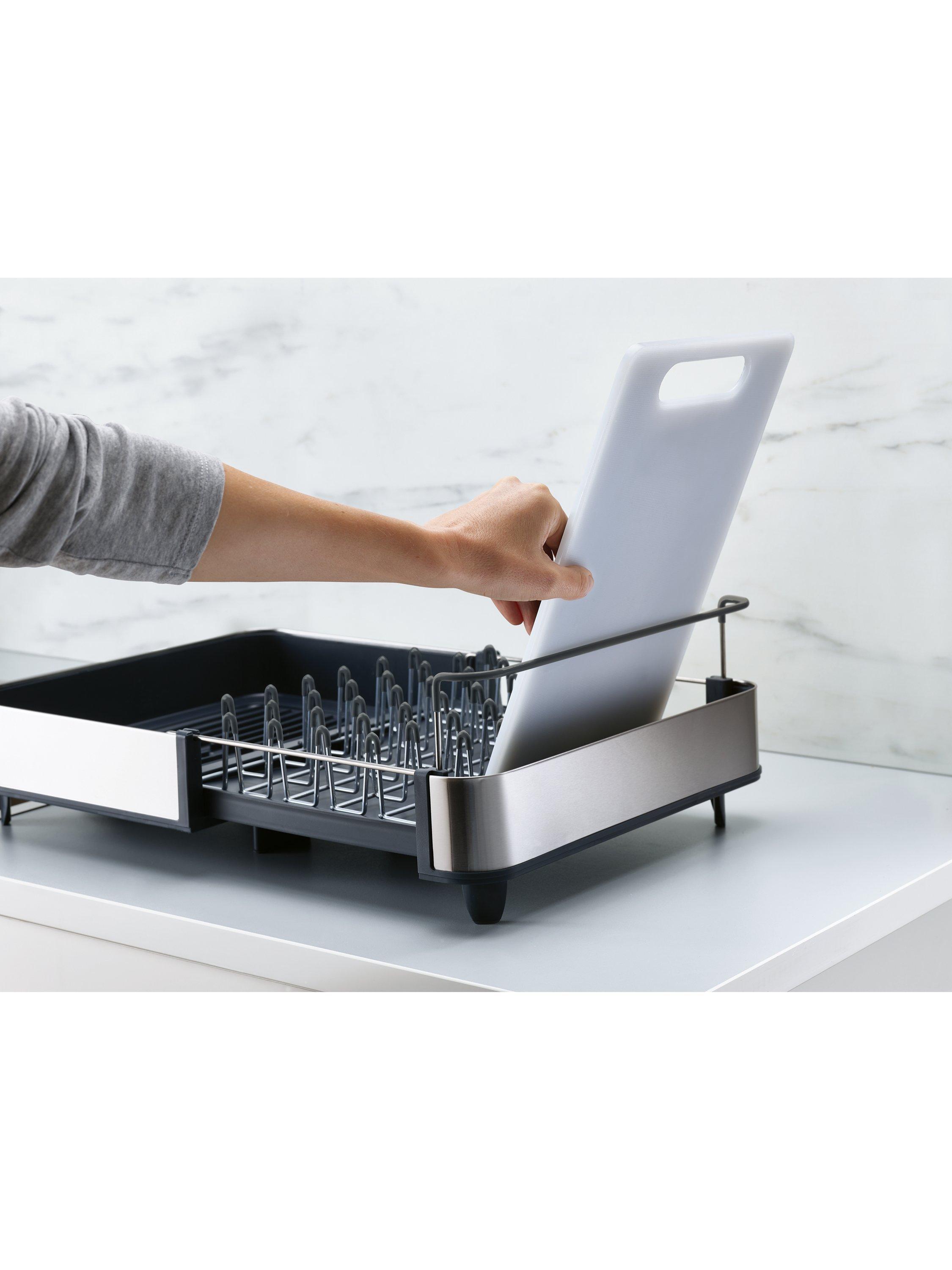 This smart dish rack features a 2-part sliding tray that allows you to easily adjust the size of your draining space when you need more room.