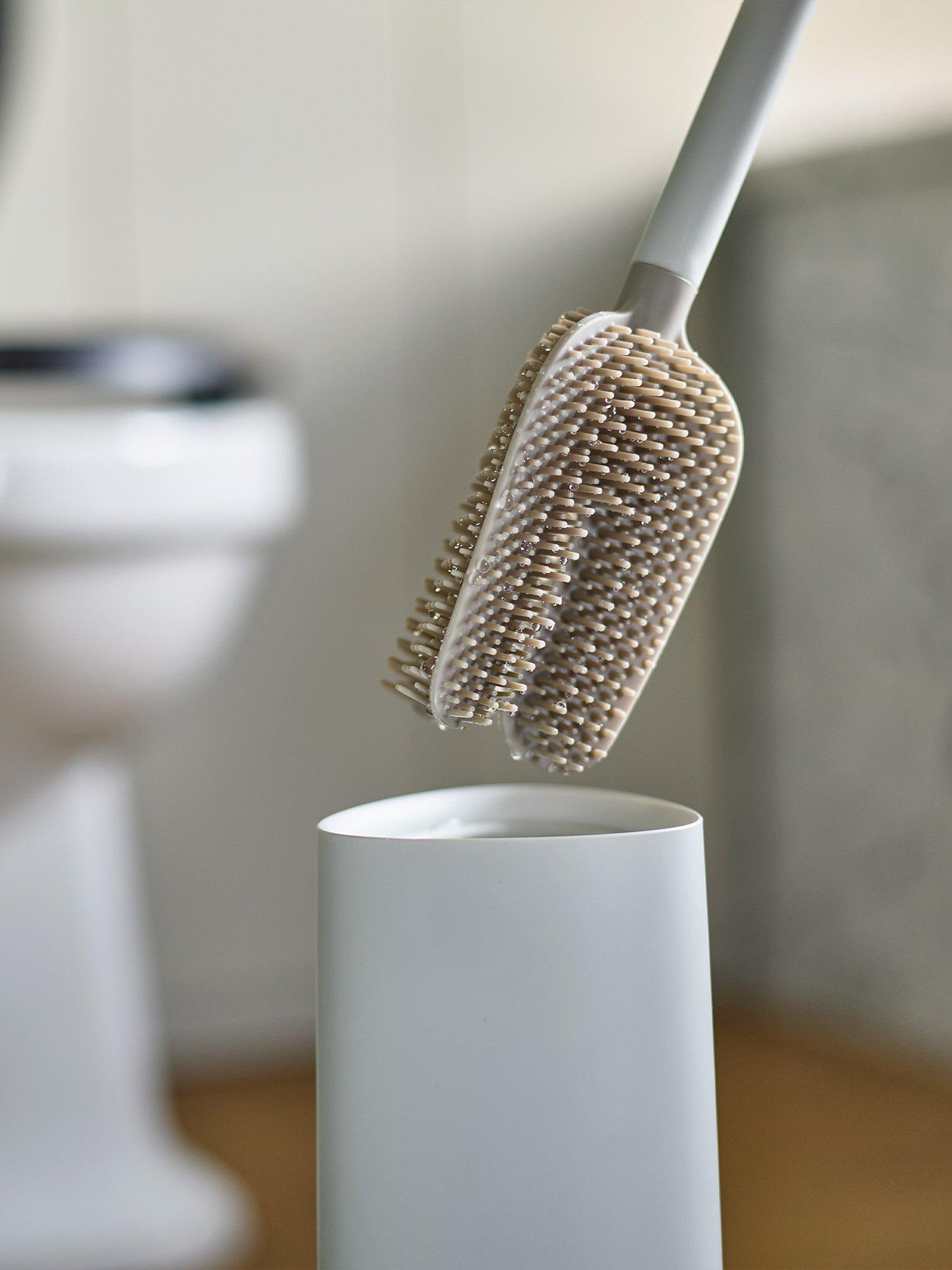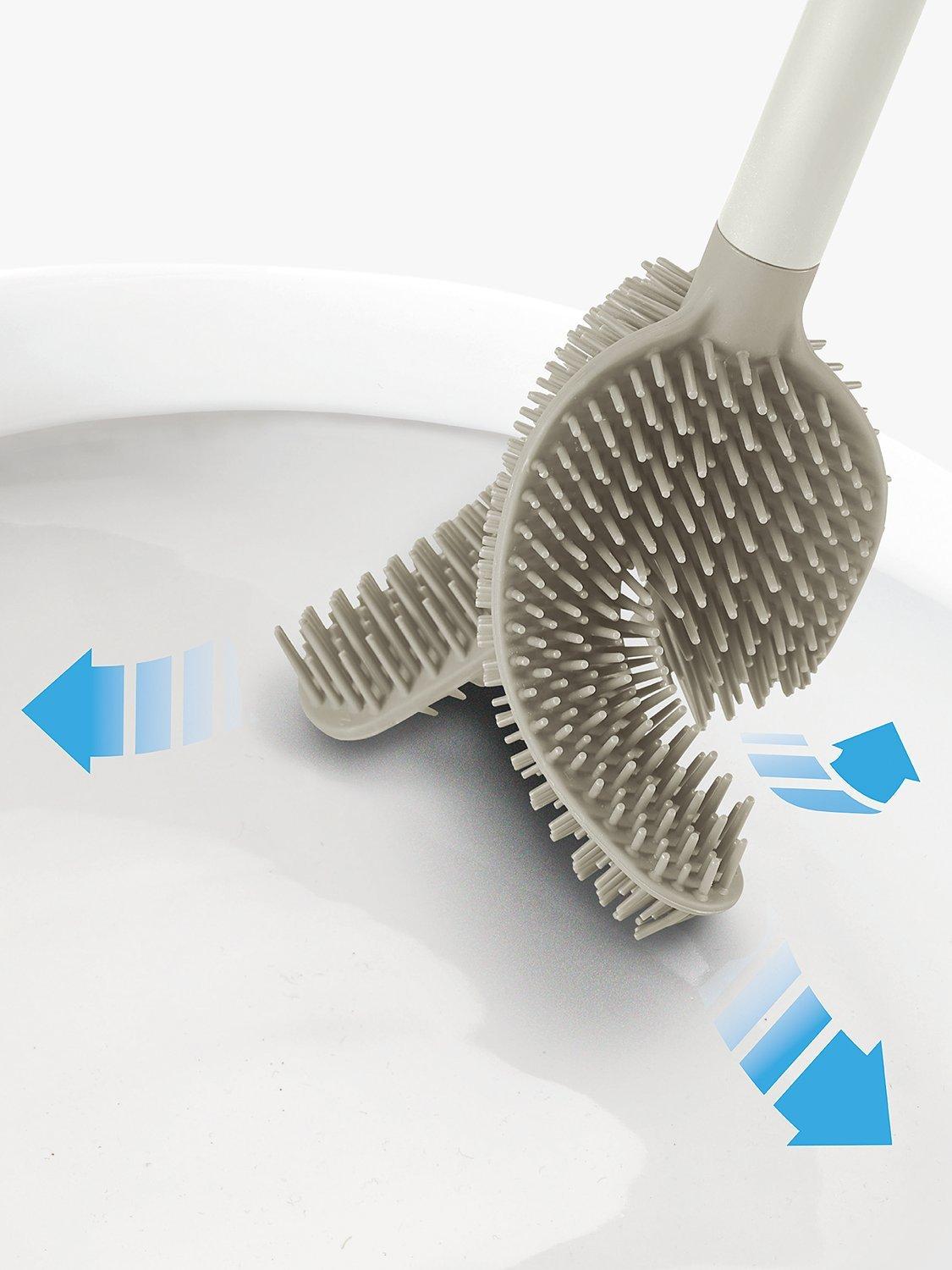This advanced toilet brush features a flexible, triple-action head that cleans in three directions at once. It has widely spaced bristles that prevent dirt clogging, allow liquid to drain quickly and are more durable than conventional-style bristles. It comes with a smart storage holder with a smooth, matt finish.