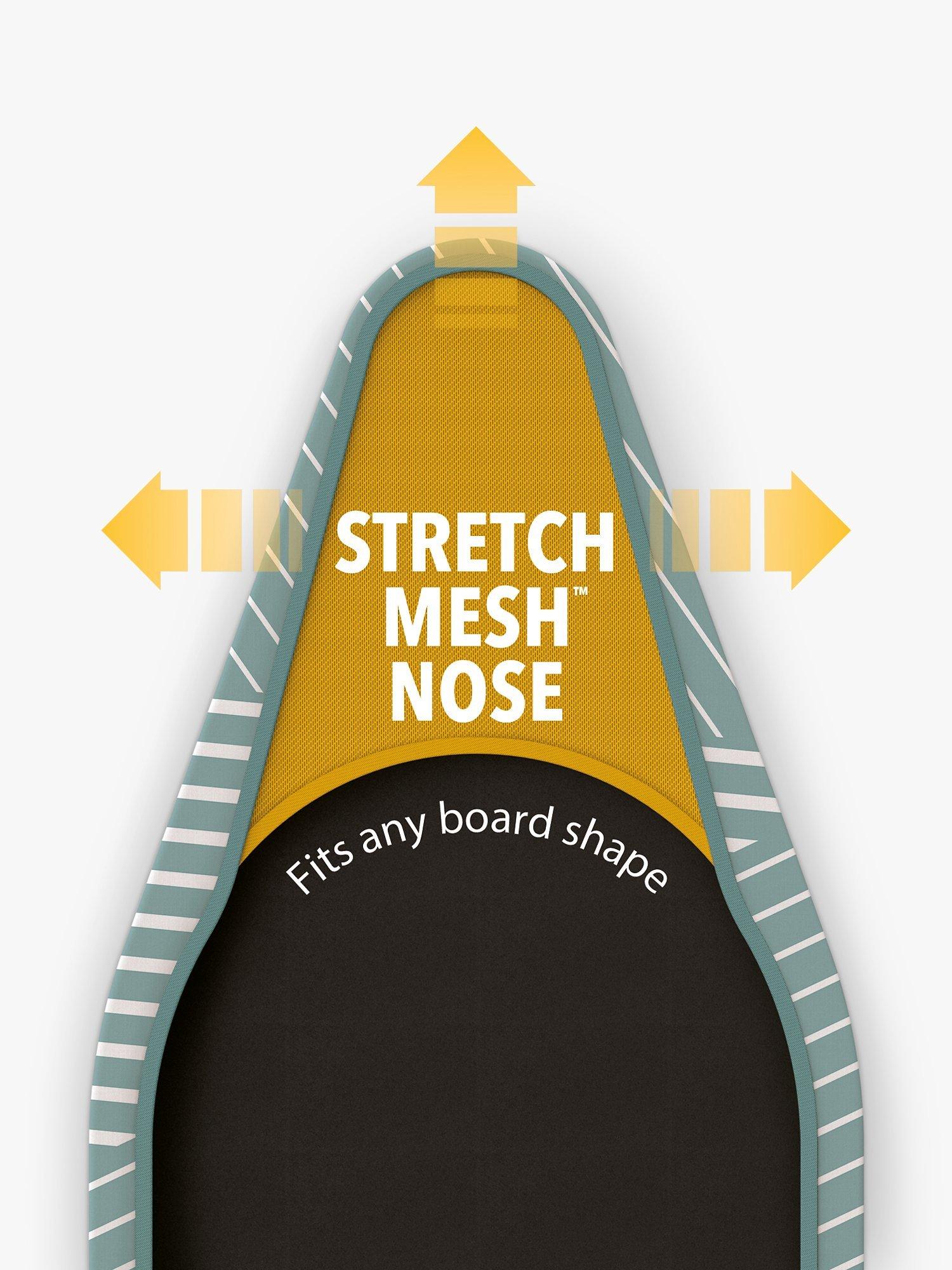 Flexa™ features an innovative StretchMesh™ nose that fits quickly and easily over the tip of any board, an elasticated strap for tightening across the centre and a tensioning cord with an easy-tie toggle for a perfect fit.