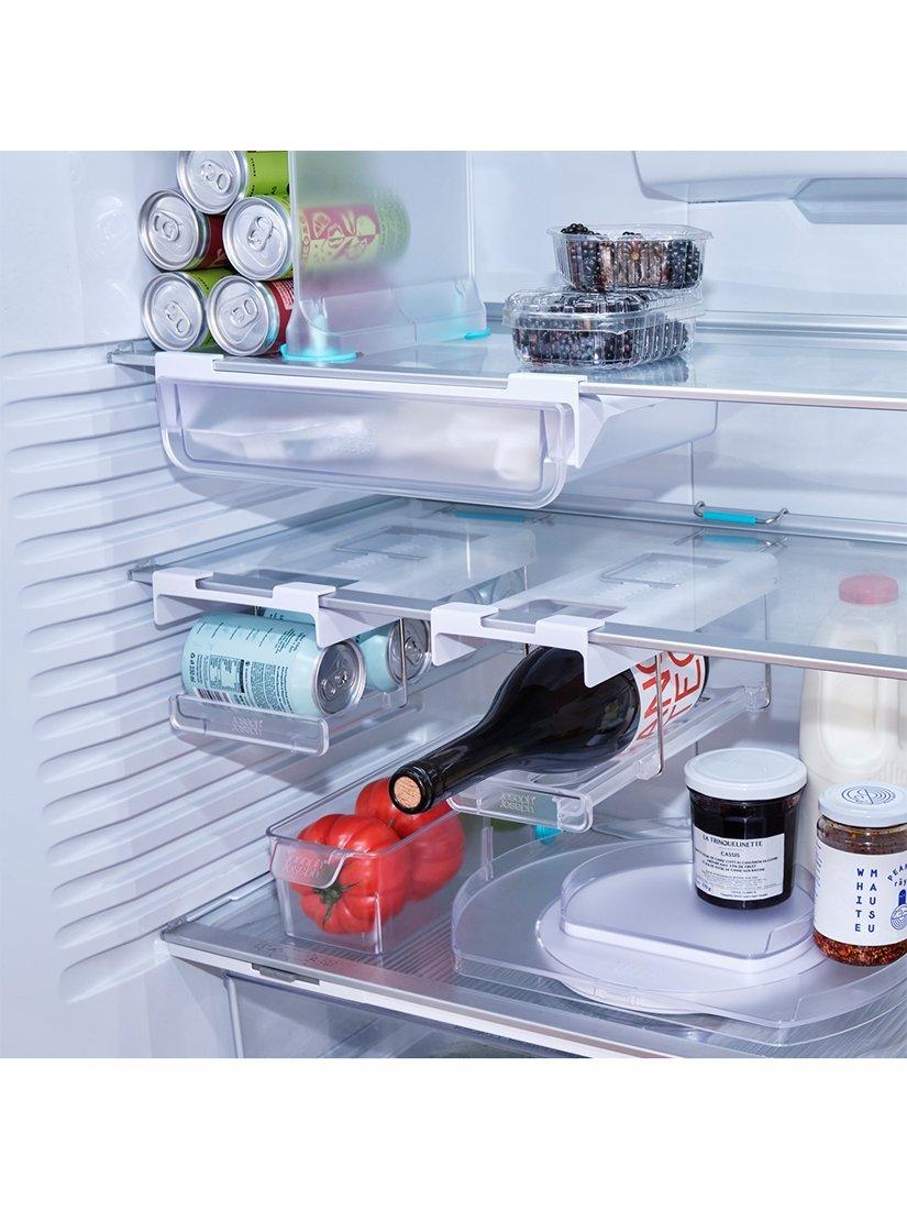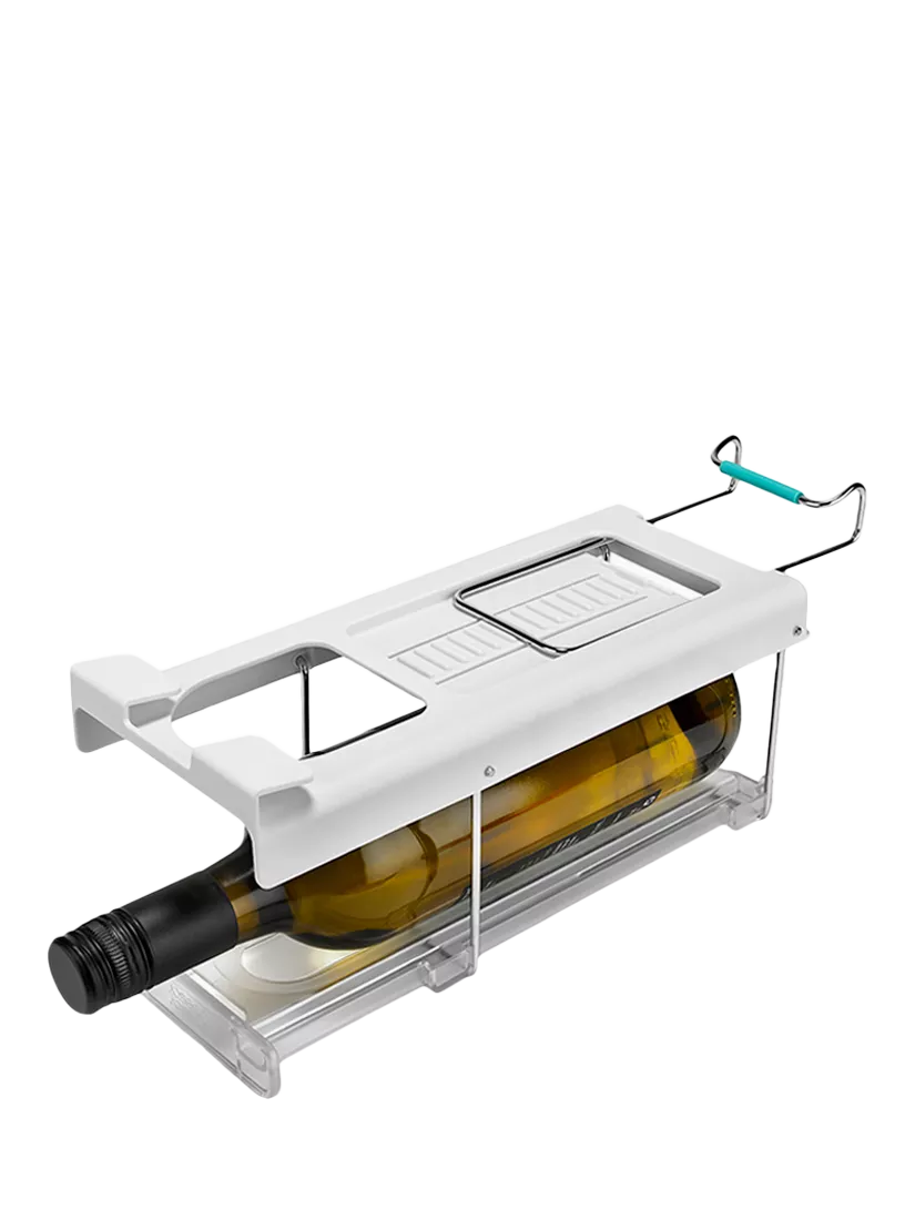 Storing bottles in your fridge can be challenging, often leading to unstable stacking and limited space. This innovative design solves the problem by clipping underneath shelves, creating convenient, easy-access bottle storage that makes use of unused space. It’s large enough to hold standard bottles of wine and champagne, and is easy to install with clips on both the front and back for a secure fit.