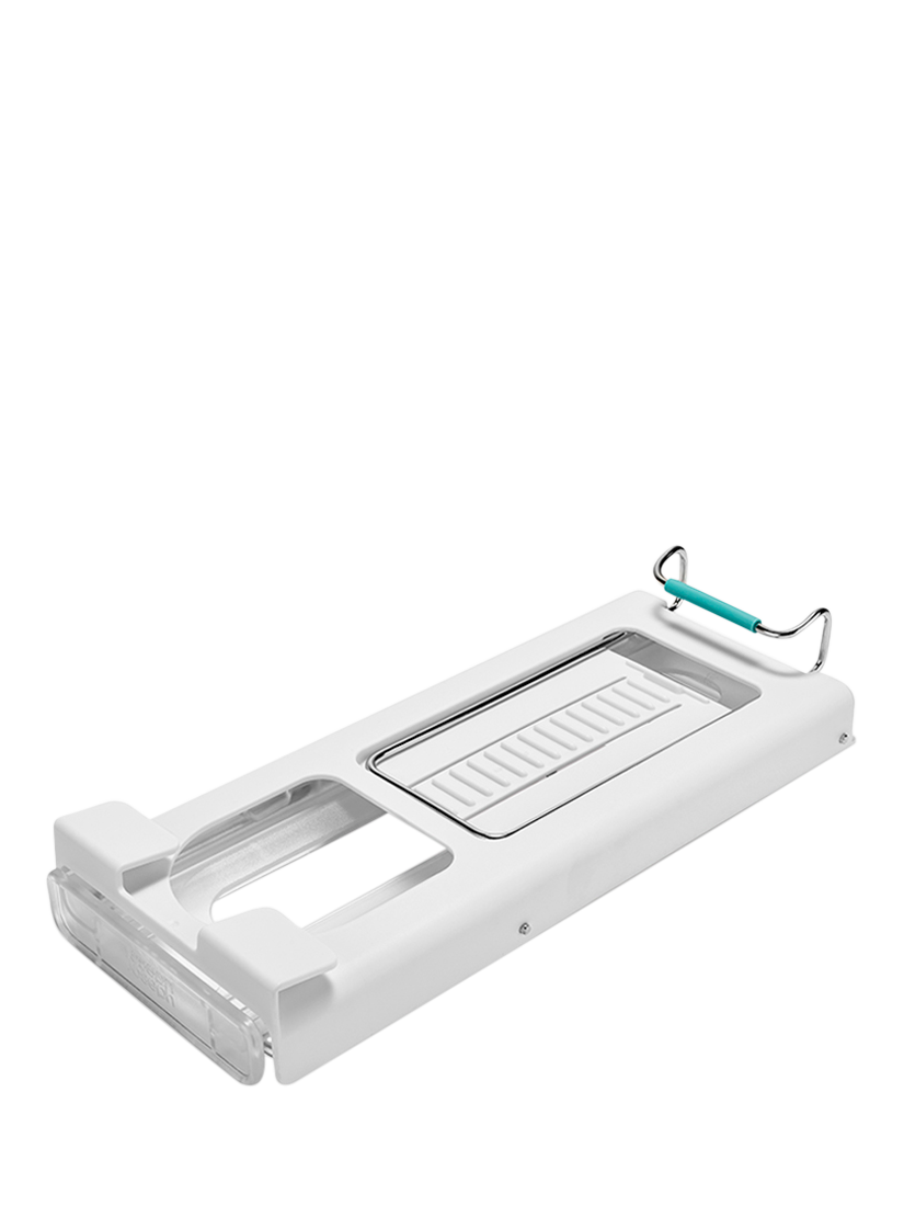 - Carrier : Polypropylene Shelf : Polystyrene Metal rails : Stainless Steel (SS304) Rear Tube : Silicone