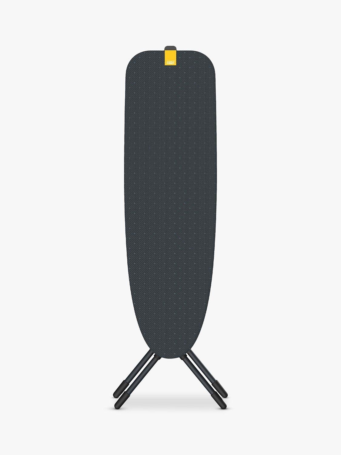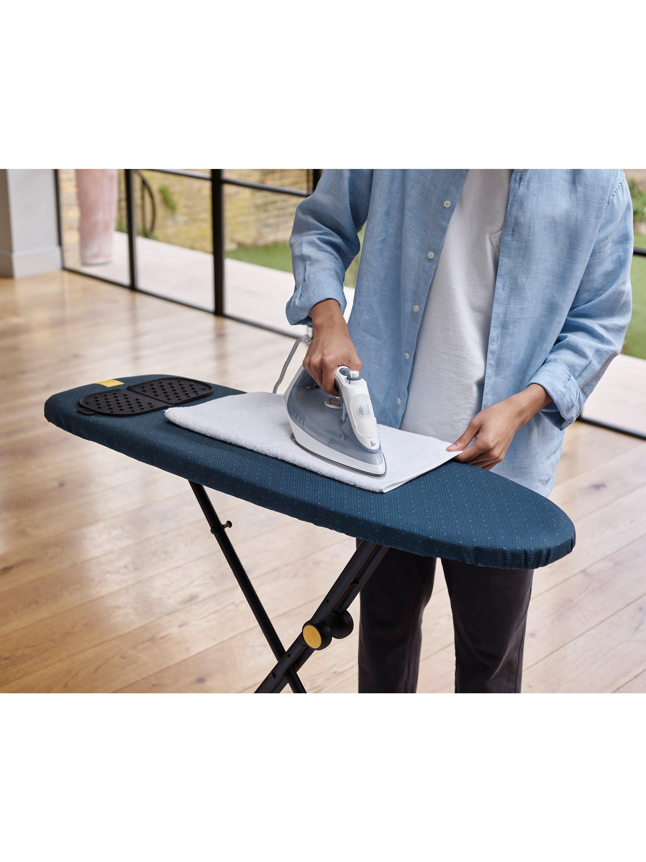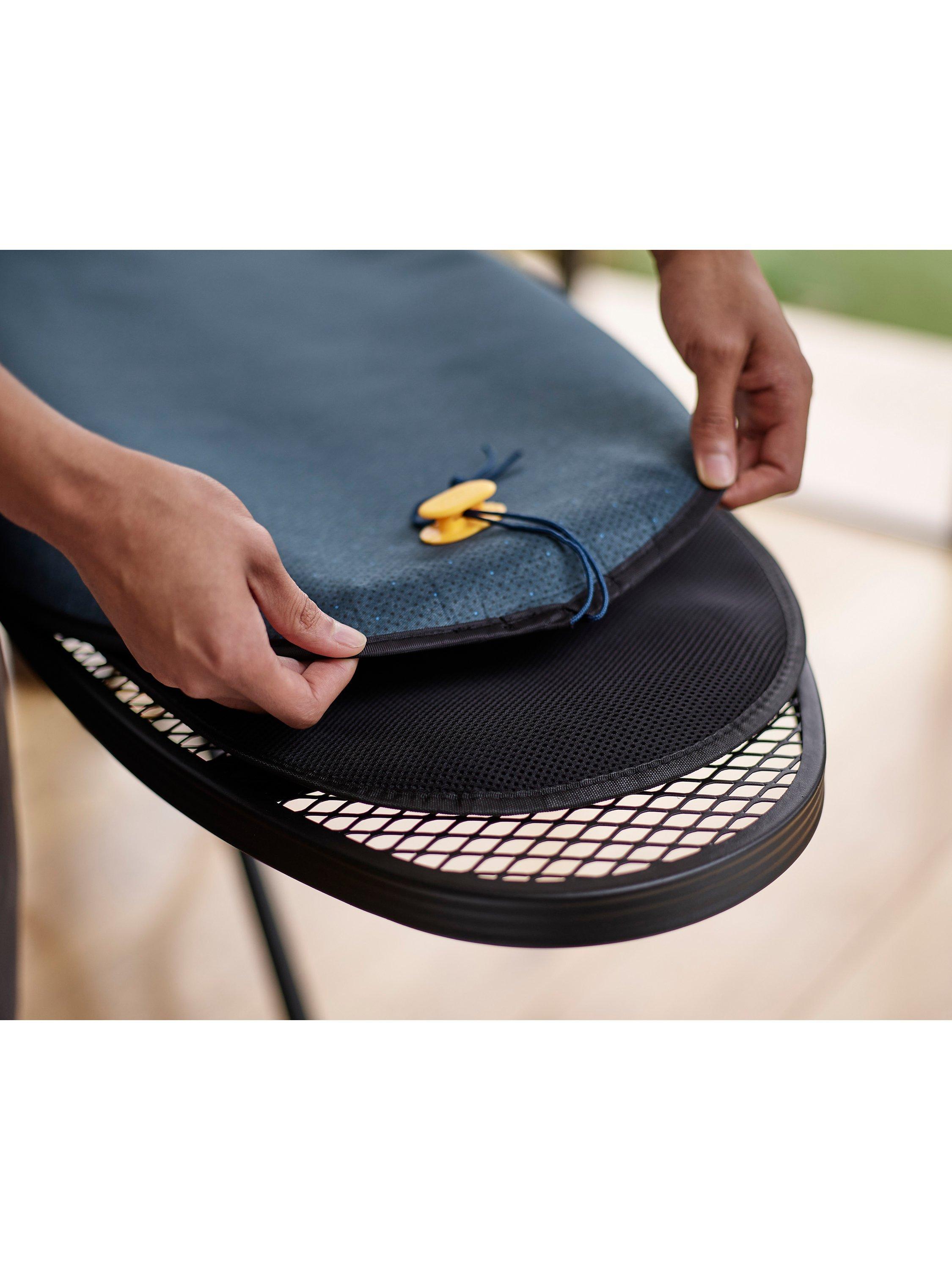 With it's cord toggle, the cover is quick and easy to change and replacement covers are also available. Finally, it comes with a removable, silicone iron mat that can be placed anywhere on the board's surface or, if you need more ironing room, on an adjacent table or worktop. After use, the mat can be folded in half and stored in its holder on the back side of the board. Board size: 110 x 33cm, Closed (including legs): H131 x W42 x D10cm. Frame guaranteed for three years against manufacturing defects.