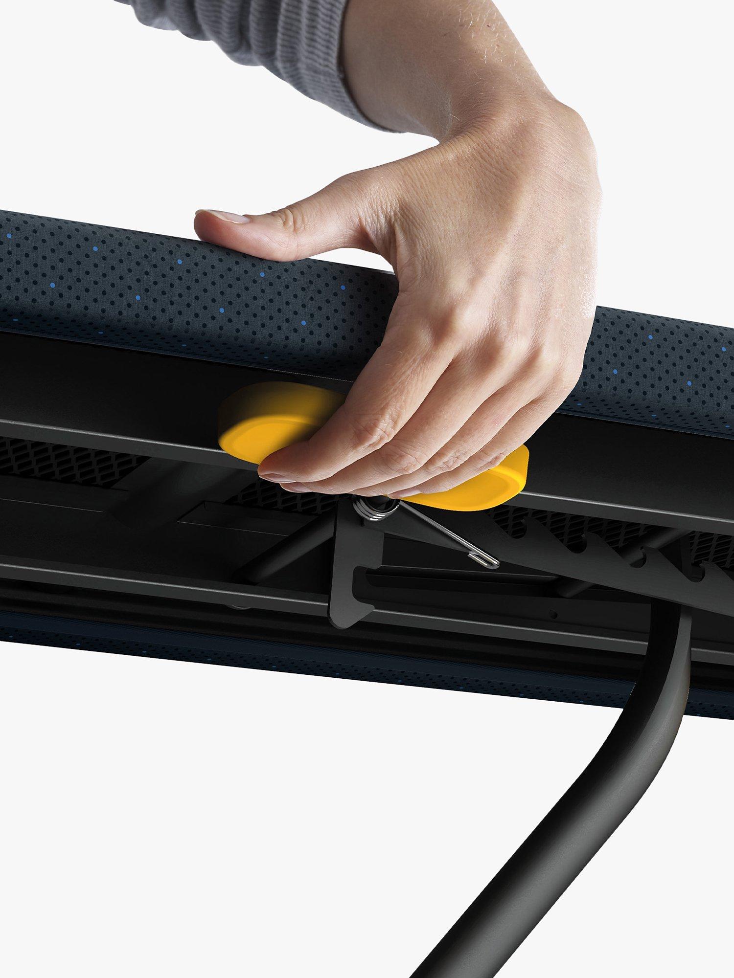 With Glide Compact Plus, set-up is smoother too. Simply grip the handle, press the release lever on the underside and swing the tip of the board up to horizontal. The height can be adjusted to six different positions using the release lever, from 81cm (32 inches) up to a maximum of 96cm (38 inches). Glide Compact Plus comes with an advanced, multi-layer cover with DripShield™ Technology that's been designed to cope with large volumes of ironing or for use with steam generator irons. Firstly, it has a 100% cotton top-layer for super-smooth ironing then, beneath that, a 3D spacer mesh, which allows steam to flow freely across the board making ironing quicker and reducing damp spots. Next, a highly-absorbant padded felt layer spreads moisture rapidly whilst a waterproof but breathable base layer below prevents drips and allows excess moisture to wick away.