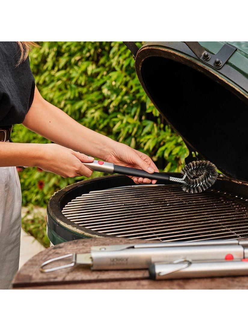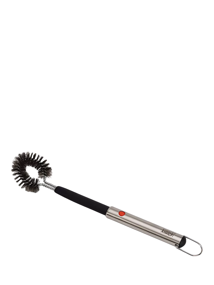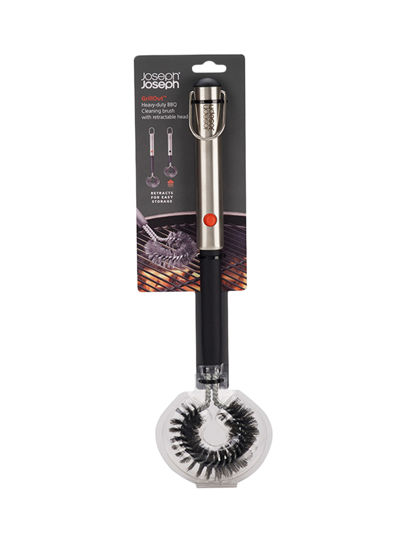 This heavy-duty barbecue cleaning brush is made of durable stainless steel and features a clever retractable head for compact storage. Simply pull the head out to its full length before using and then push the red button to retract for compact storage.