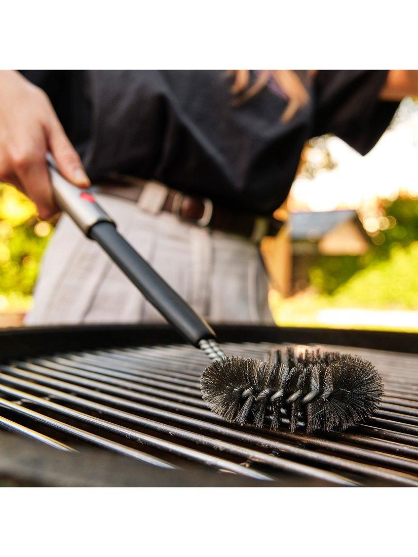 Its round shape and durable stainless steel bristles are ideal for removing burnt-on food and getting into the grooves and hard-to-reach areas of your grill. The head can be removed completely for easy cleaning, and it includes a hanging hook for added convenience.