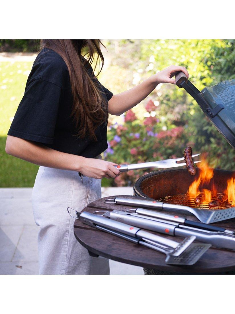 - Dishwasher safe. Do not leave utensil on grill whilst cooking. Caution: sharp prongs; ensure tool head is extended fully before using.