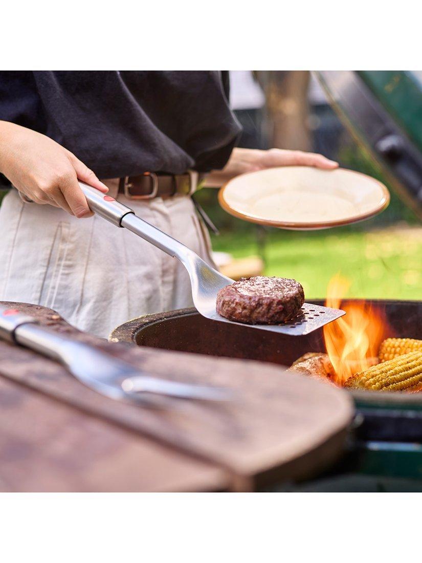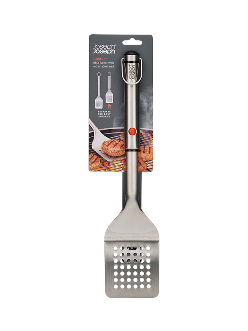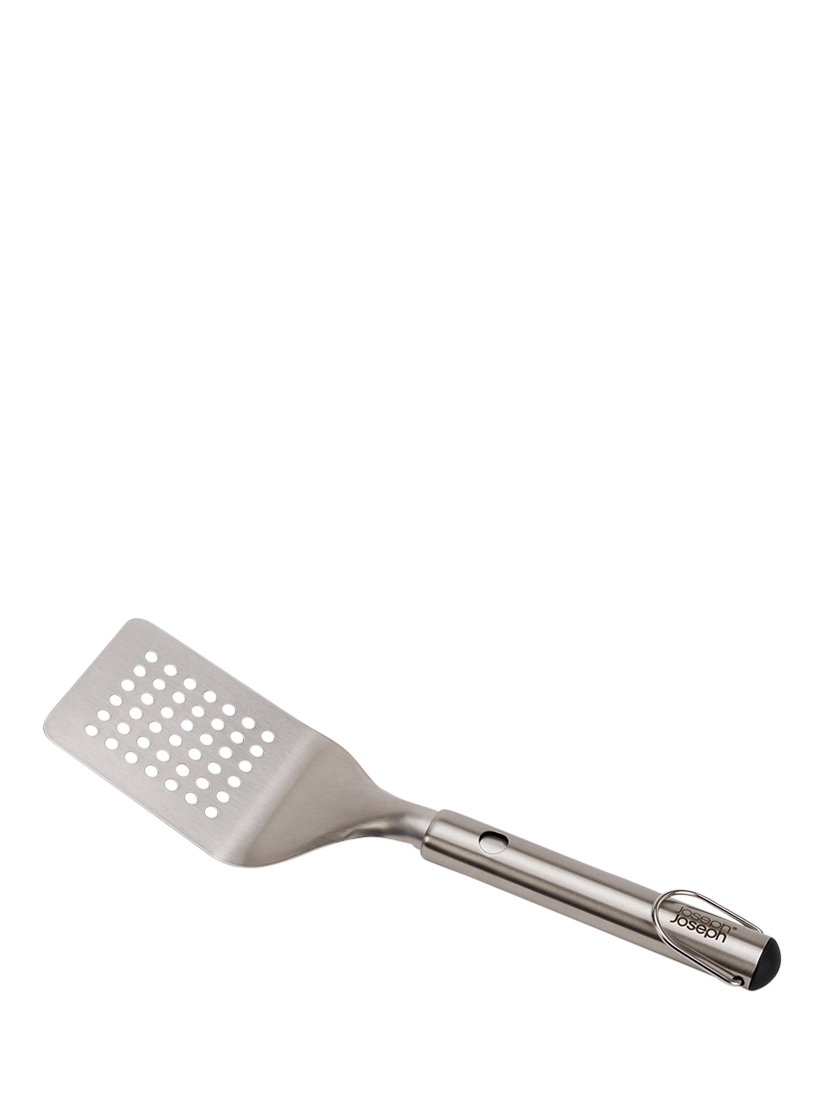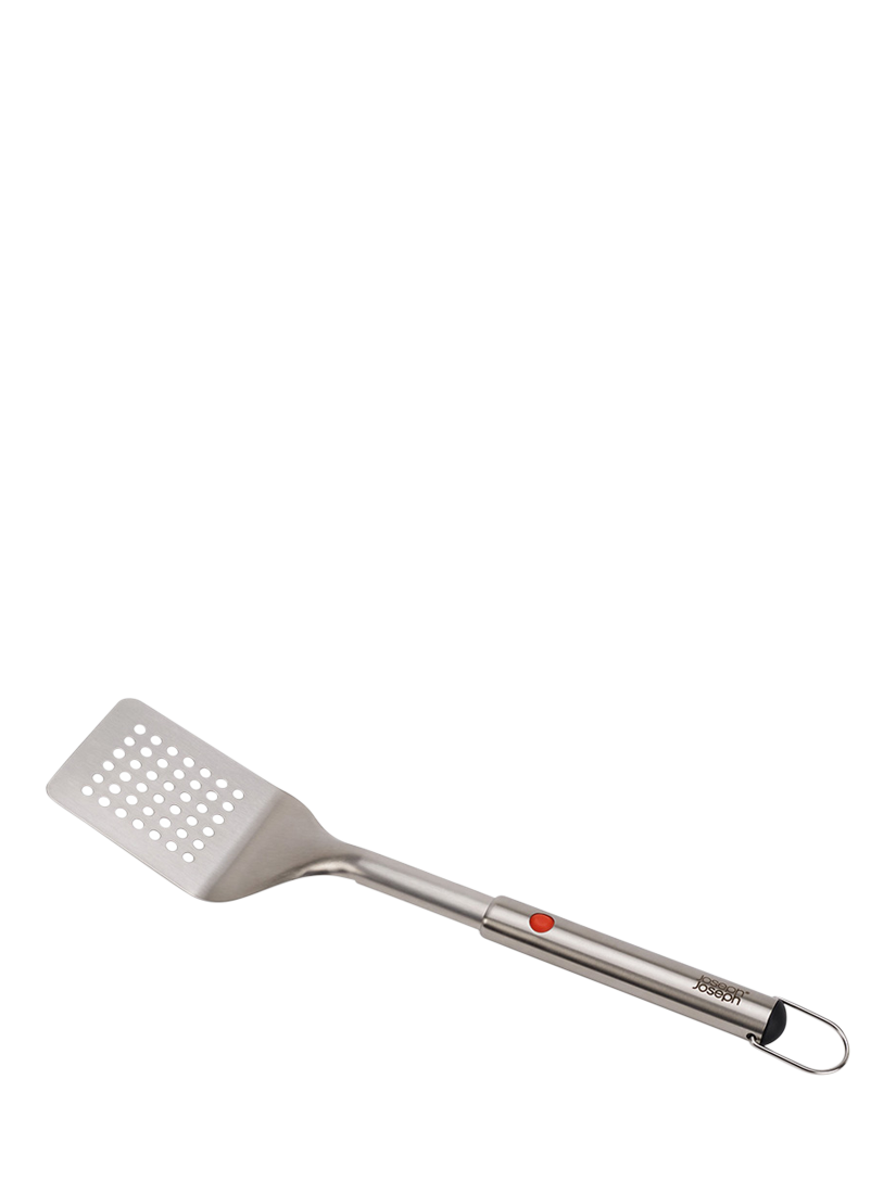 The wide head makes lifting and turning food on the grill easy, and it has slots to allow grease and food juices to drain efficiently. Dishwasher-safe, the head can be removed completely for easy cleaning, and it includes a hanging hook for added convenience.