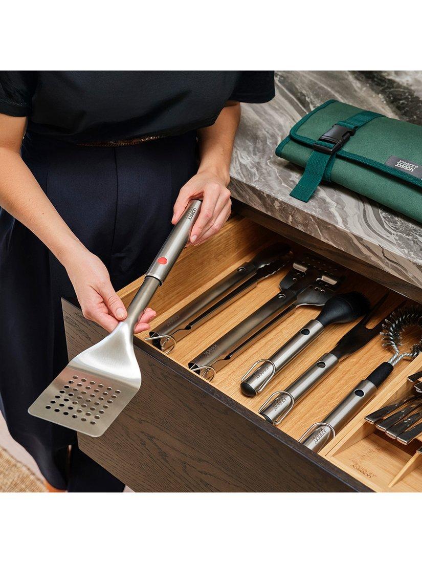 - Dishwasher safe. Do not leave utensil on grill whilst cooking. Caution: ensure tool head is extended fully before using.