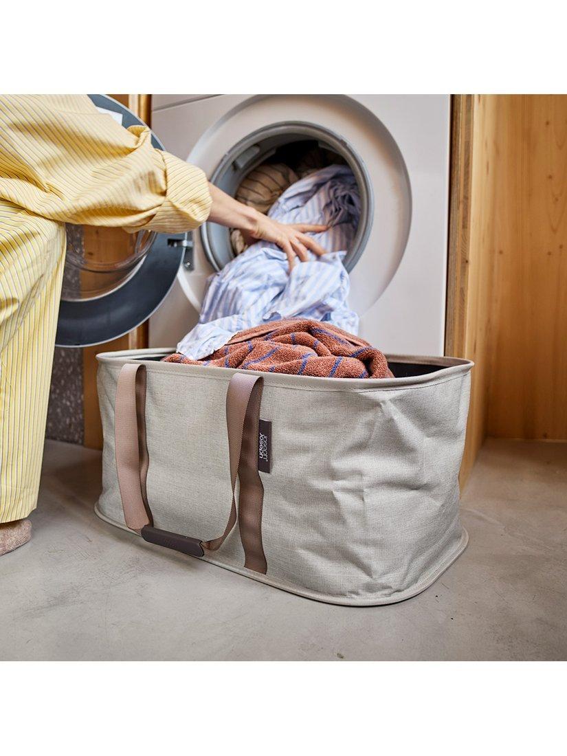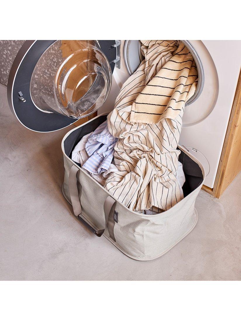 This handy laundry holdall is made from durable fabric that holds its shape, even when empty, and comfortably holds a full load of washing. It's moisture-resistant on the inside, making it suitable for damp laundry and features a rigid base and strong, woven handles that make it easy to carry one-handed around your home or to the washing line.