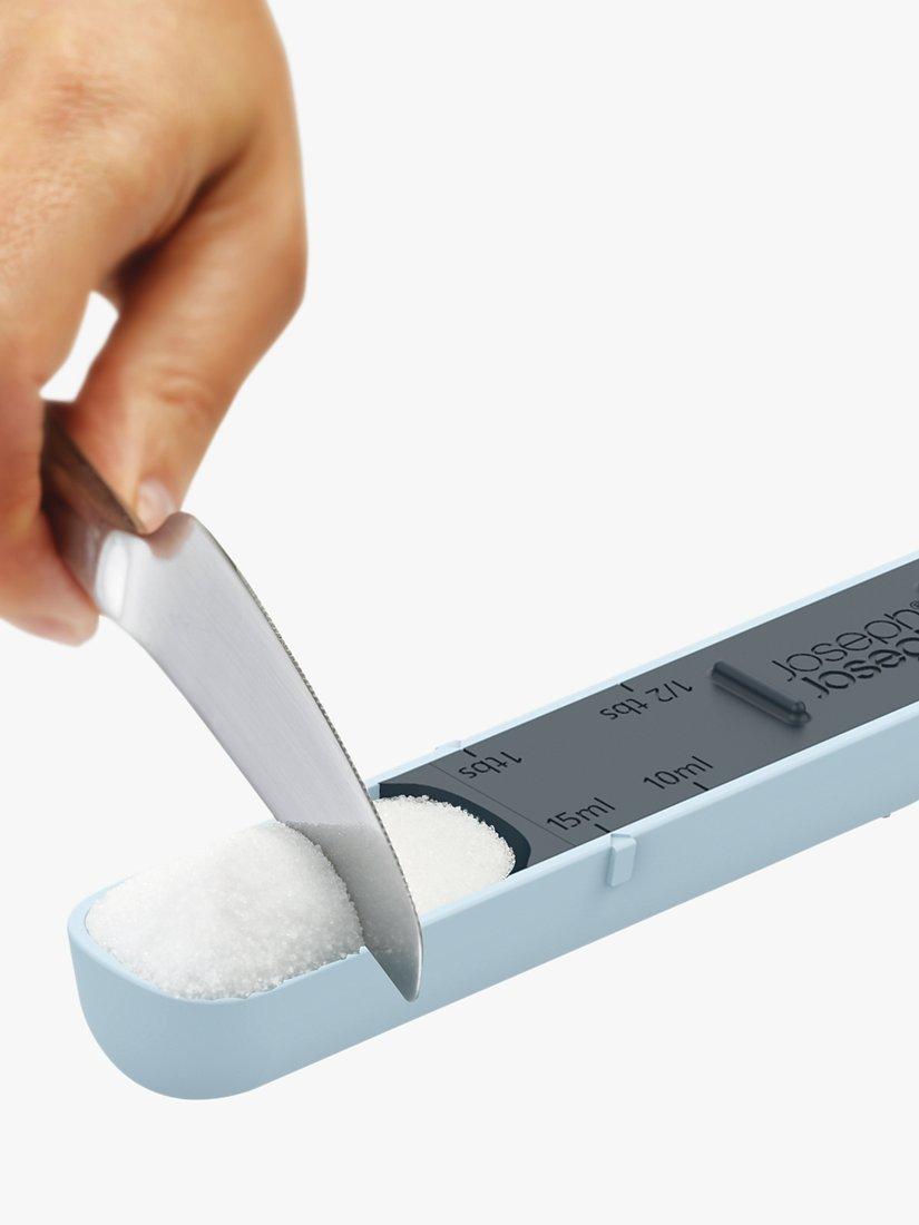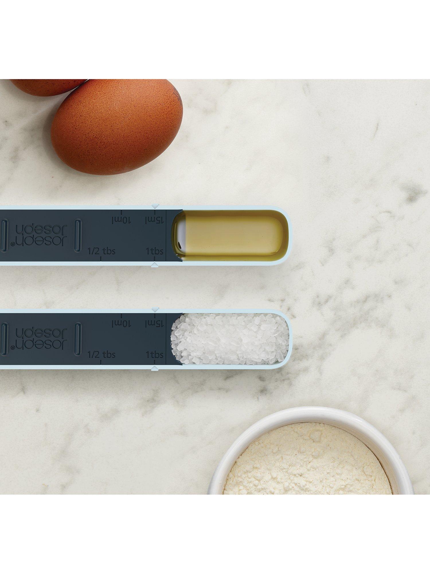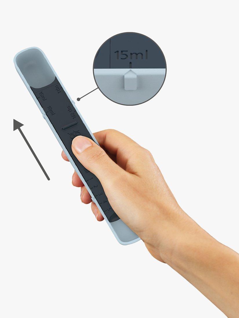 Joseph Joseph's Measure-Up measuring spoon is adjustable for measuring out cooking and baking ingredients from 1ml up to 15ml and from ½ teaspoon up to 1 tablespoon.
