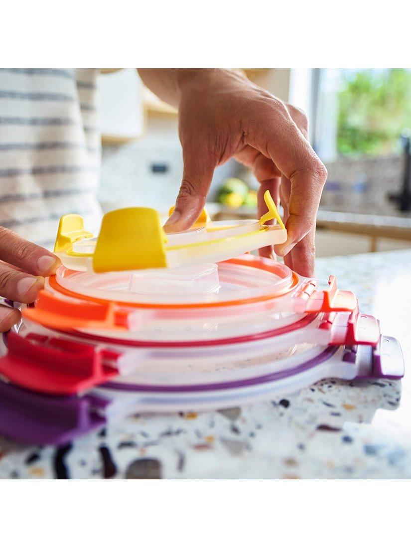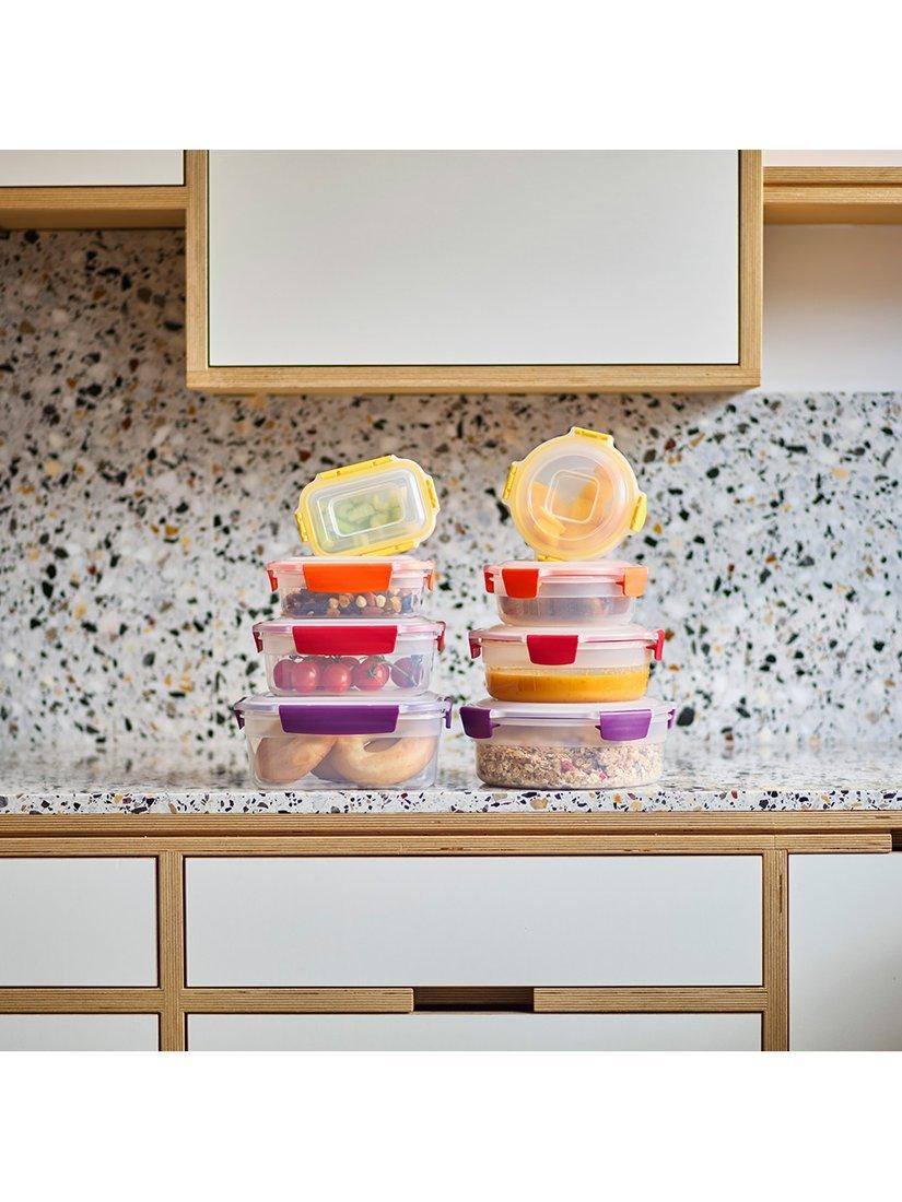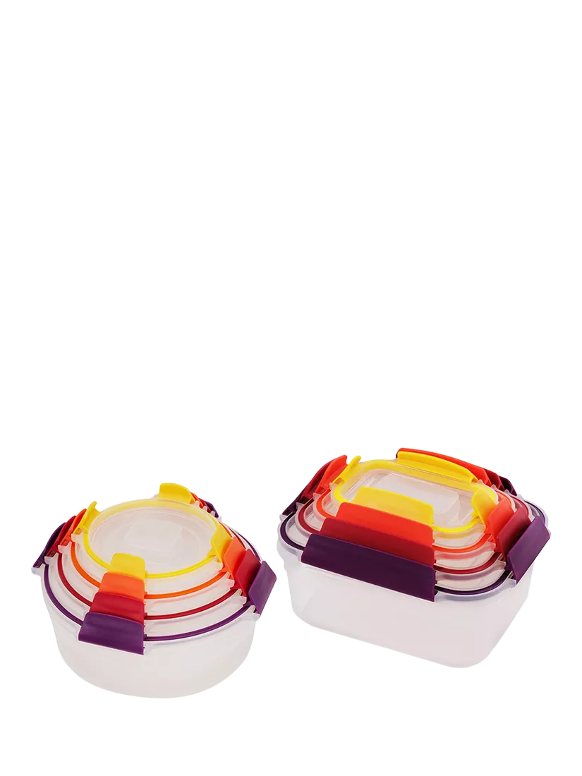 This set includes four round and four rectangular multi-size storage containers with matching lids. Each element is colour-coded, so it's very easy to match lids with bases when you need them.