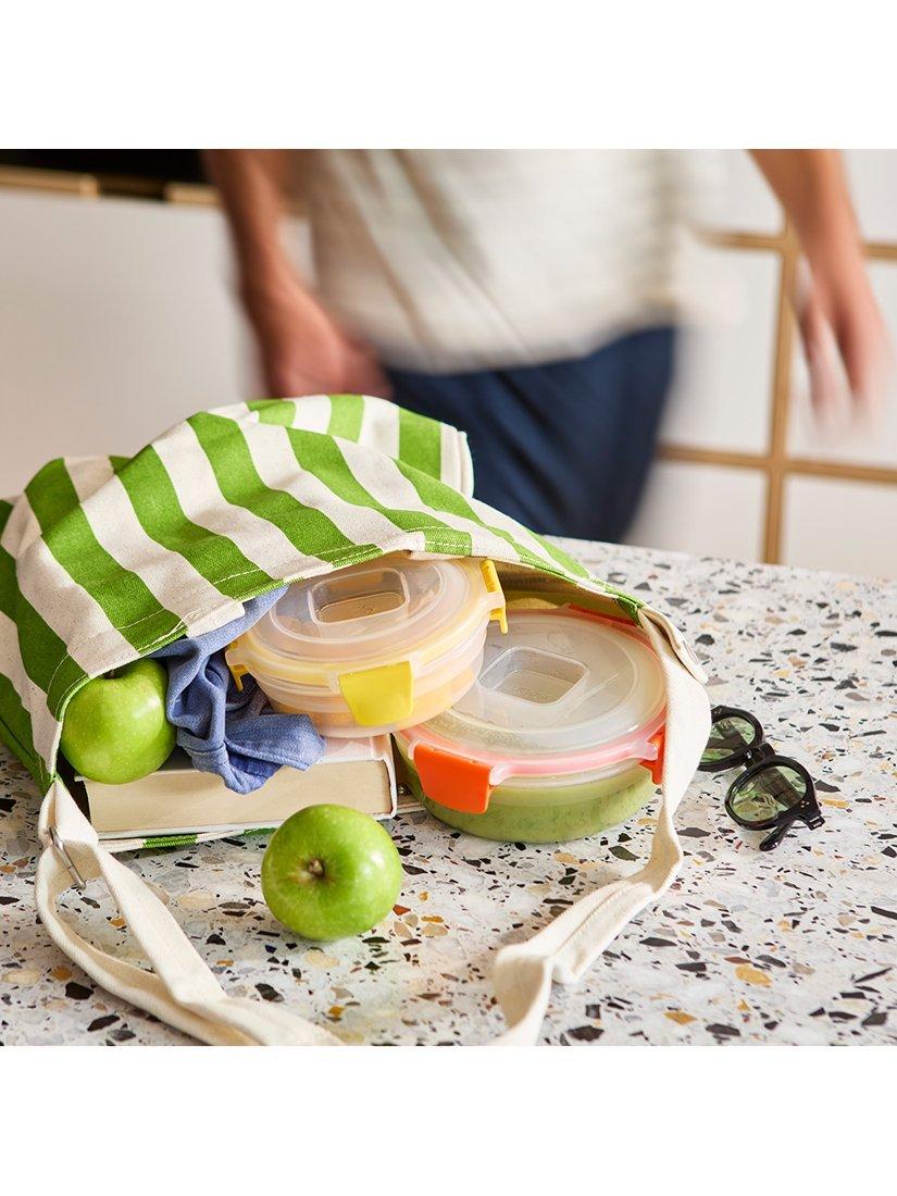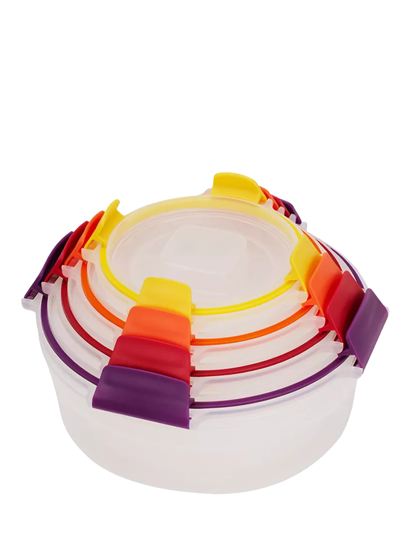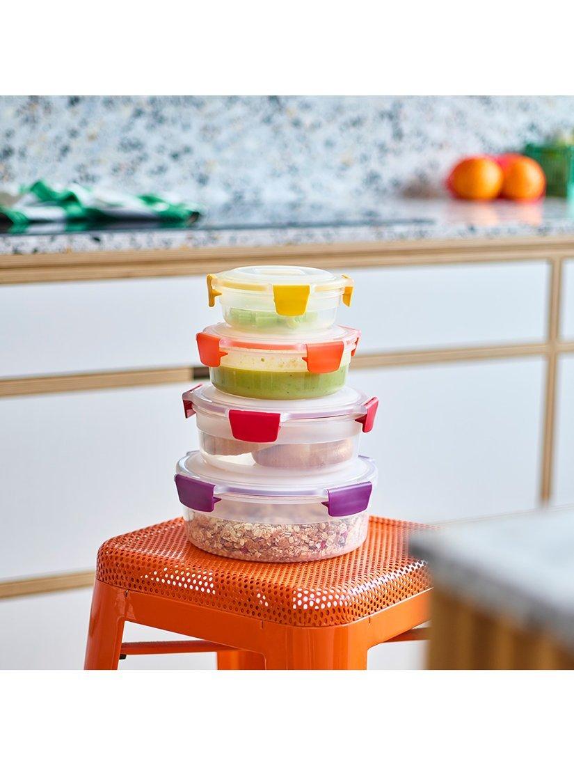 This set includes four round multi-size storage containers with matching lids. Each element is colour-coded, so it's very easy to match lids with bases when you need them.