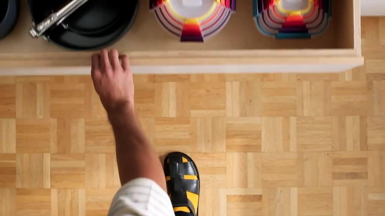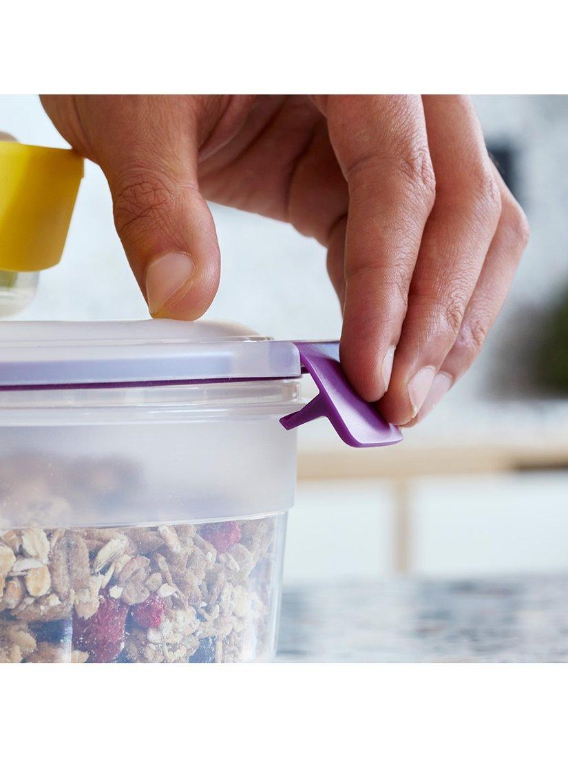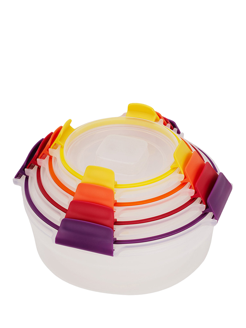 Most storage containers take up precious cupboard space when not in use and usually require the lids and bases to be stored separately, which makes finding and pairing them a hassle. With the unique design of Nest Lock from Joseph Joseph, container bases nest neatly inside each other, and lids clip conveniently together for efficient, space-saving storage.