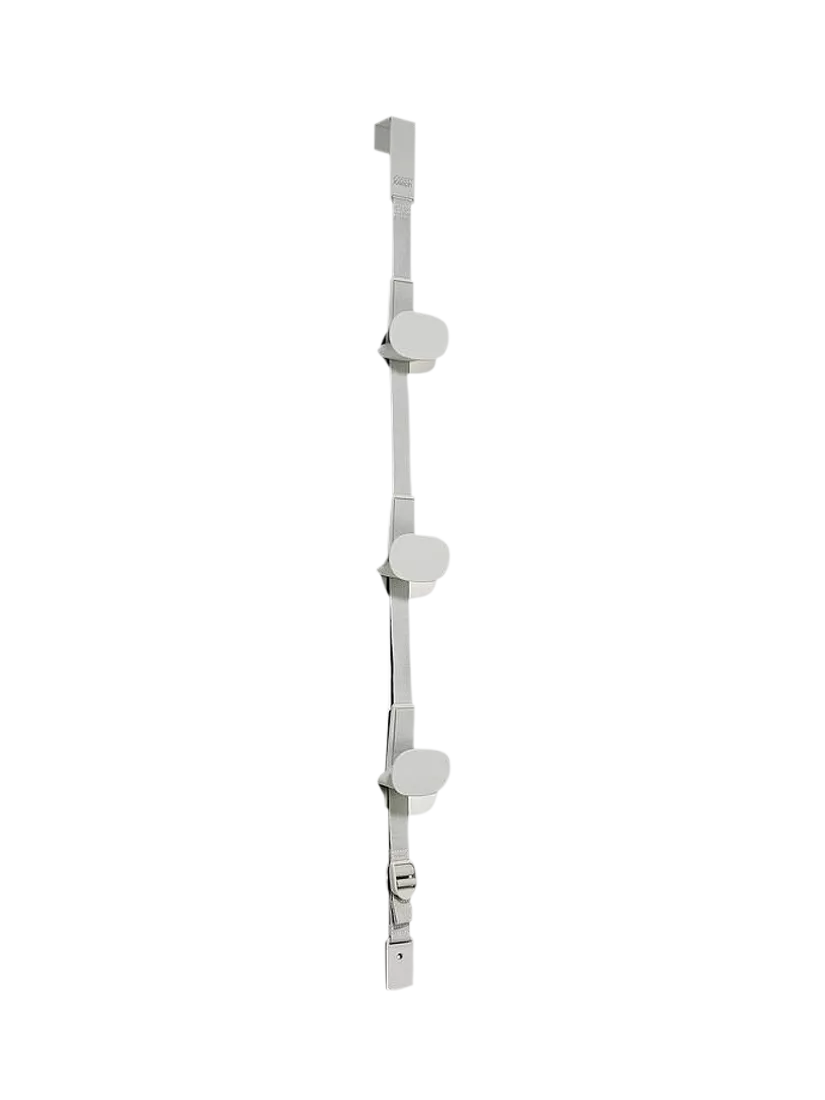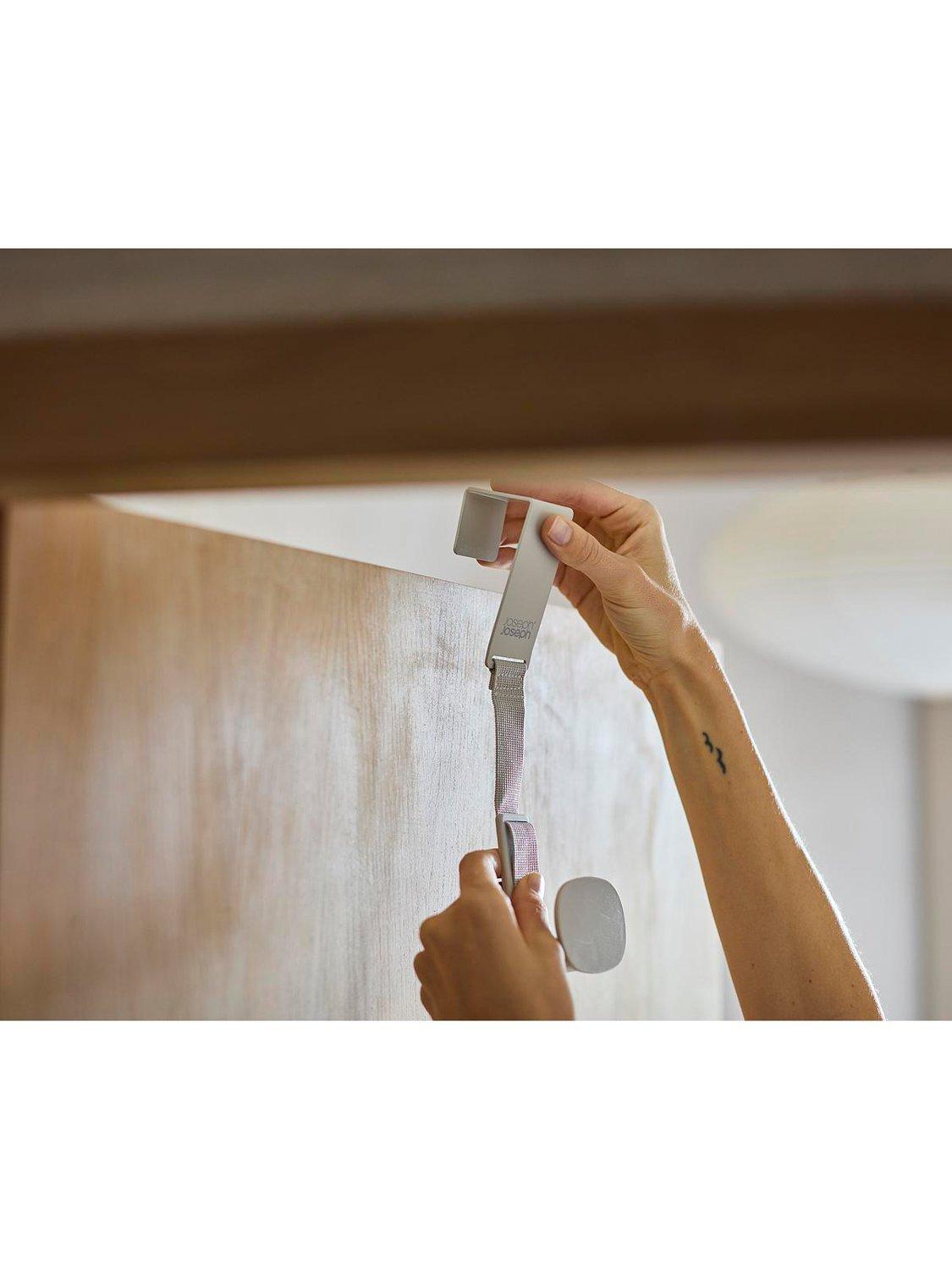 Easy to install, it includes a hook at one end that fits securely over the top of the door, with the opposite end of the strap secured with strong 3M™ VHB™ tape. If required, the hook can also be secured into position using a small screw.