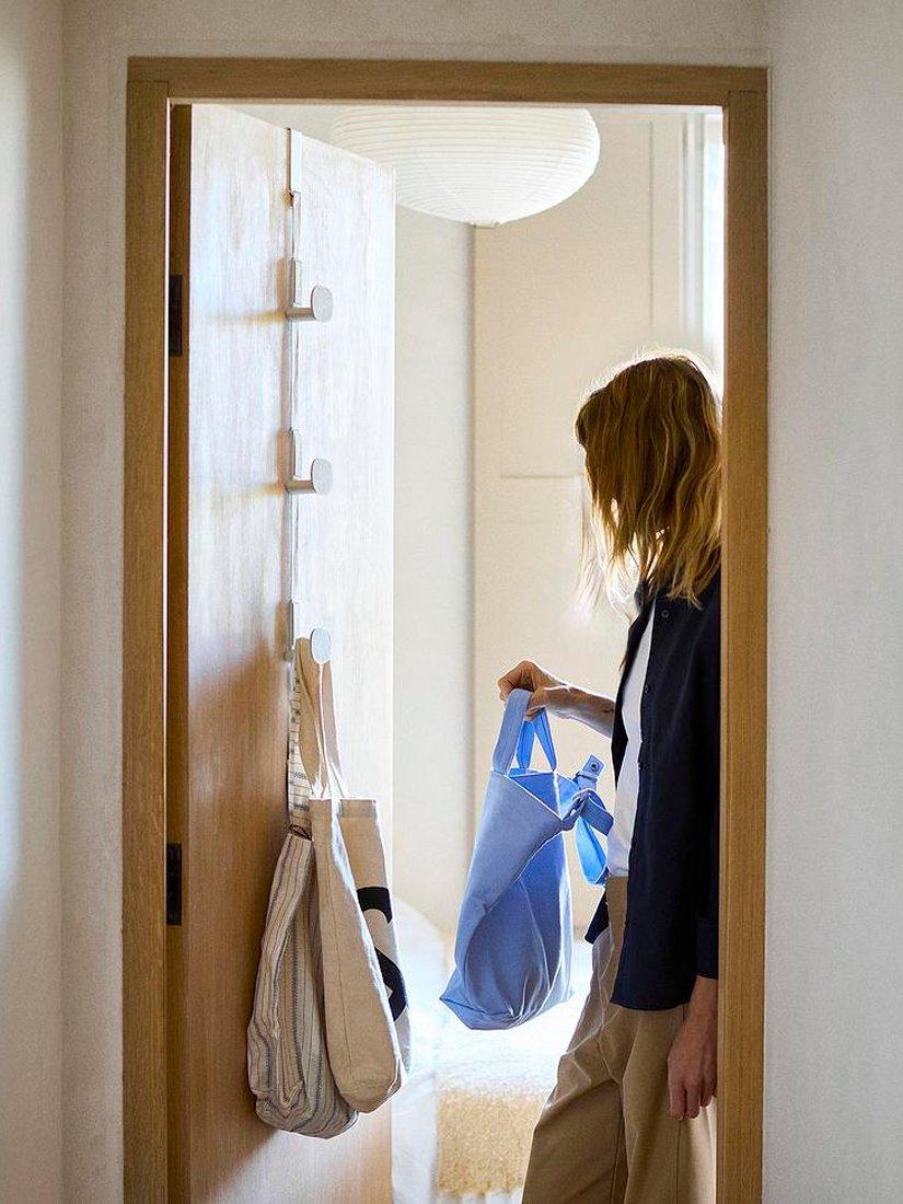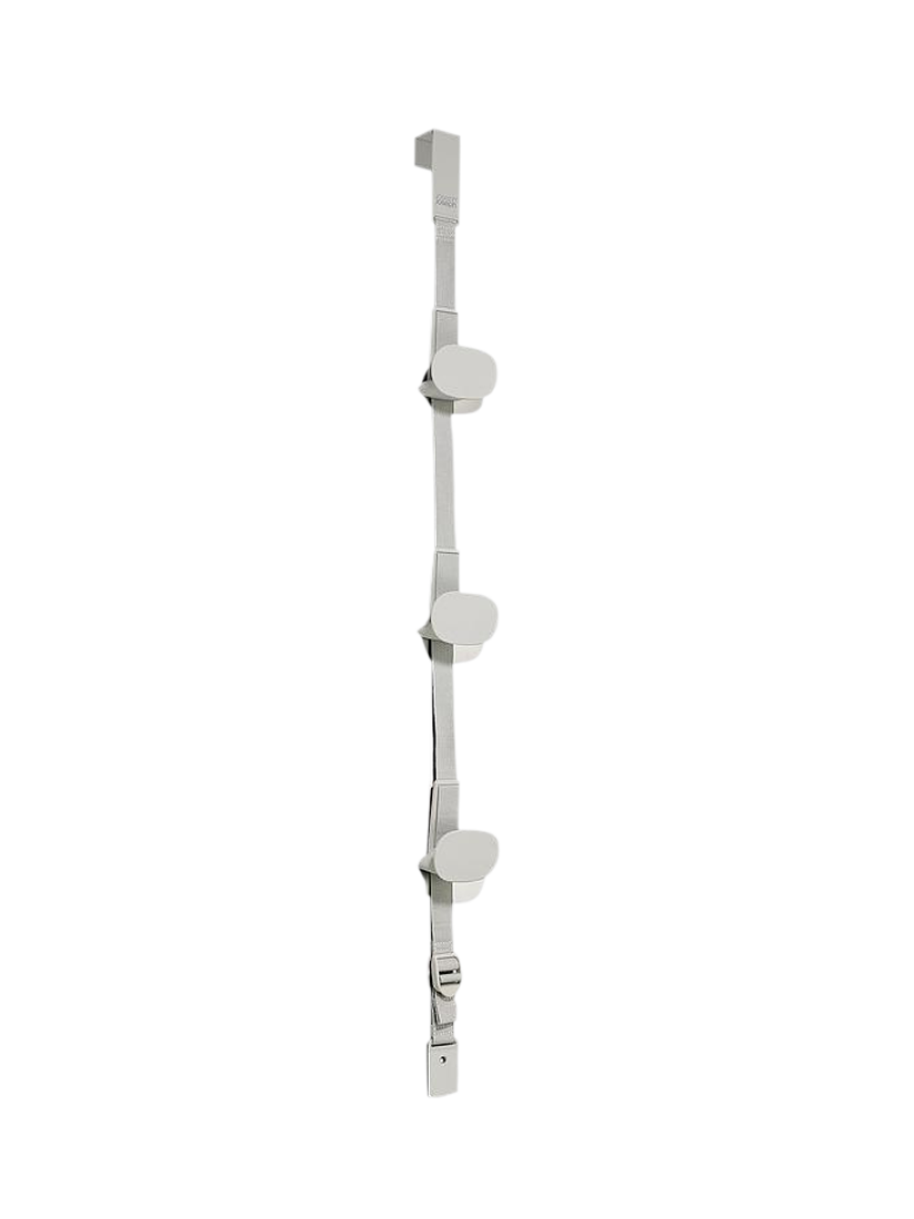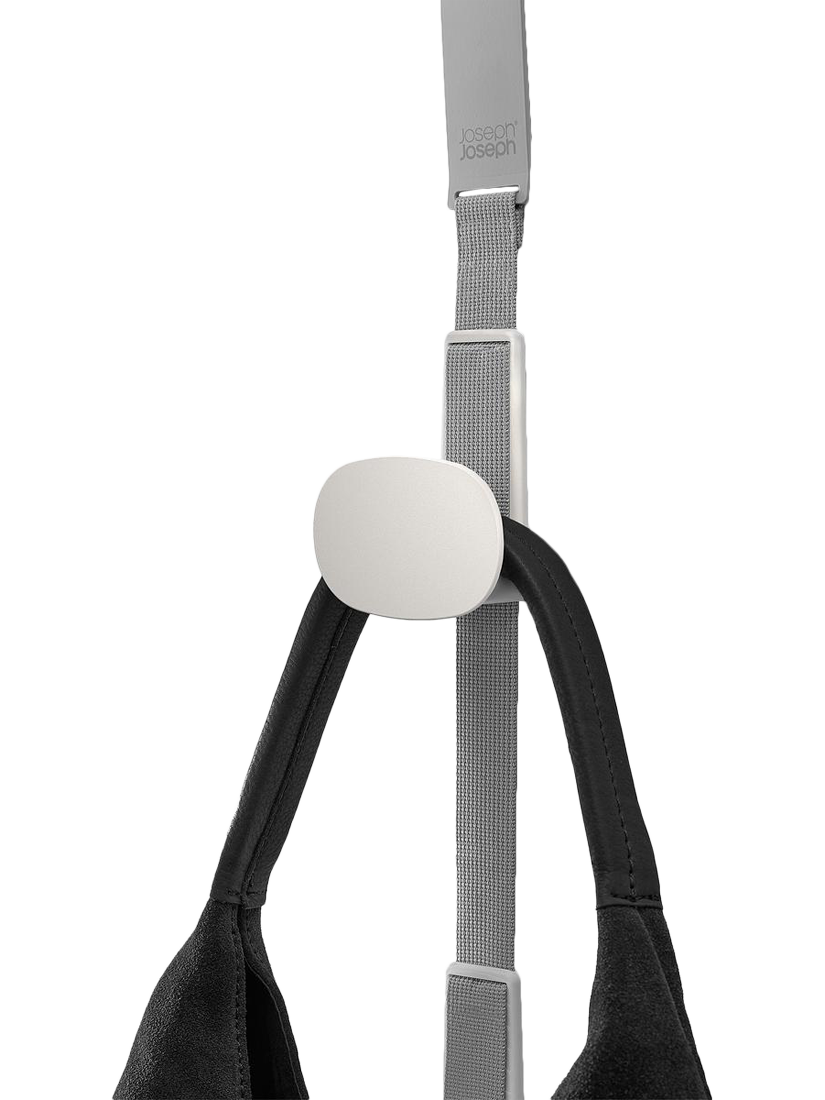 This clever, back-of-door storage system frees-up valuable cupboard space and eliminates the inconvenience of storing multiple bags on a single hook. It also allows quick and easy access to everyday bags and features a strong fabric strap with three adjustable hooks to accommodate bags of different sizes.