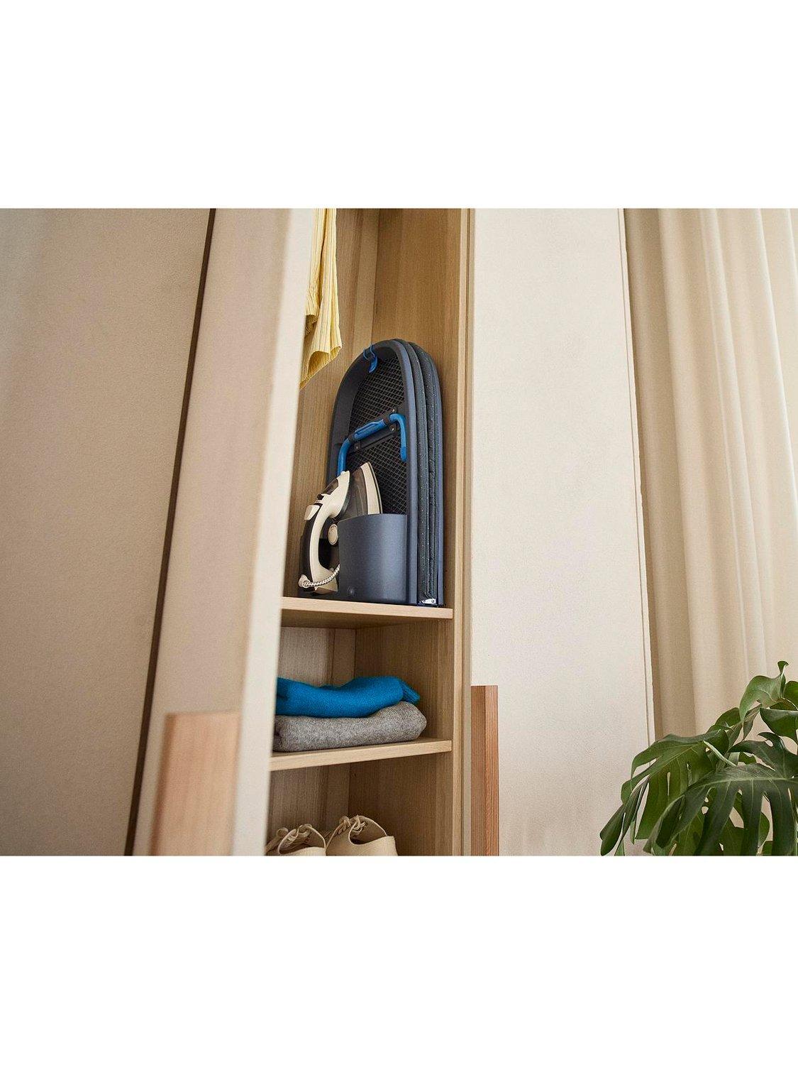 - Cover: wipe clean only – do not machine wash. See care label. Frame: Wipe clean with a damp cloth. Do not use abrasive cloths or strong chemical cleaners. Caution: Allow iron to cool to room temperature before placing inside storage compartment. Ensure cover is dry before folding and storing. Keep children away from ironing board when in use and store safely after use.