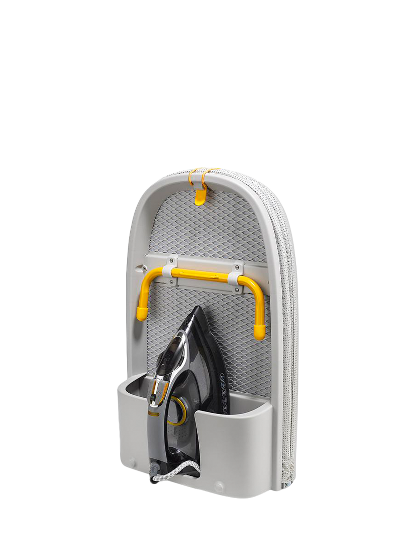 For added convenience, it features an integrated iron storage compartment as well as a separate hanging hook for versatile storage, perfect for compact living. It comes with an easy-change, perfect-fit cover comprising a 100% cotton top-layer and a thick padded felt underlay for super-smooth ironing.