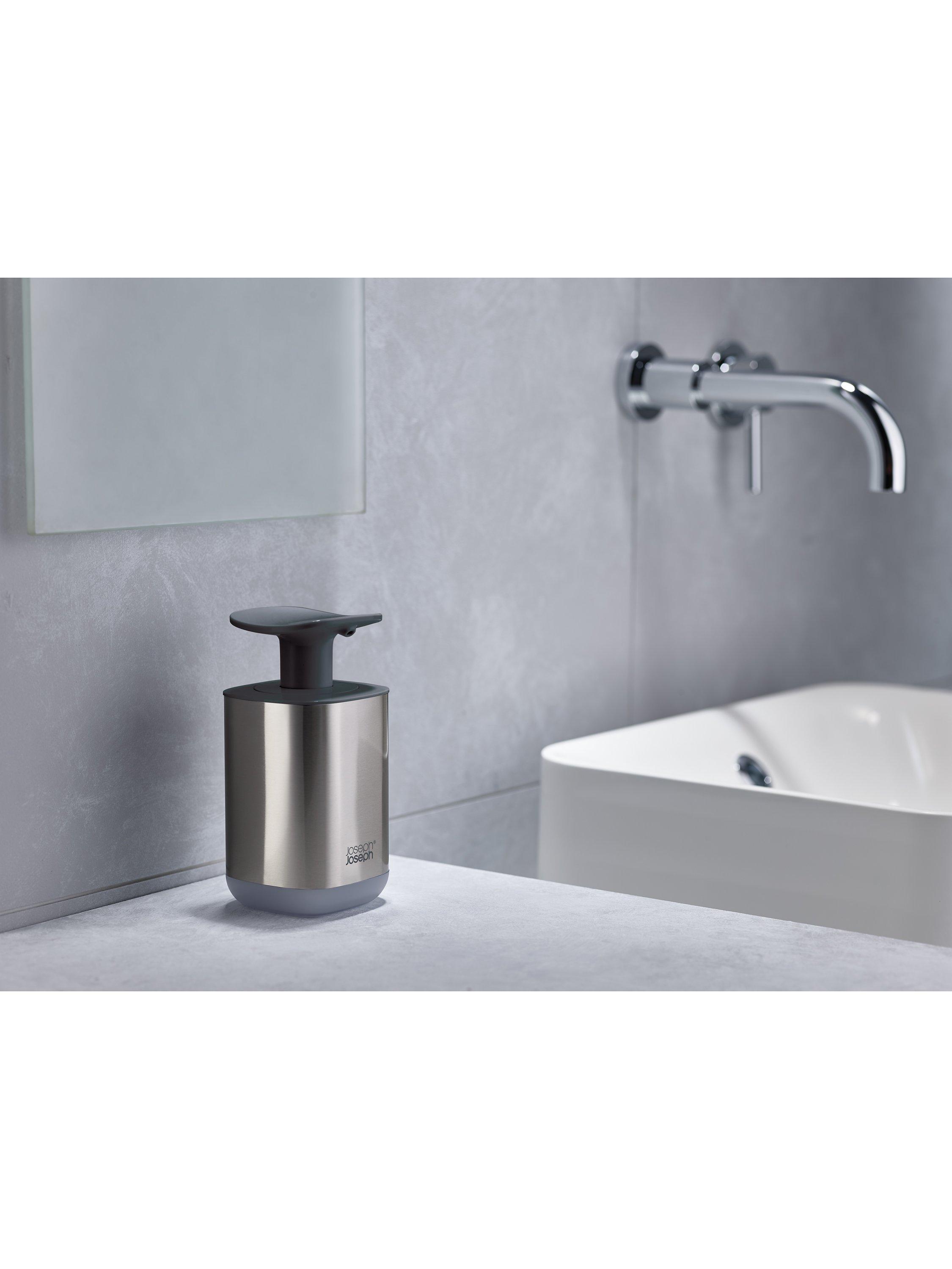 This hygienic soap dispenser features an extra-large pump head which makes it easy to operate with the wrist or forearm when your hands are messy. A transparent window in the base shows when you need to refill and the non-slip base keeps the unit in place during use.