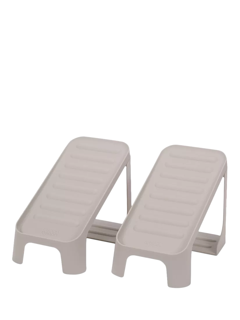 These shoe organisers have a tiered, flip top design that saves space and makes access to both shoes easy. The ridged surface prevents shoes slipping.
