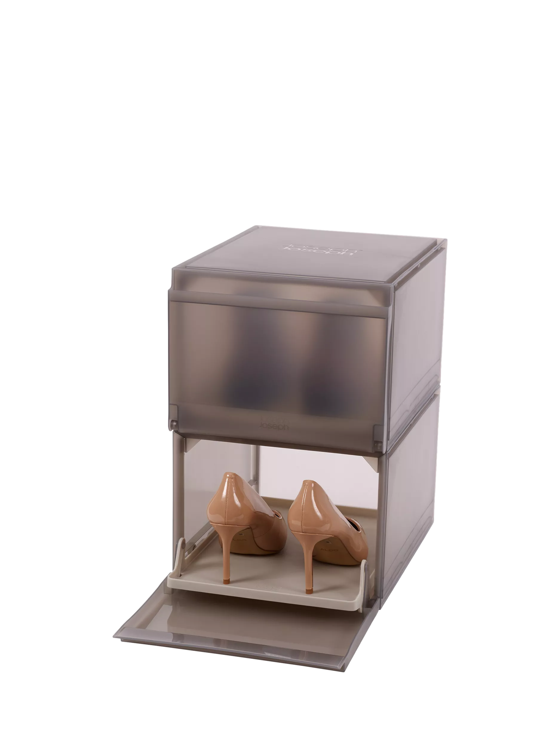 Each stackable Joseph Joseph ShoeCase protects shoes from dust and dirt when stored. It has a drop-down door with slide-out shoe tray for easy access and a ventilated design to improve airflow.