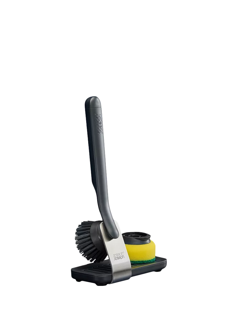 This dish brush is part of the Joseph Joseph SinkTech washing-up system, which includes a range of interchangeable heads, handles and accessories that extend its lifespan and make dishwashing easier. It features durable, stain-resistant bristles that deliver an effective clean each time, an integrated pan scraper for stubborn stains and comes with an additional sponge head and a large, stainless-steel storage stand with a drip tray for fast drying.