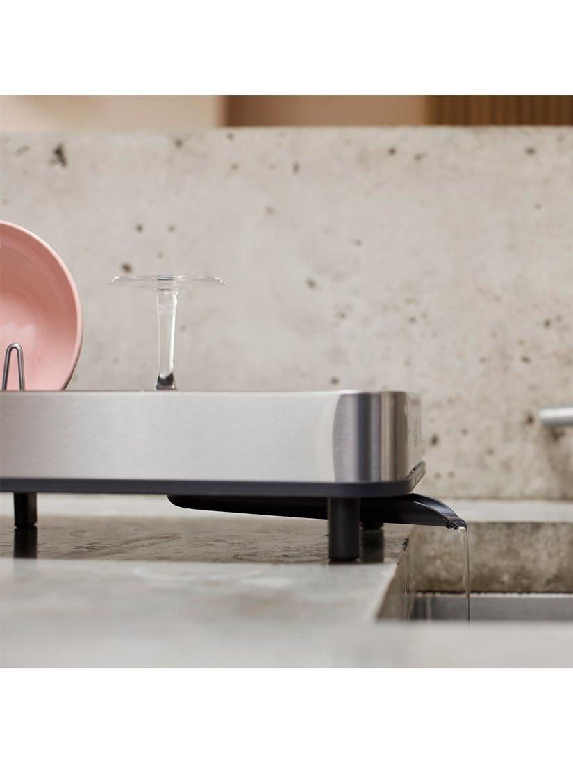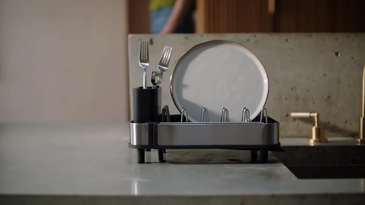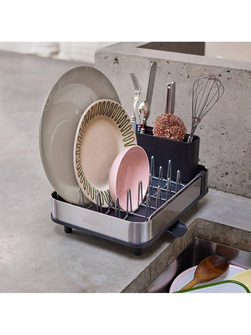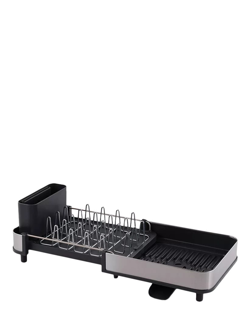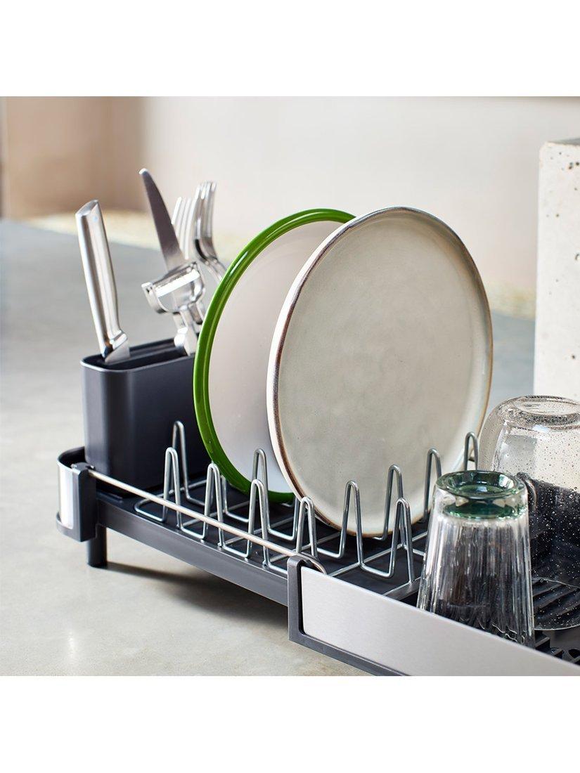 This clever, compact dish rack is ideal for smaller kitchens, offering an efficient space-saving solution. It features a two-part sliding tray that extends for extra drying space, as well as steel prongs that securely hold your dishes.
