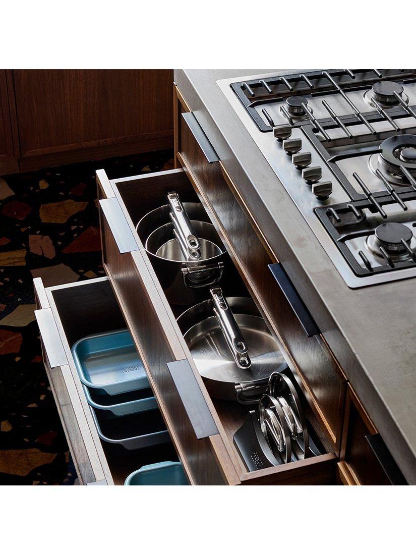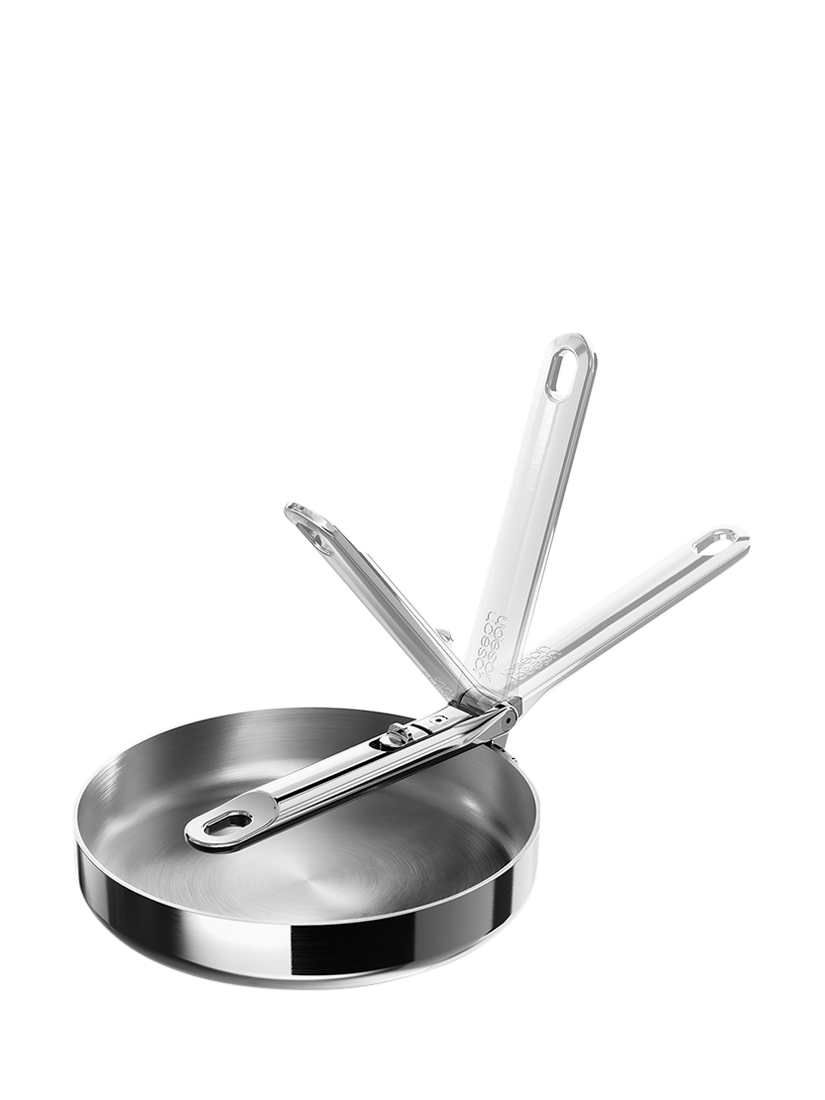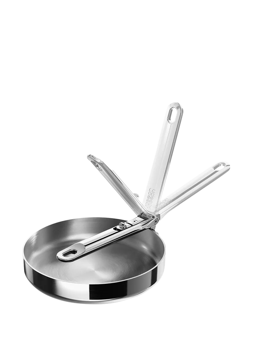Goodbye clutter, hello Space. Joseph Joseph's Space range has a clever, folding stainless-steel handle that saves up to 50% more space compared to standard kitchenware when stored. Created for cooks, made for storage.