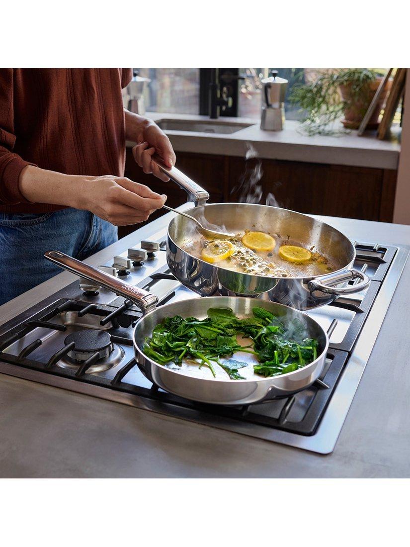 When it comes to cooking performance, there's no compromise either. The pan features a high-performance 3-ply construction, including an aluminium core sandwiched between layers of stainless steel for optimal heat distribution. Suitable for all hob types, including induction.