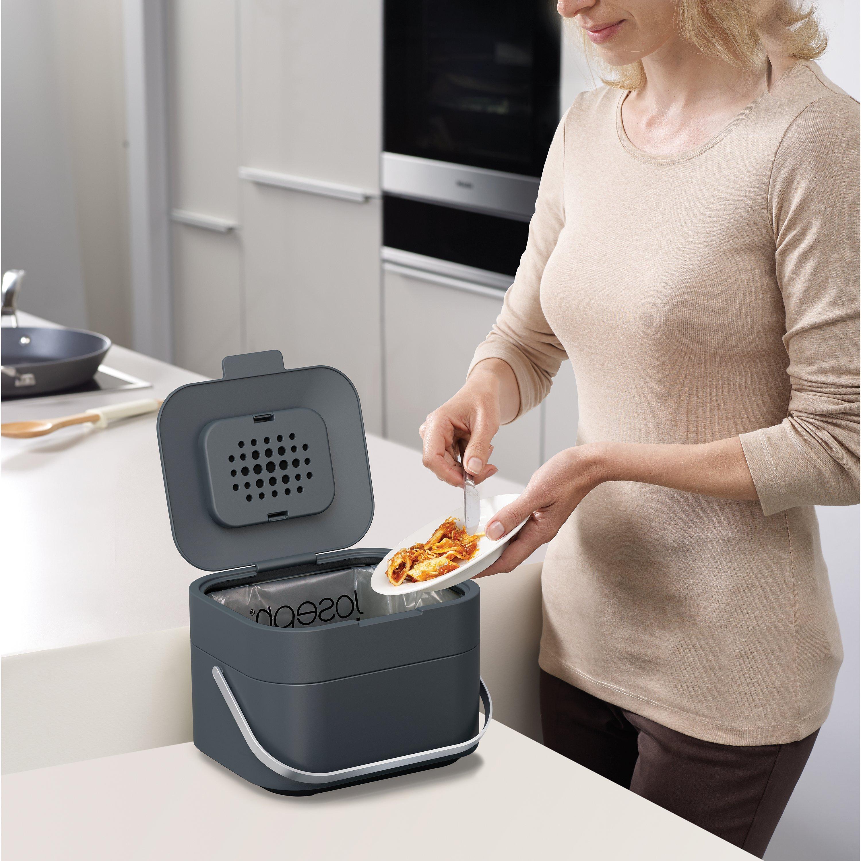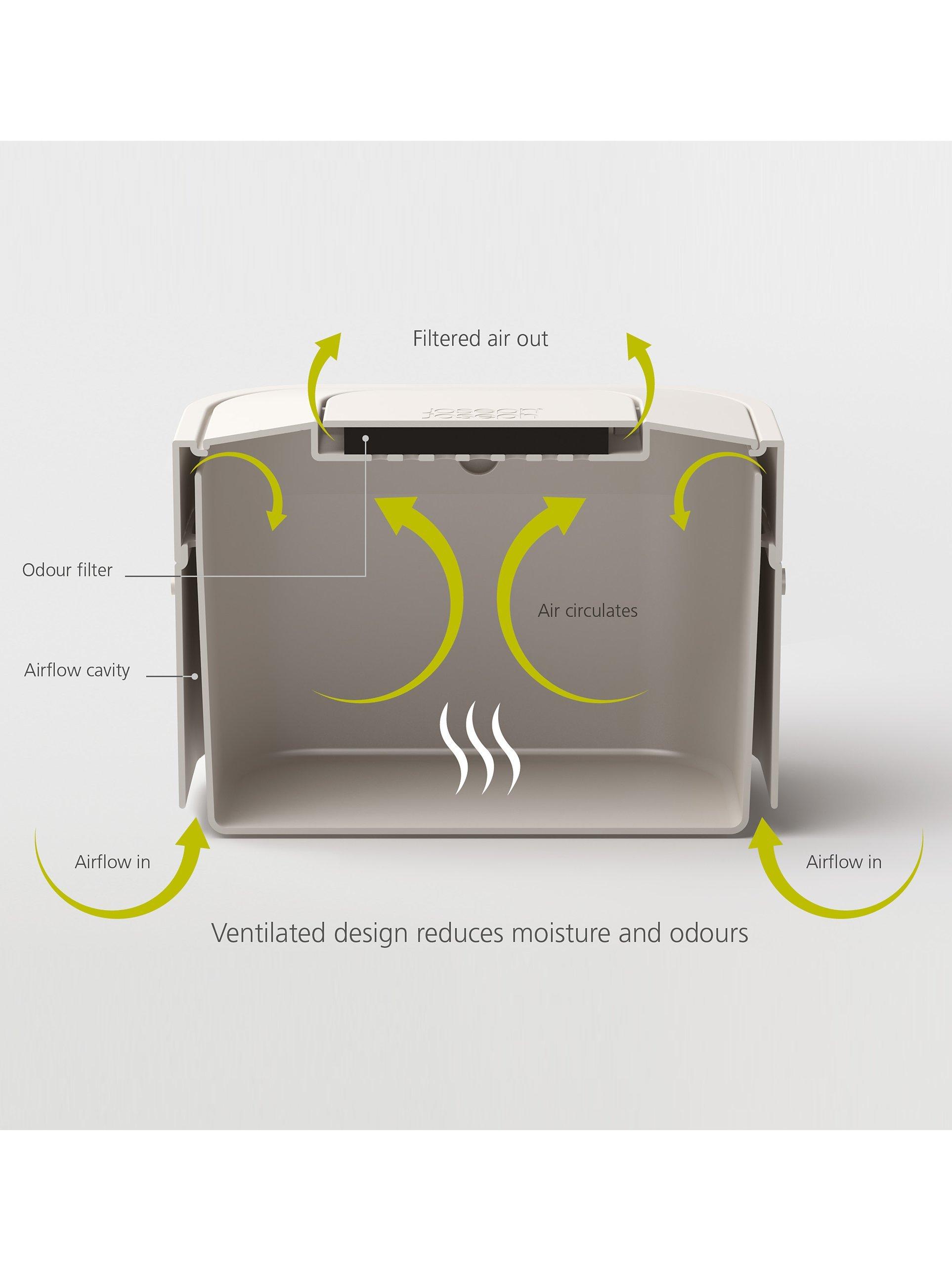 This clever caddy has been carefully designed to help reduce the smell from collected food waste. It has a unique, ventilated design that allows air to enter and circulate inside the caddy, which helps to reduce moisture - the main cause of unpleasant odours from decomposing food. In addition, it features a replaceable odour filter in the lid that works in tandem with the fresh air to help trap any smells that do occur.