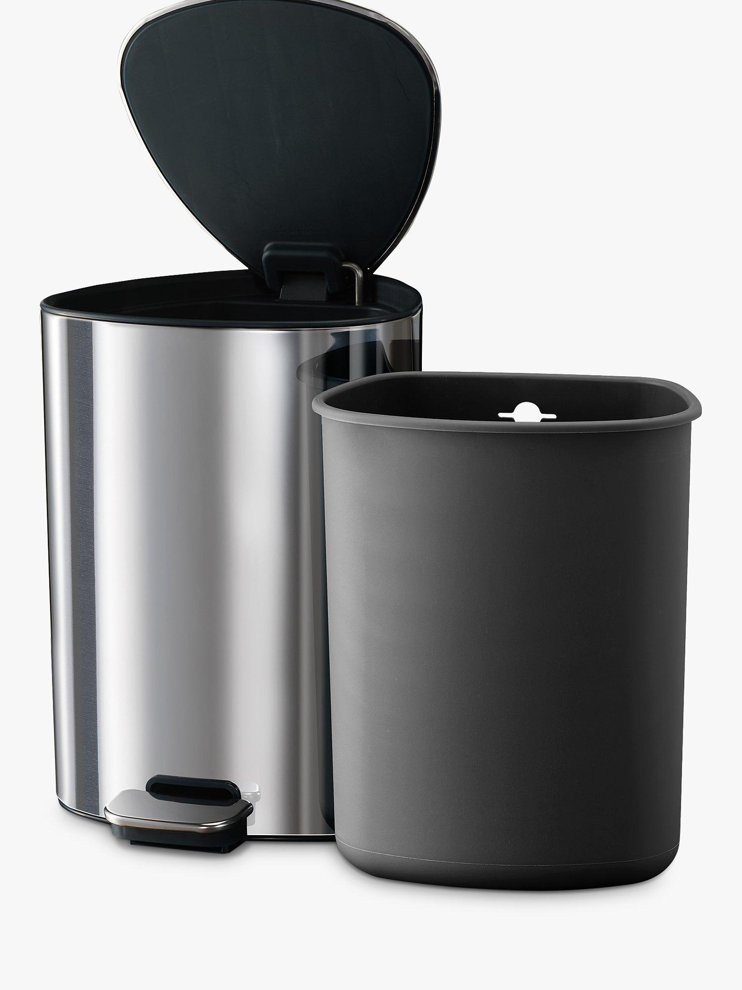 This steel pedal bin has a handy pocket on the back designed to hold a roll of liners and a removable inner bucket, making bag changes quick and easy. It features a durable stainless-steel body with a premium polished finish, a soft-close stainless-steel lid and a stainless-steel pedal.The 5-litre capacity means it's perfect for use in the bathroom, bedroom and home office.