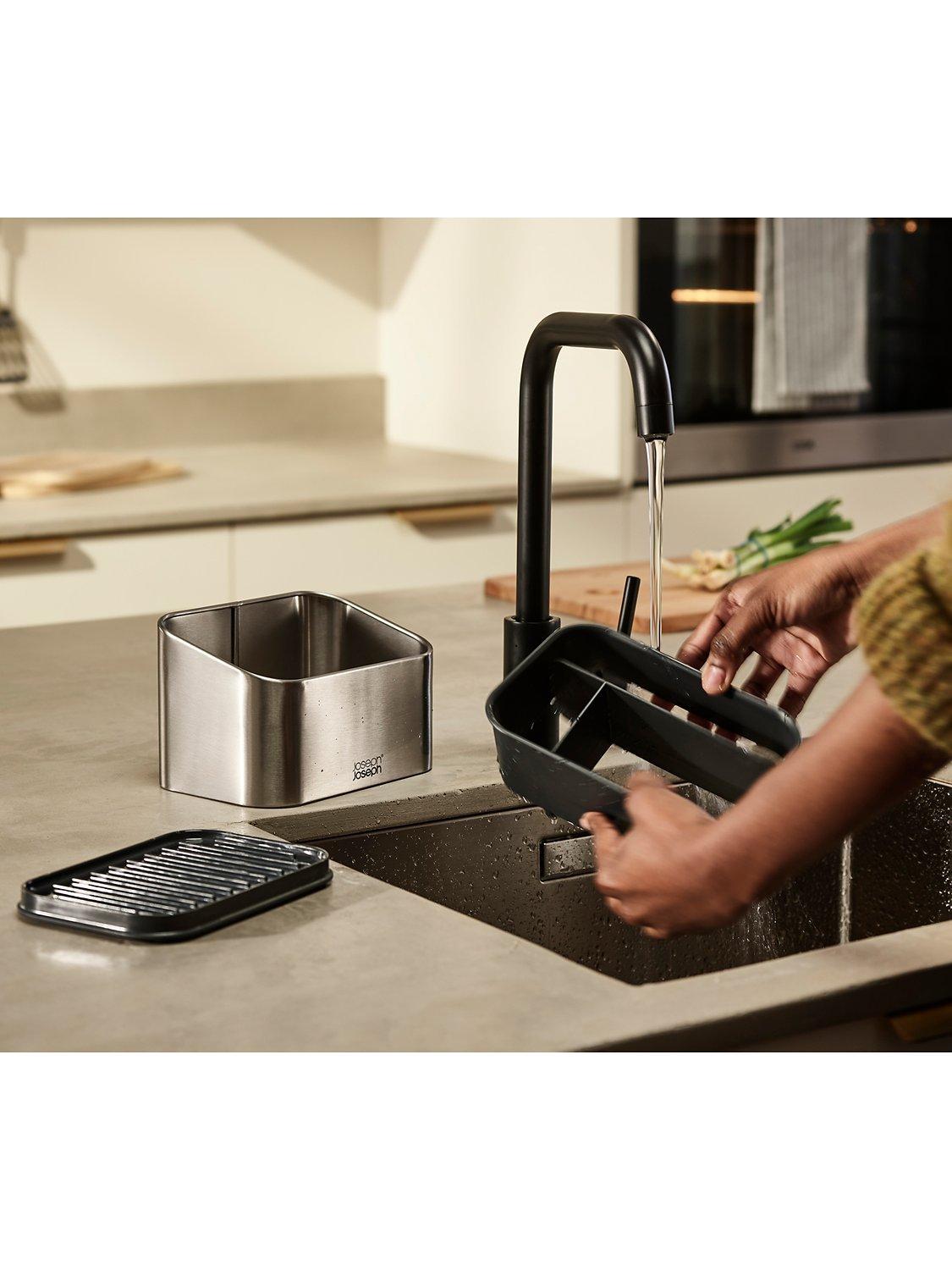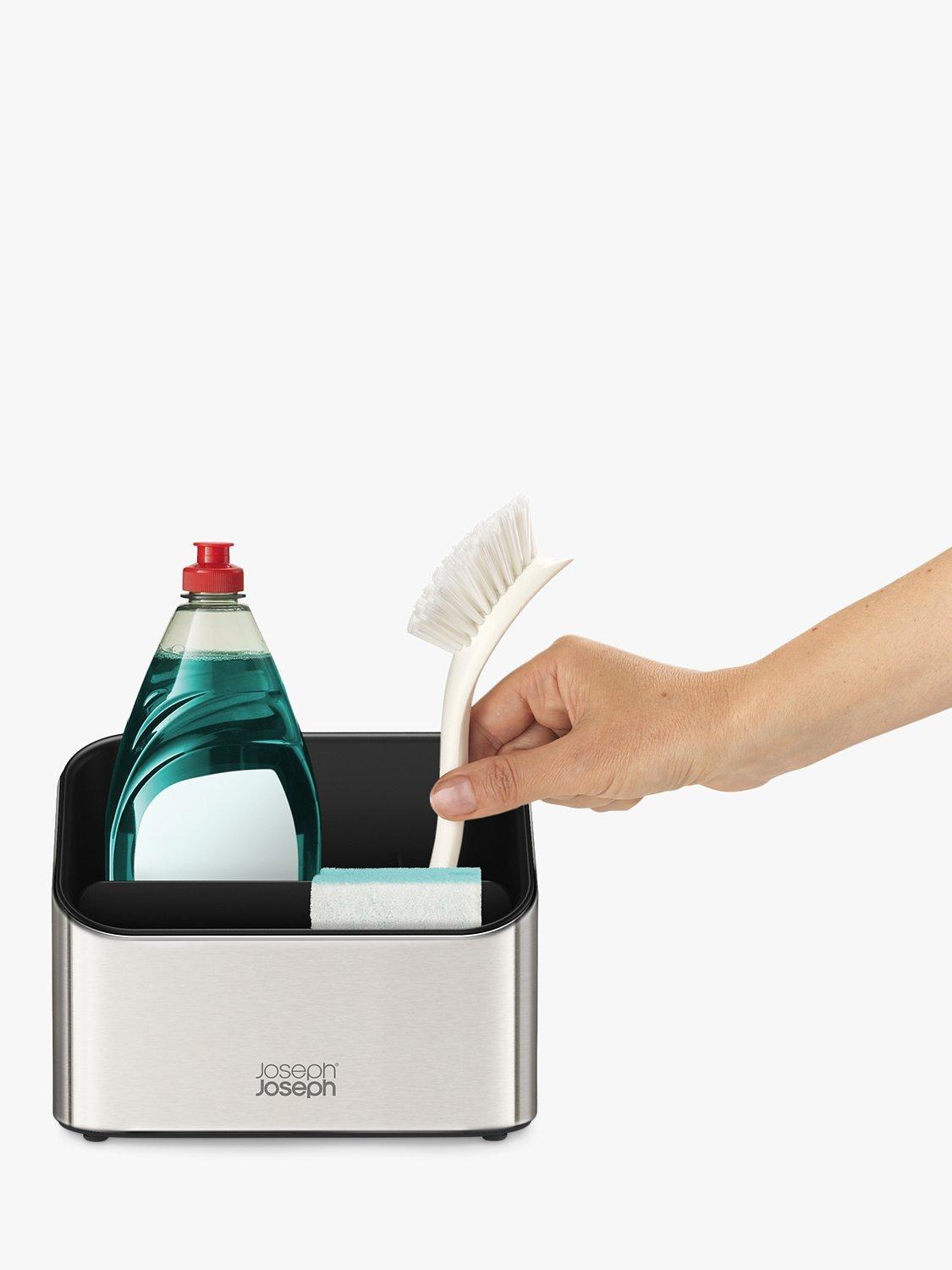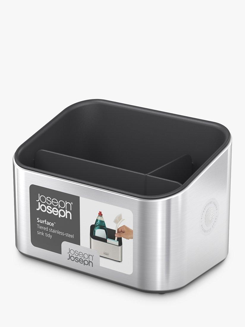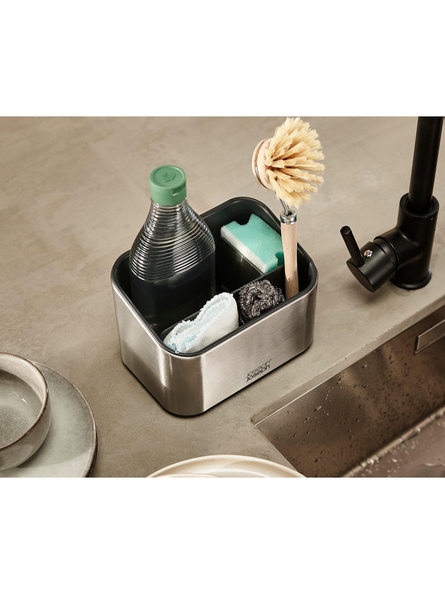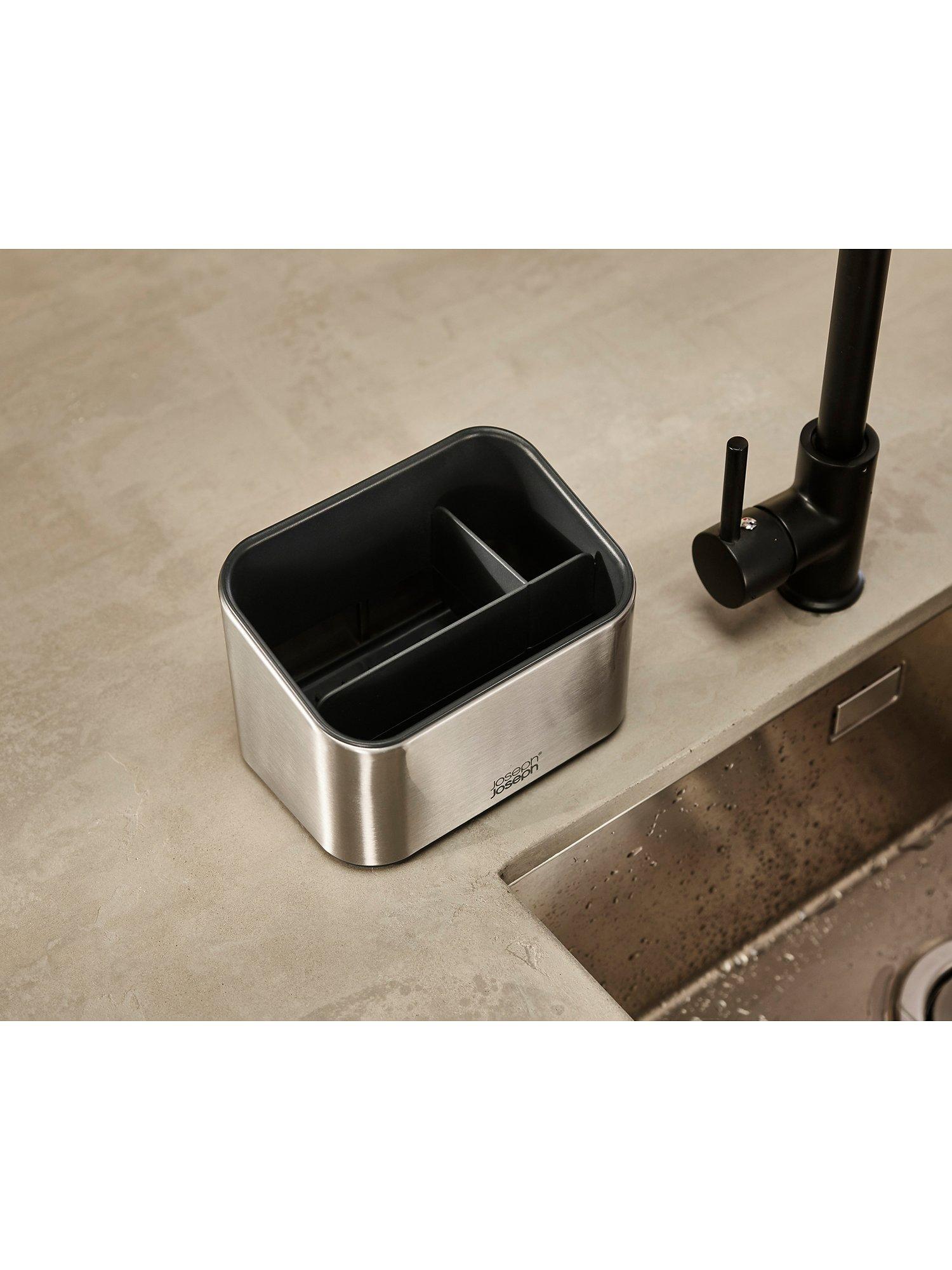 With it's tough, stainless-steel body and fingerprint-proof coating, this smart sink tidy will bring a touch of class to your sink-side for many years to come. It features multiple compartments to hold a washing-up liquid bottle, brushes and sponges, an angled design for easier access and non-slip feet on the base.