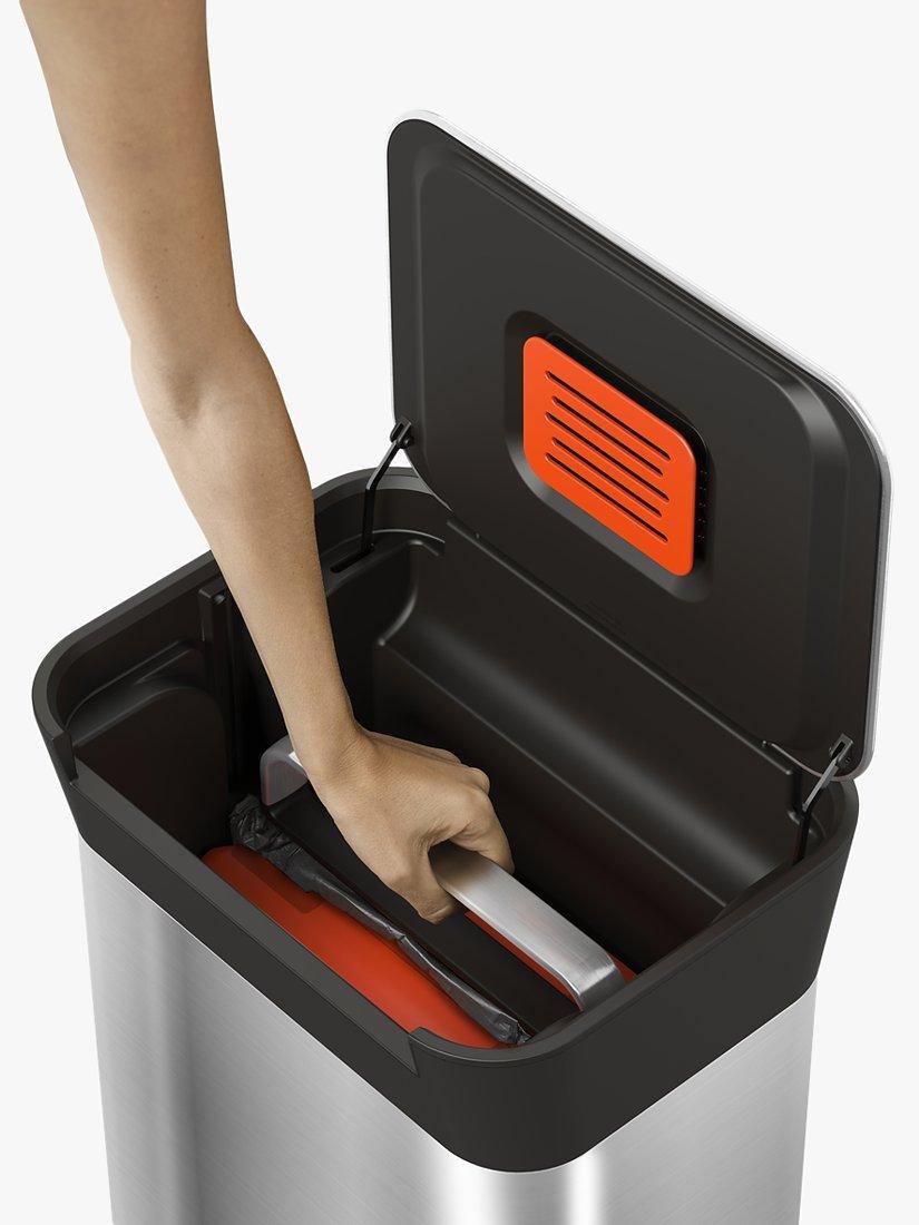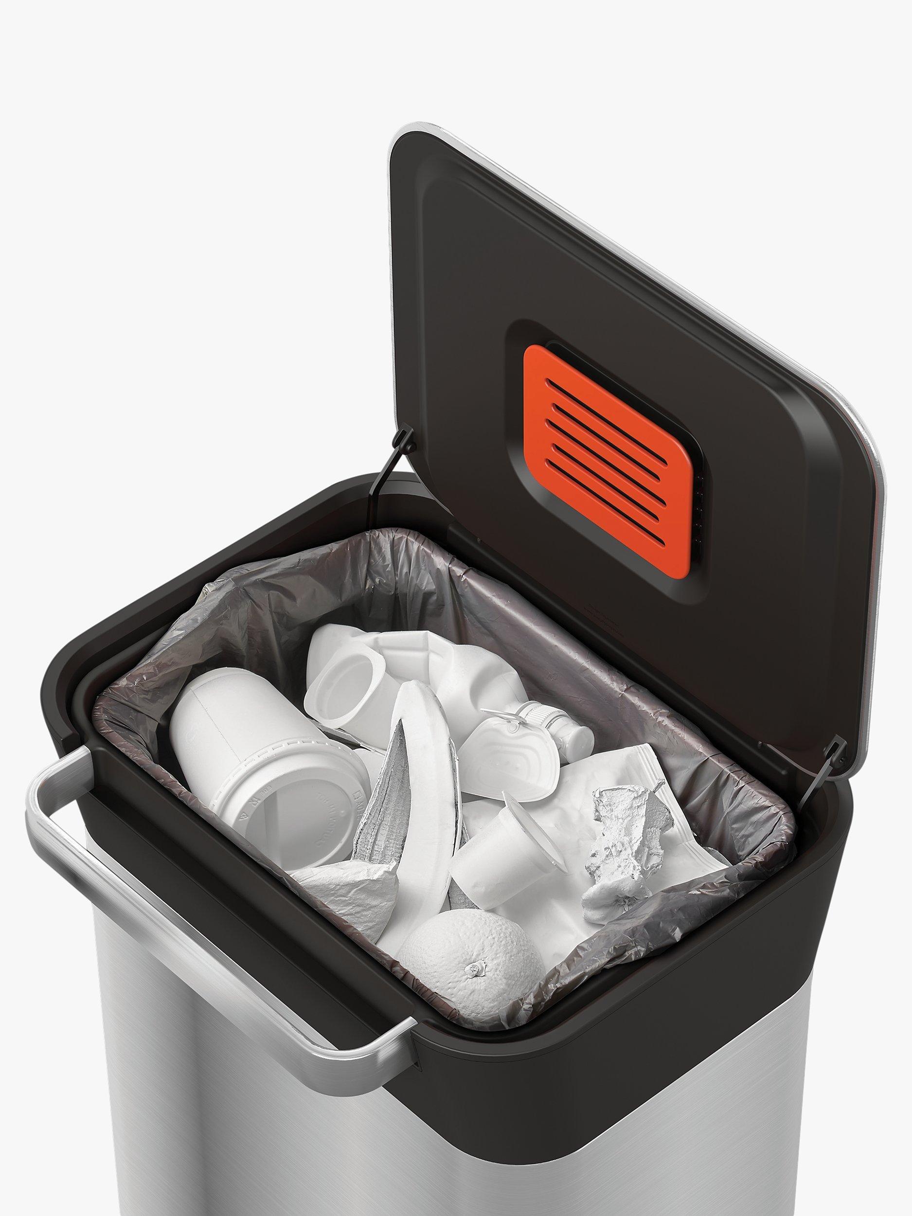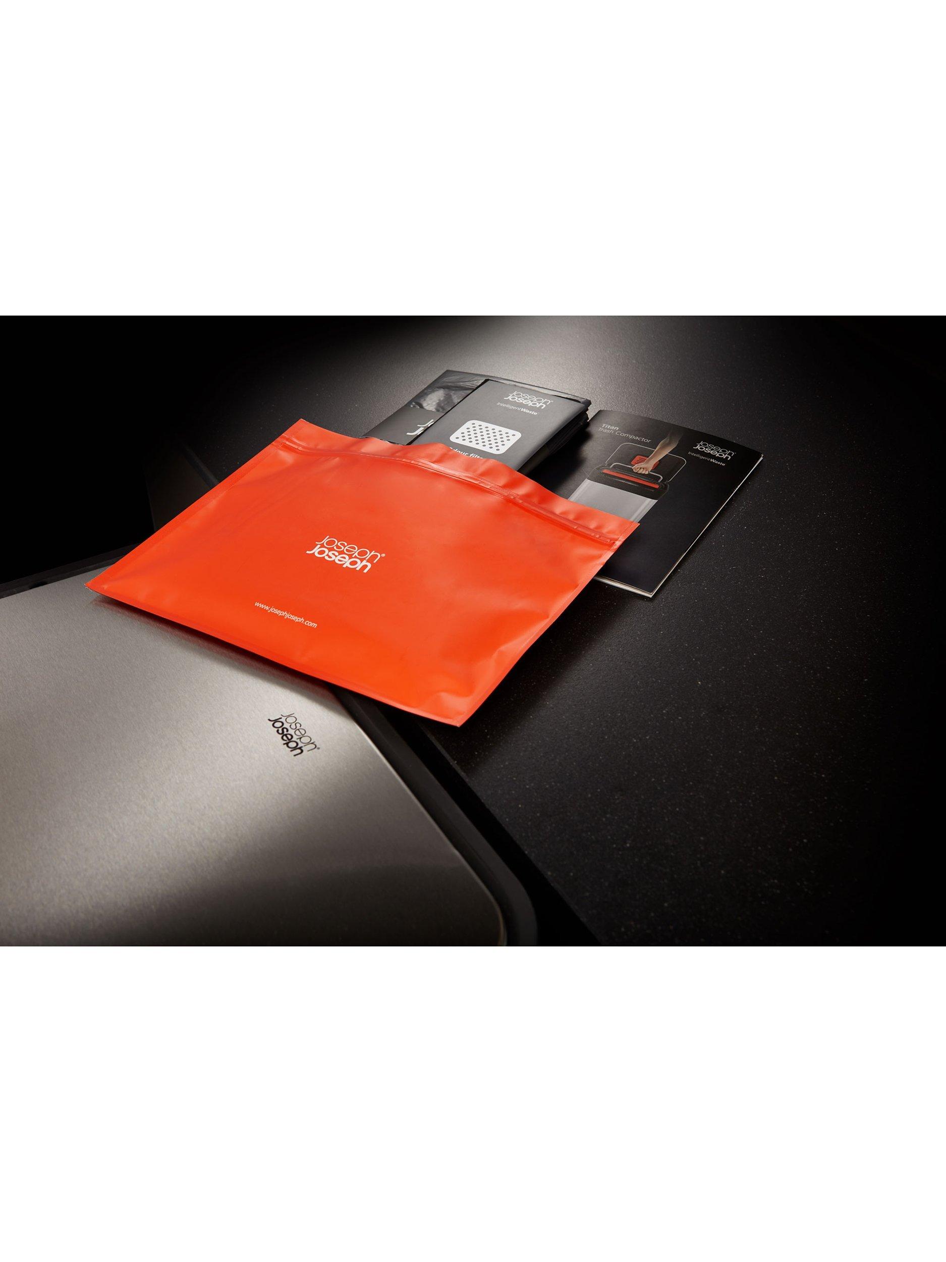 No ordinary waste unit. Titan from Joseph Joseph features a patented, hygienic compaction system that enables it to hold up to three times more waste than a similar-sized domestic unit. Because Titan compacts your waste, it doesn't need to be emptied as often, which in turn reduces the amount of liners you use and also the amount of full liners that you have to deal with between collections.